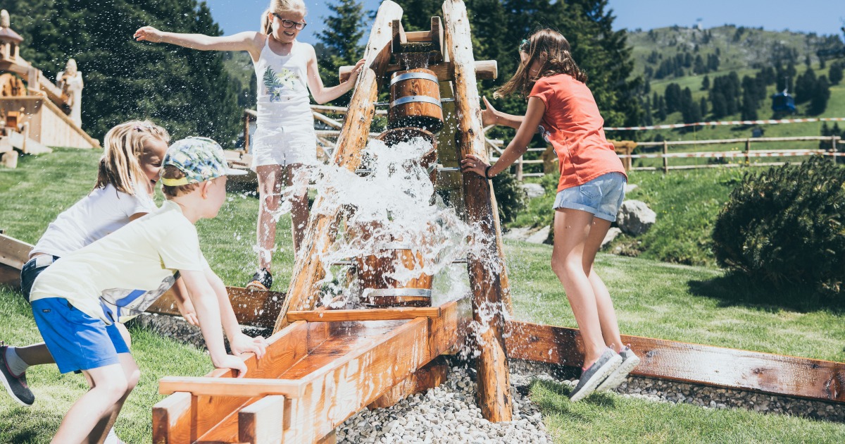 Wasser ist im Sommer ein äußerst beliebtes Element. Das Fichtenschloss in Zell am Ziller bietet nicht nur ein aufregendes Schloss mit Türmchen, Verbindungsbrücken und einem großen Erlebnisspielplatz, sondern auch einen groß angelegten Wasserspielbereich sowie den Fichtensee zum Abkühlen (www.zillertalarena.com). Ebenfalls spritzig geht‘s in der Wasser- und Erlebniswelt Bärenbachl in Steinach am Brenner zu, wo Wasserwippe und eiskalte Kneippbecken auf die Kids warten. Wissbegierige führt Maskottchen Braunbär Noah durch Spielstationen wie dem Spechtbaum, dem Insektenparadies oder der Bärenhöhle, wo es Interessantes zu erfahren gibt (www.bergeralm.net).