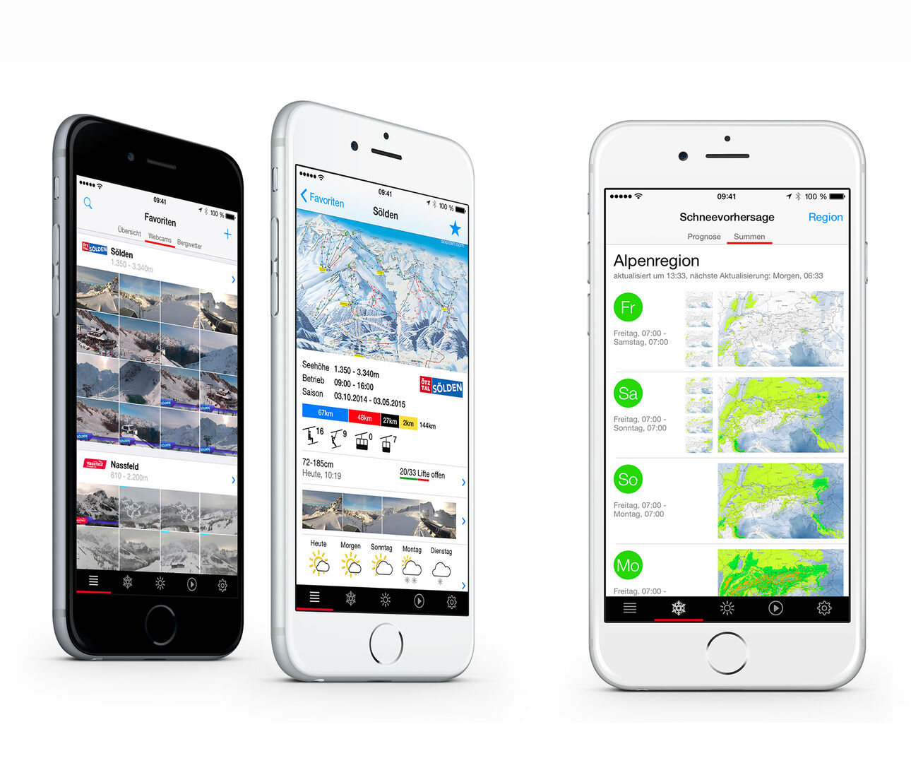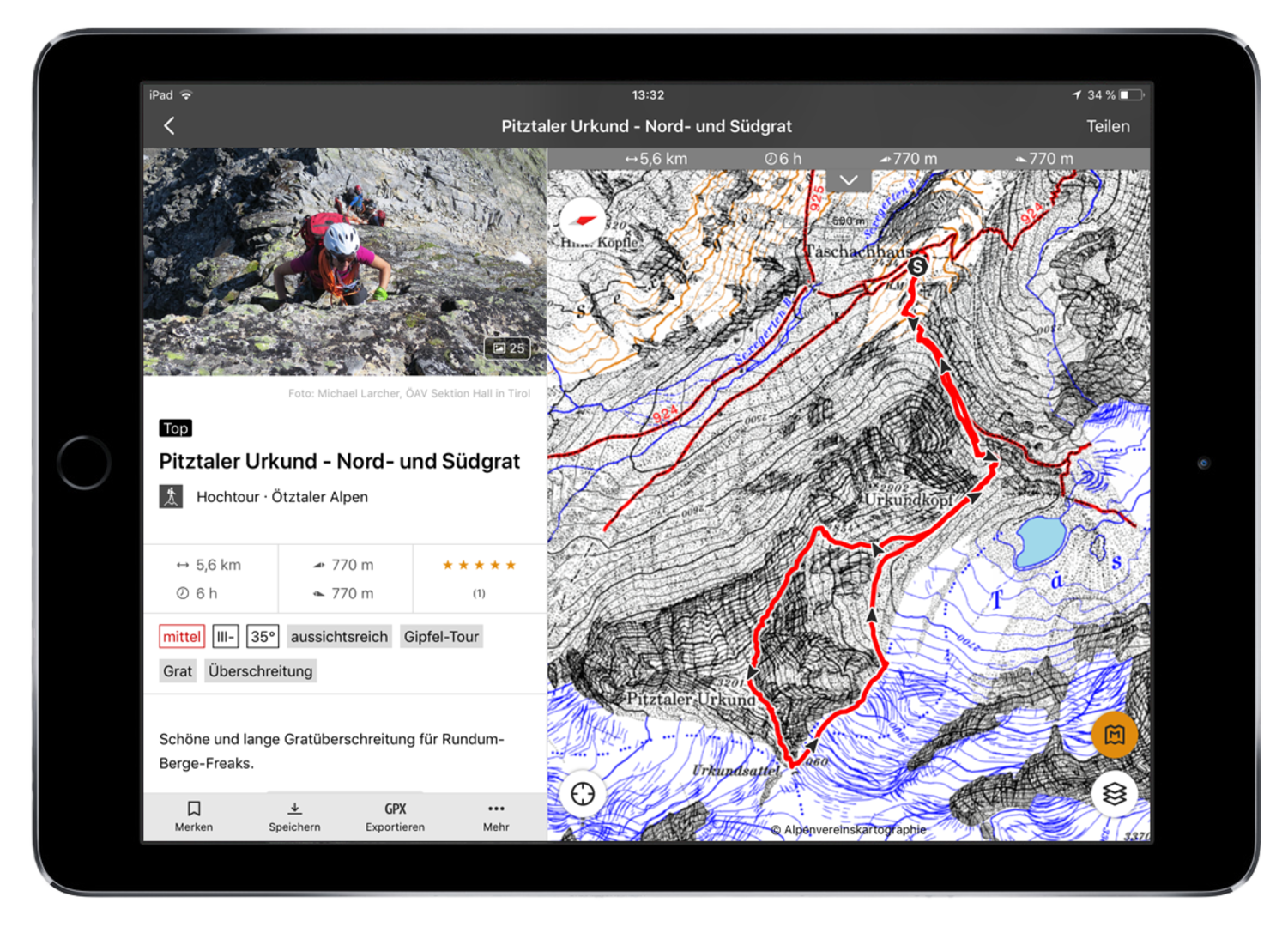 Auf der Alpenvereinaktiv-App finden Benutzer zahlreiche Informationen zur Tourenvorbereitung, wie zum Beispiel Tourenbeschreibungen von geschulten Autoren oder Informationen zu einer Vielzahl an Hütten sowie den aktuellen Wetterbericht. Zusätzlich können individuelle Touren geplant und aufgezeichnet werden. Herzstück der App ist das hochwertige Kartenmaterial, auf dem Hangneigungen eingeblendet werden können. Die App ist kostenlos, bietet bei einem kostenpflichtigen Abo aber mehr Funktionen – zum Beispiel detaillierte Offline-Karten.