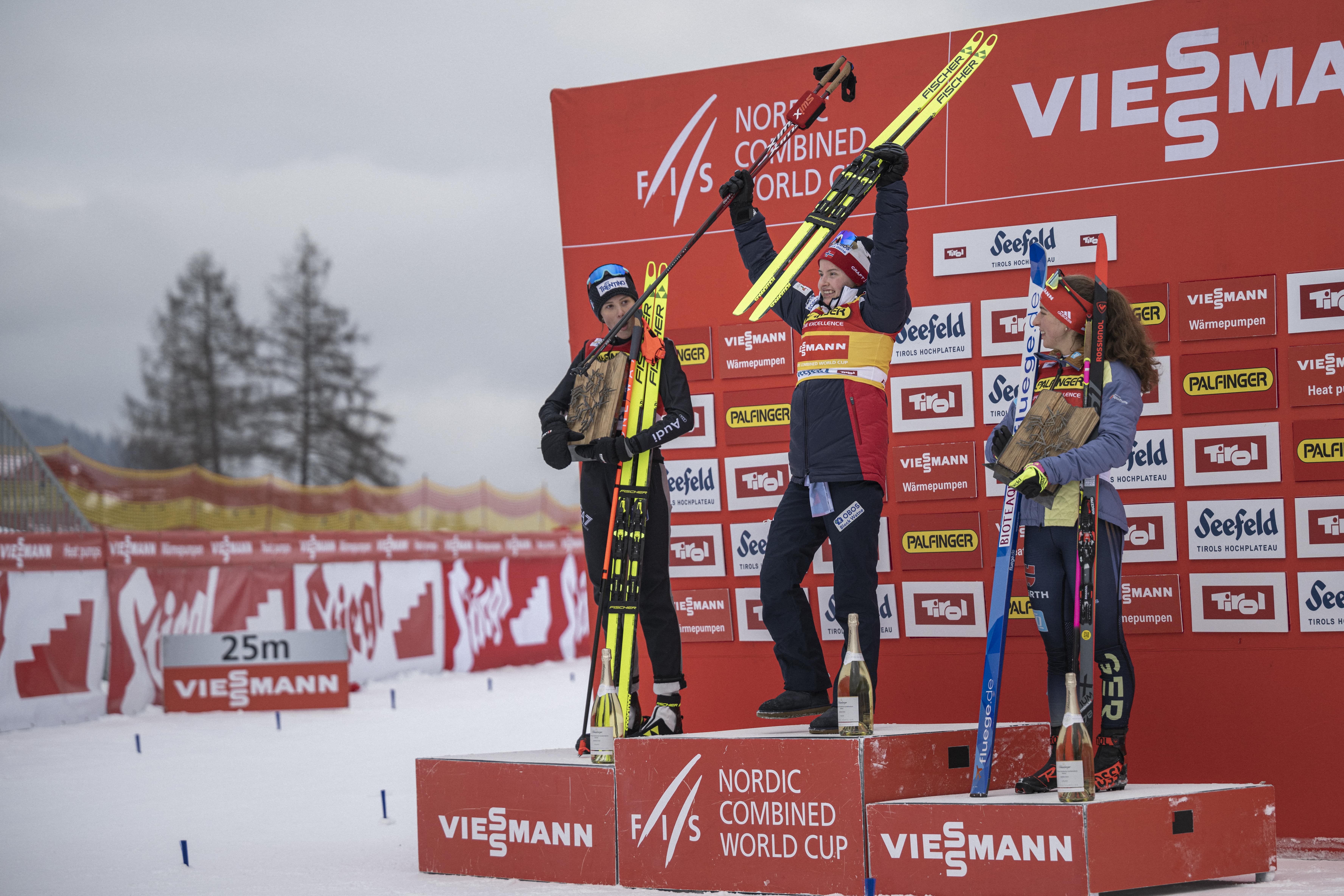Johannes Lamparter hat sich als erster Österreicher die Krone beim Seefeld-Triple der Nordischen Kombinierer aufgesetzt. Der Tiroler triumphierte zum Abschluss des Weltcup-Saisonhöhepunkts überlegen vor dem Deutschen Julian Schmid und dem Norweger Jens Luraas Oftebro. Mit doppelten Punkten übernahm der Weltmeister auch die Führung im Gesamtweltcup. Seine ÖSV-Teamkollegen Stefan Rettenegger und Franz Josef Rehrl wurden Fünfter bzw. Siebenter.