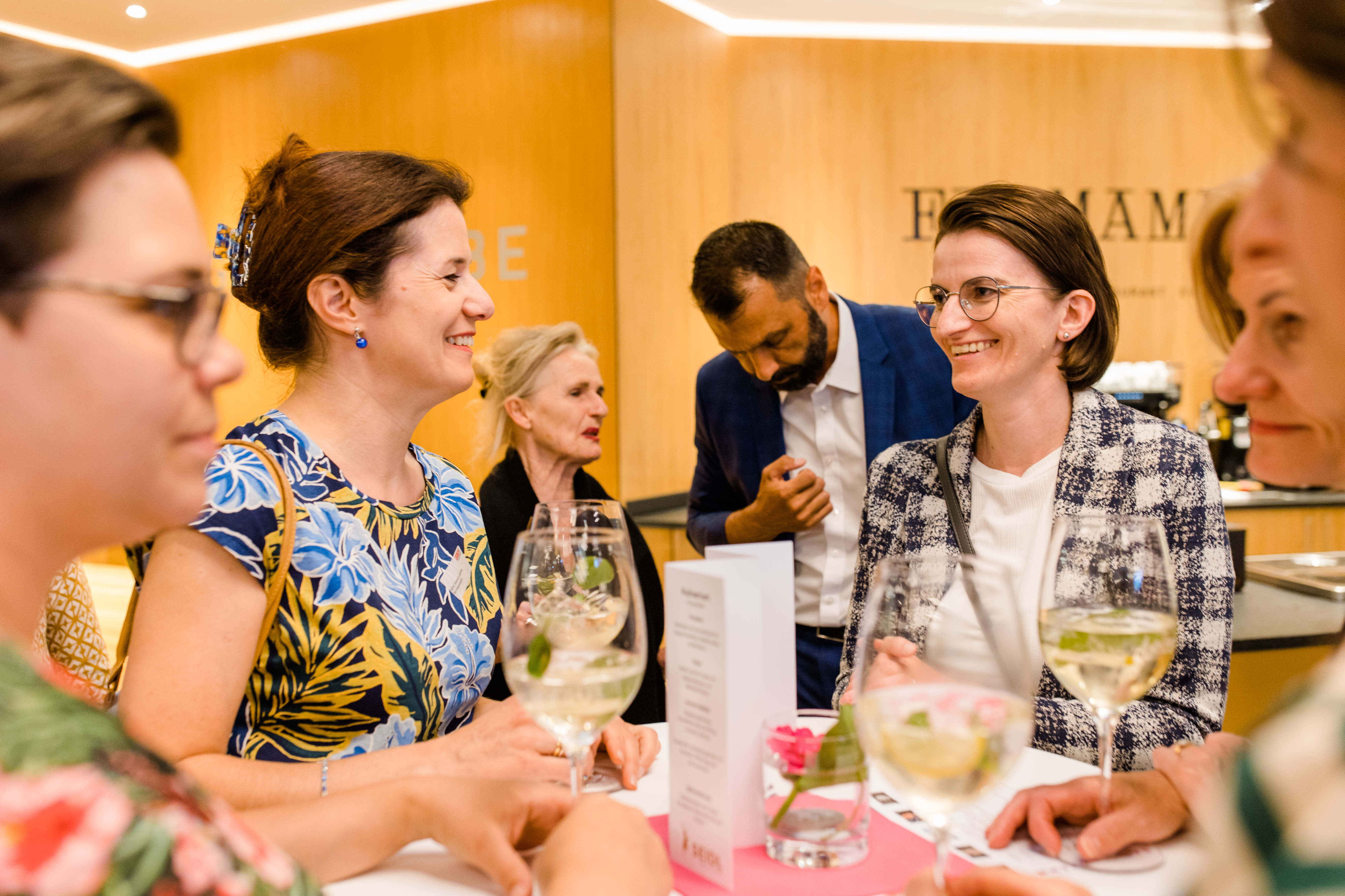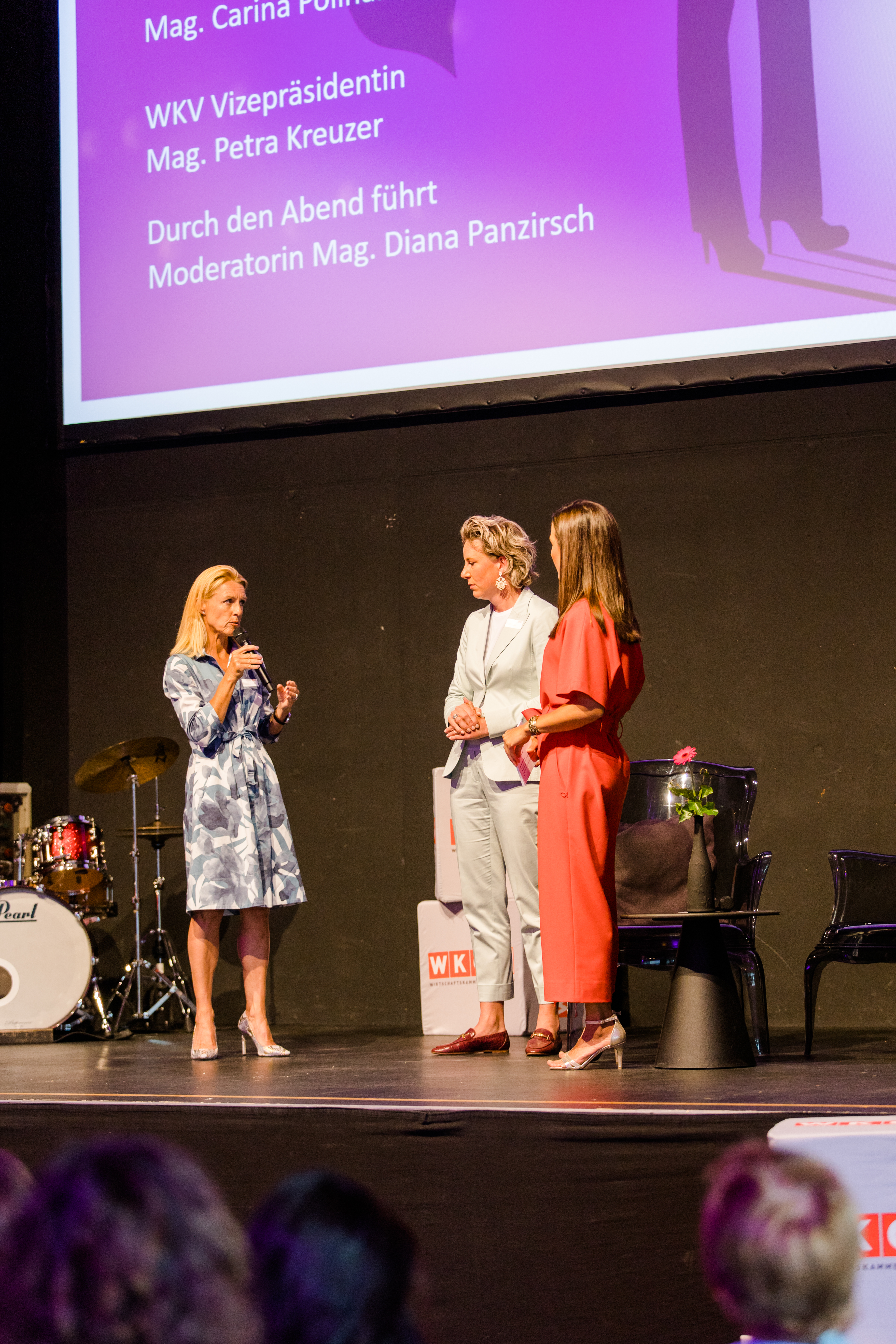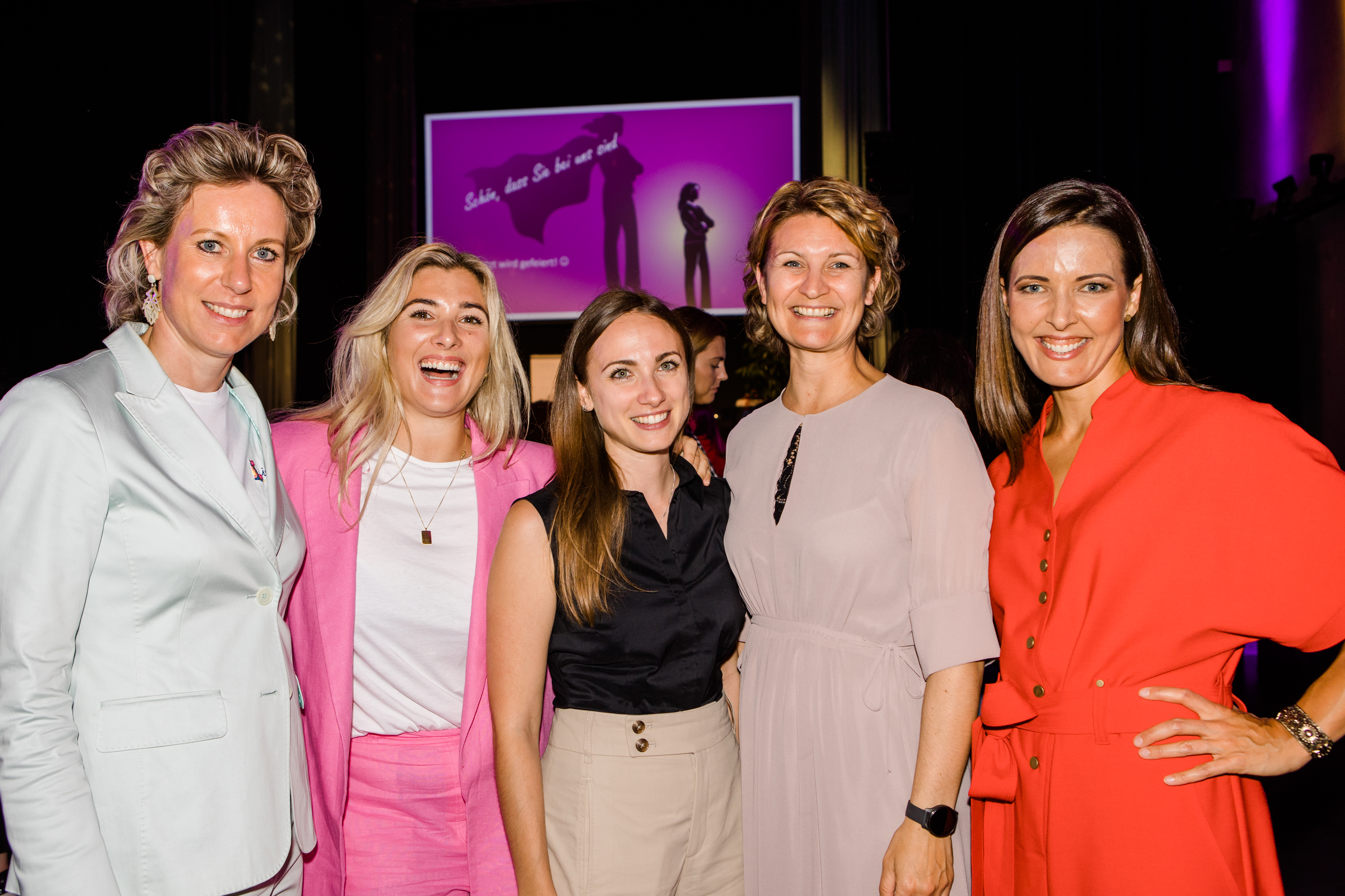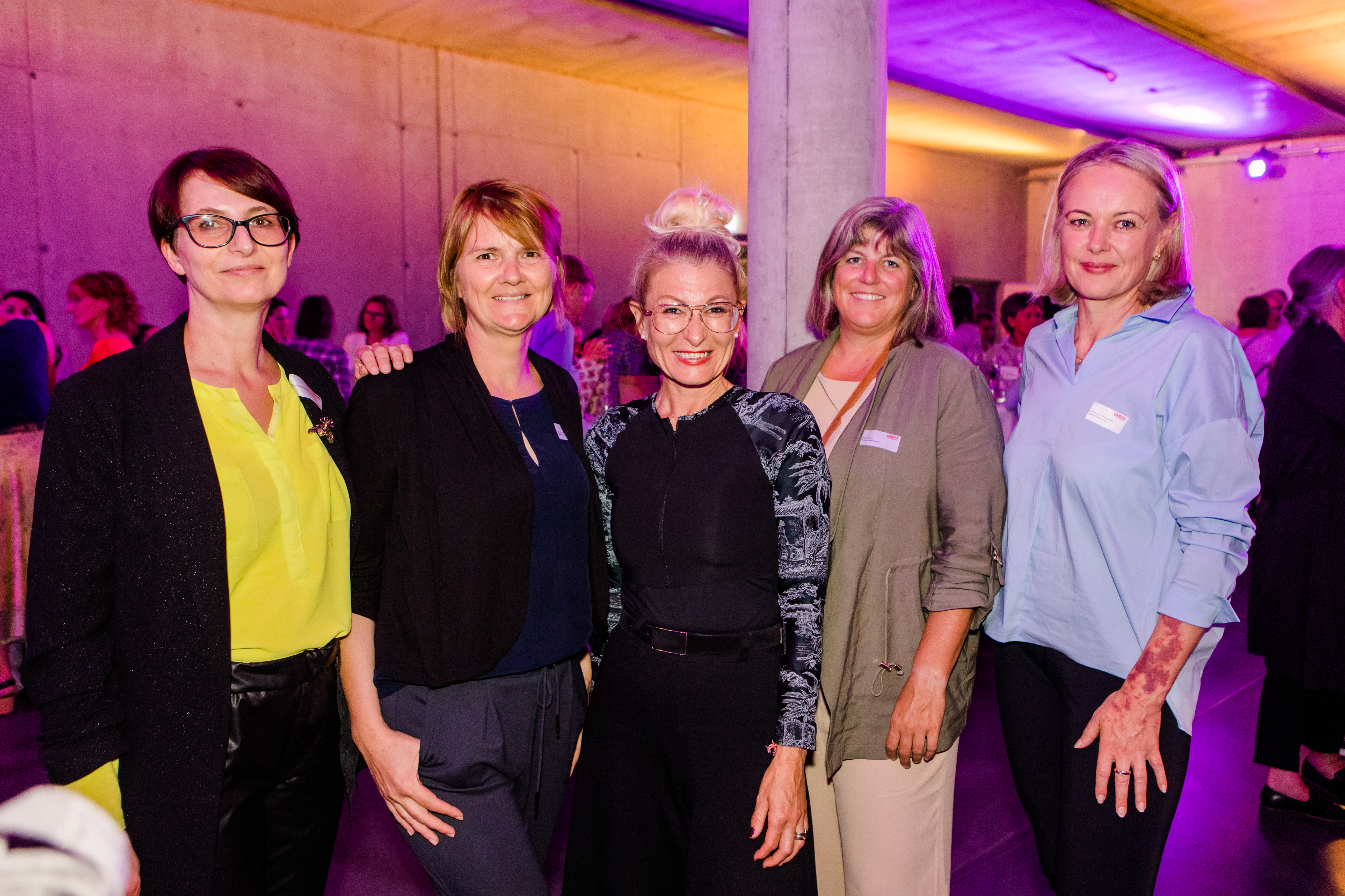Carina Pollhammer (FiW Vors.), Linda Meixner (Influenzerin), Diana Eglseder (Augenkitzel), Karin Peer (FiW Vorst.), Diana Panzirsch (Moderatorin)