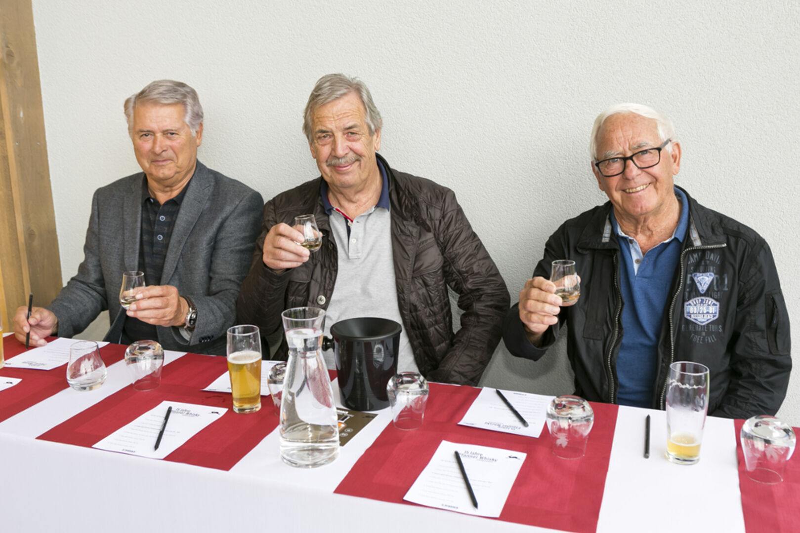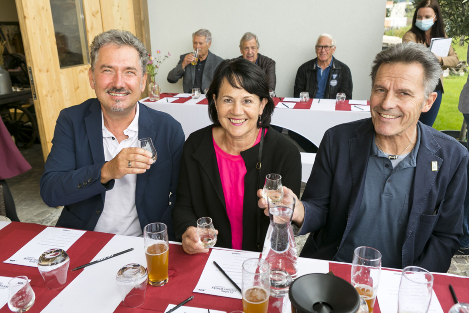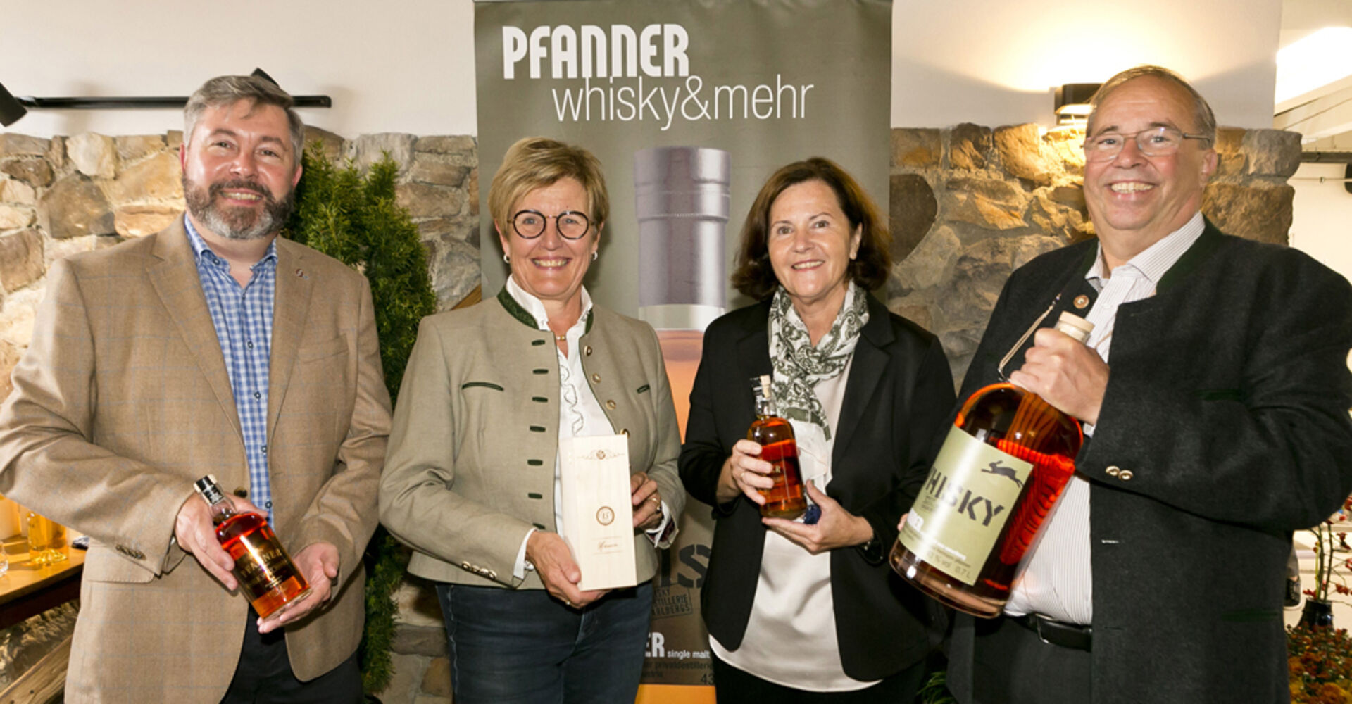 Whisky Jubiläumsedition: Spirituosenexperte Arthur Nägele mit Marie-Luise Dietrich, Brunhilde und Walter Pfanner (v. li.) .