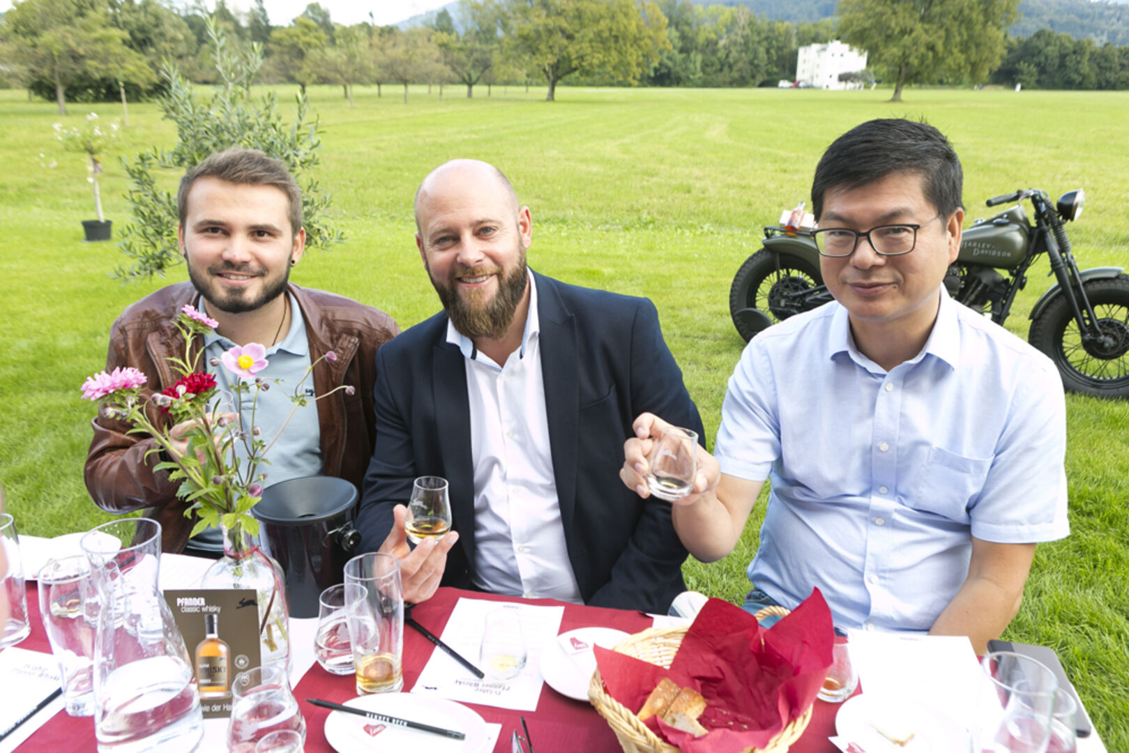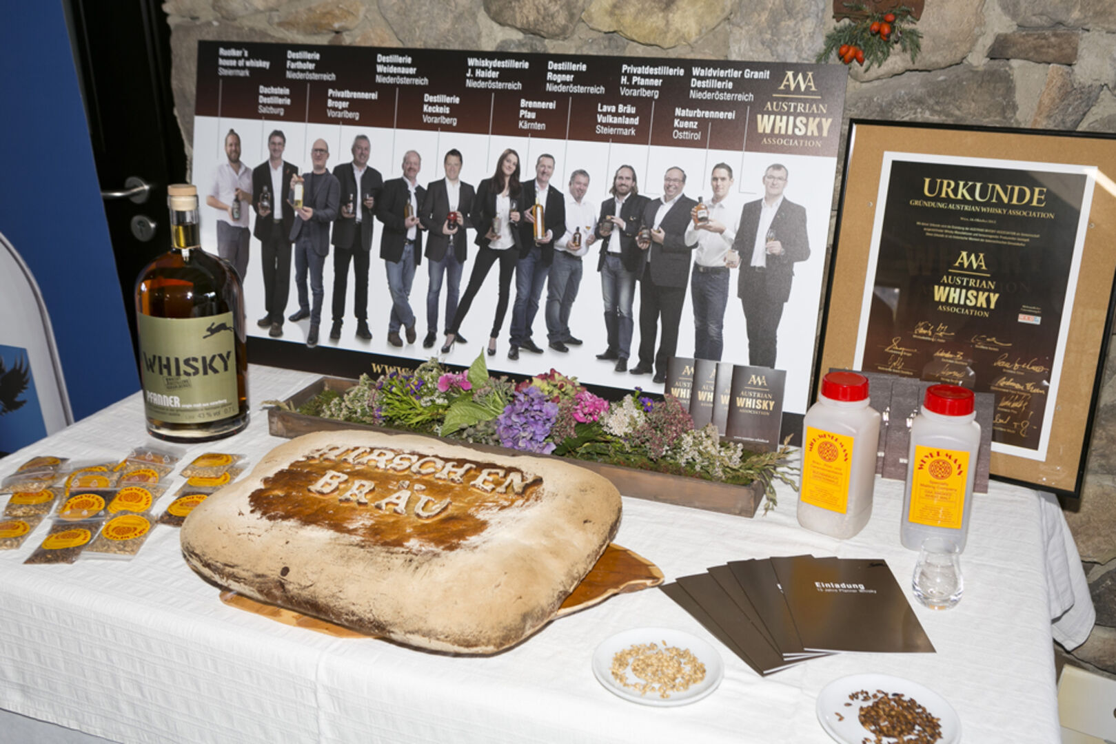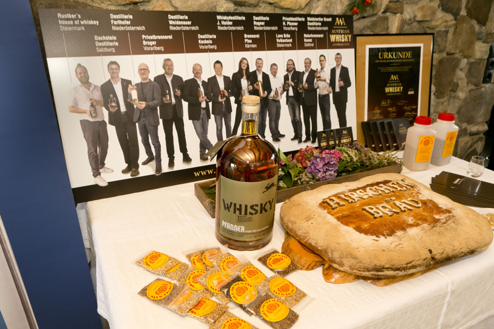 Whisky Jubiläumsedition: Spirituosenexperte Arthur Nägele mit Marie-Luise Dietrich, Brunhilde und Walter Pfanner (v. li.) .