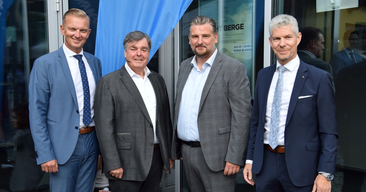 Vst. Dir. Wolfgang Eichler (Sparkasse Bludenz), Herwig Pecoraro (Kammersänger und Unternehmer), Landesdirektor Alexander Meier (Wiener Städtische), Vst. Dir. Thomas Scheiber (Sparkasse Bludenz)