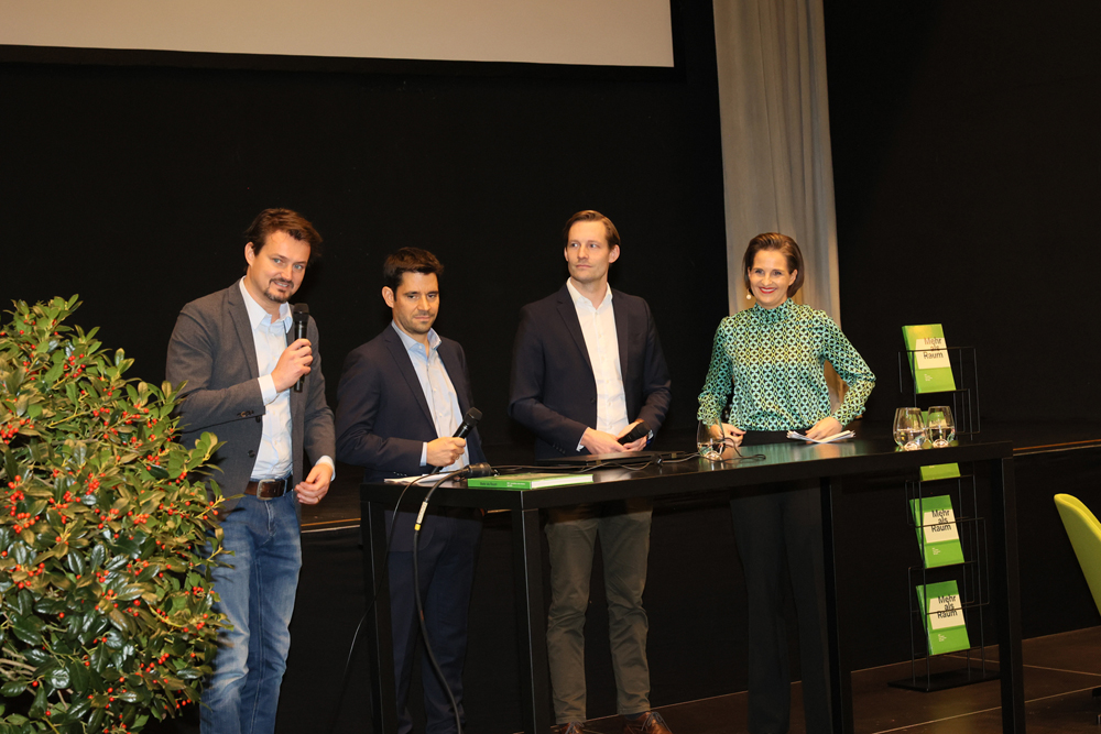 Referent Prof. Reinhard Haller, Gründer Horst Zimmermann Buchkoordinatorin Friederike Hehle (Historizing) und langjähriger GF Hermann Metzler. (v. li.)