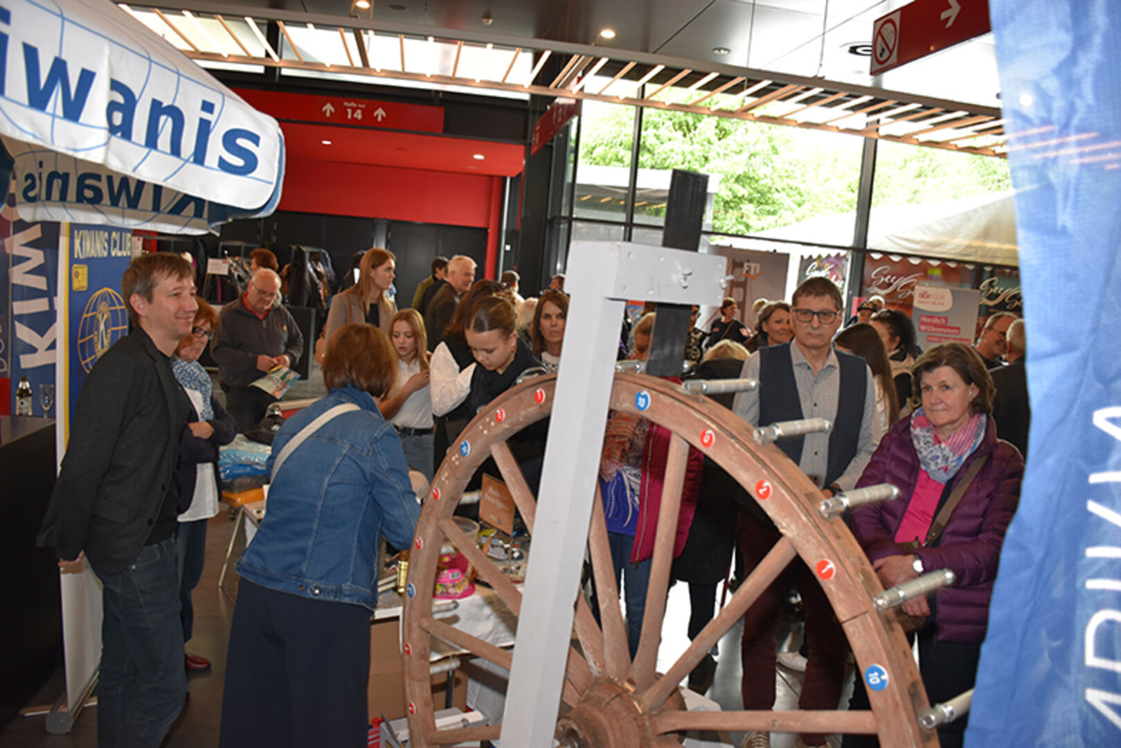Jeder wollte bei der Kiwanis-Tombola zugunsten dem Projekt „Dach überm Kopf“ am großen Glücksrad mitmachen.