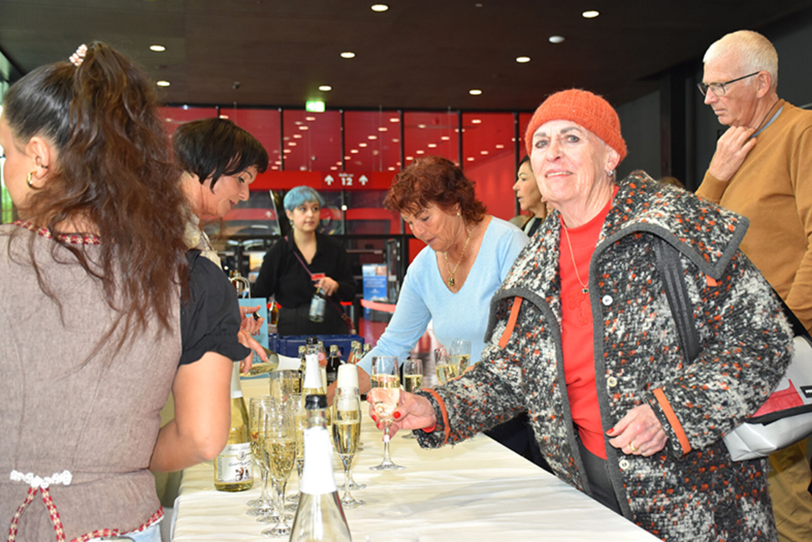 Monique Vogel und Manuela Ploner am Weindegustations-Schank vom Weingut Franz Schindler.