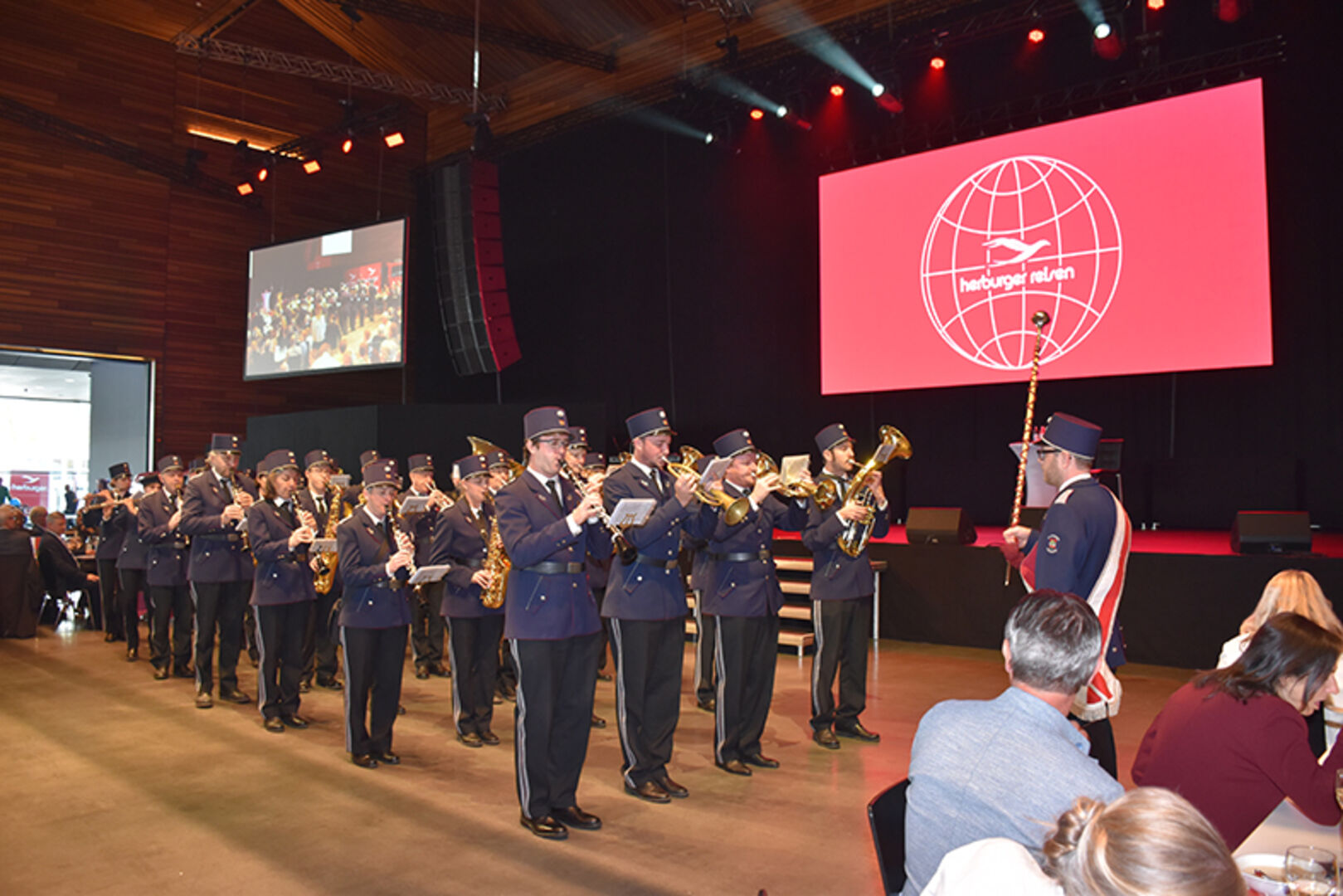 Eröffnungszeremonie, Stadtmusik Einklang, Reisepartnervorstellung, die Geschichte von Herburger Reisen und Vorstellung der Bus- und Flugreisen 2024.