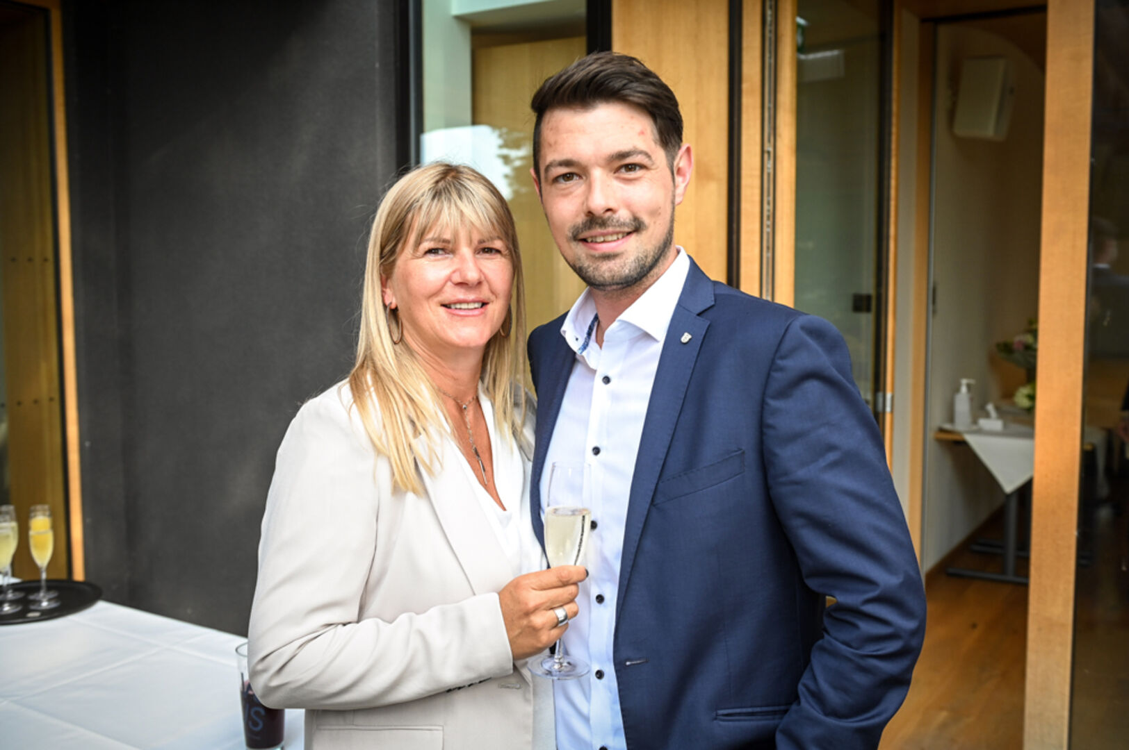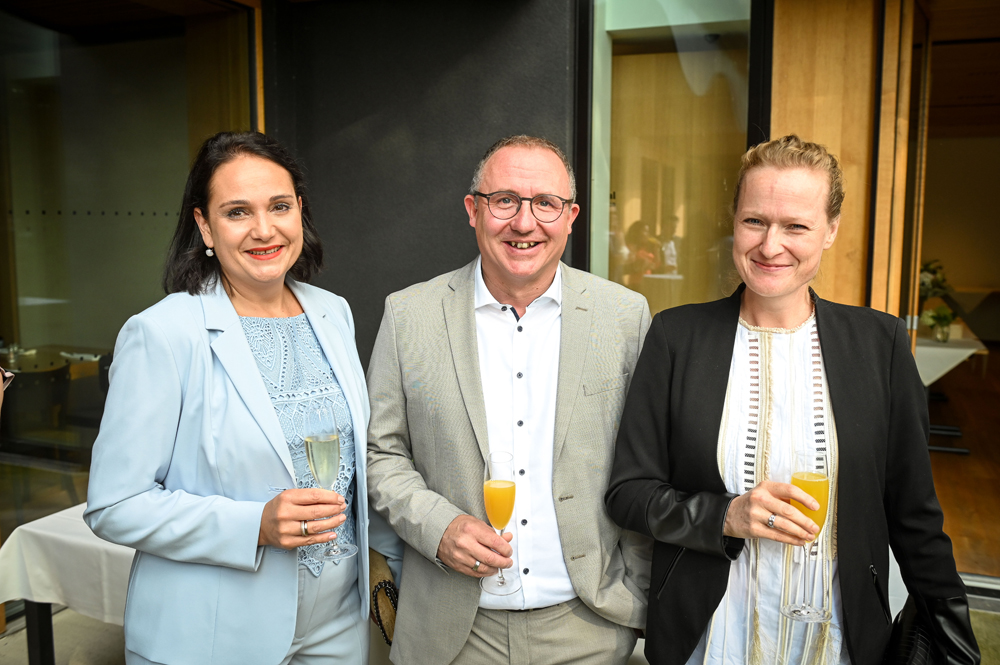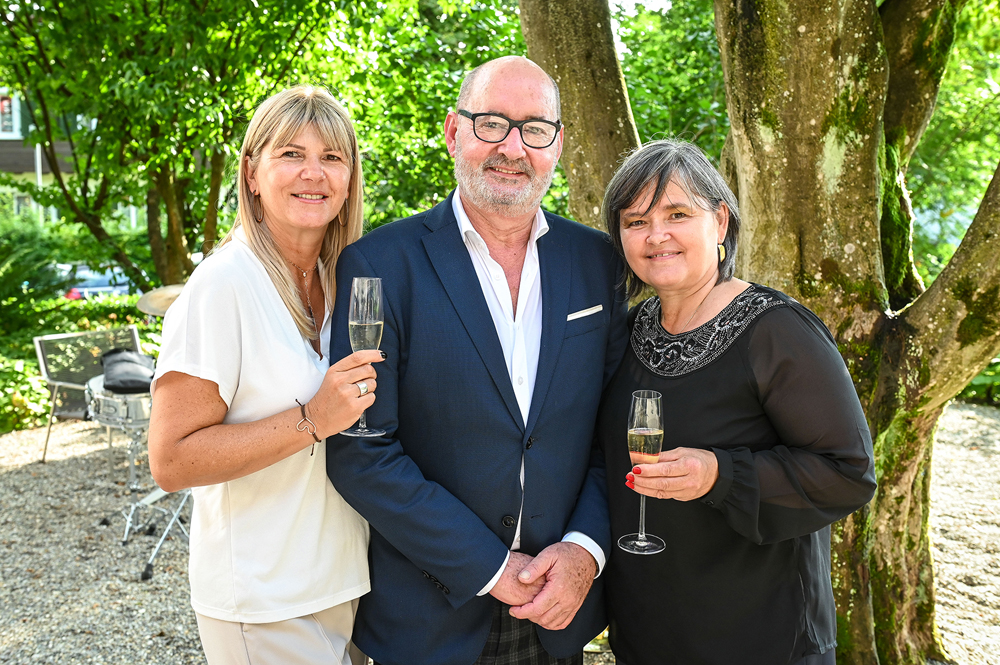 Stefan mit StR Sandra Schoch, BM Michael Ritsch mit Yvonne, Siegi Gasser mit Cornelia, Aida Balamaci, Luisa Moser und Sohn Johannes Gasser (v. li.)