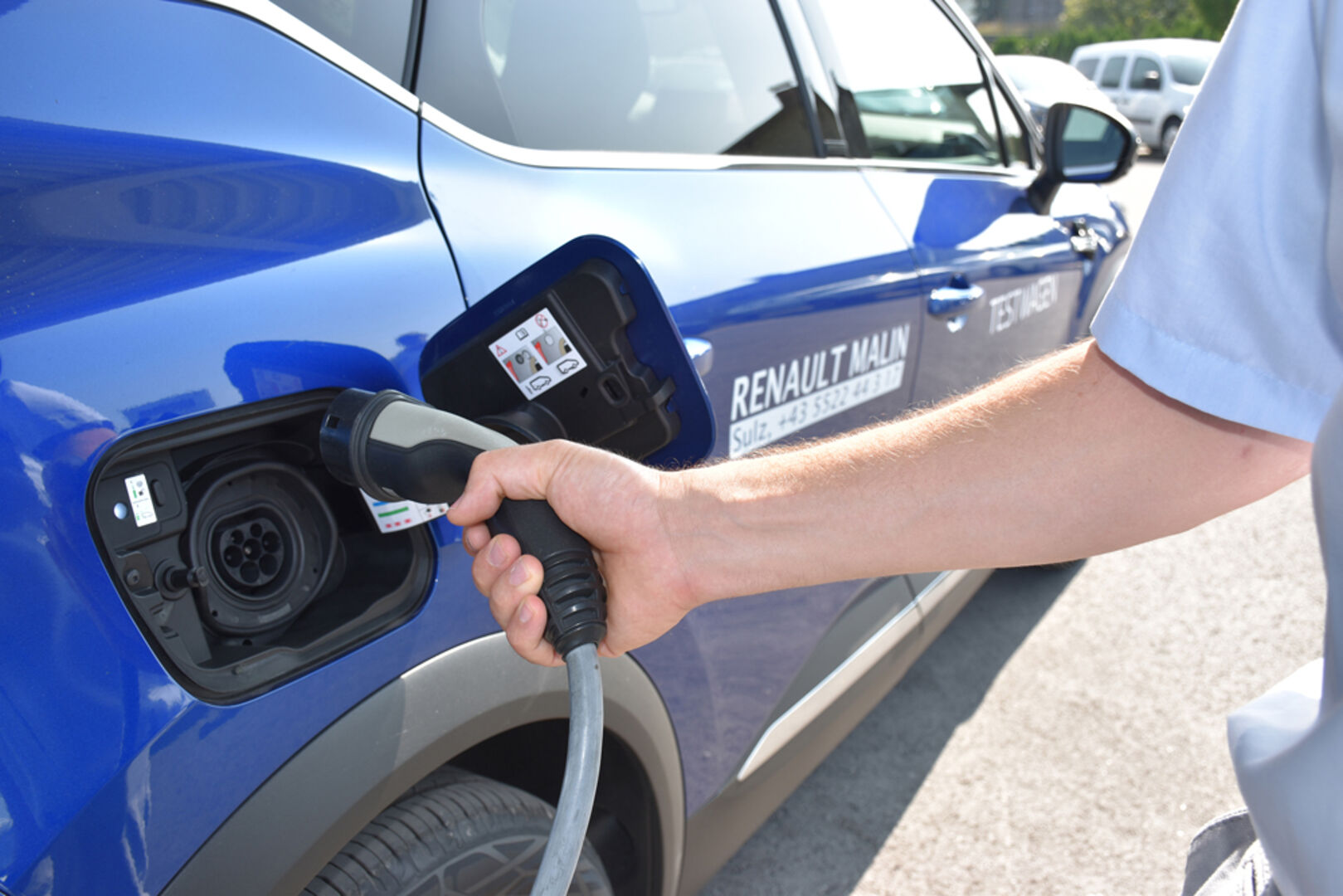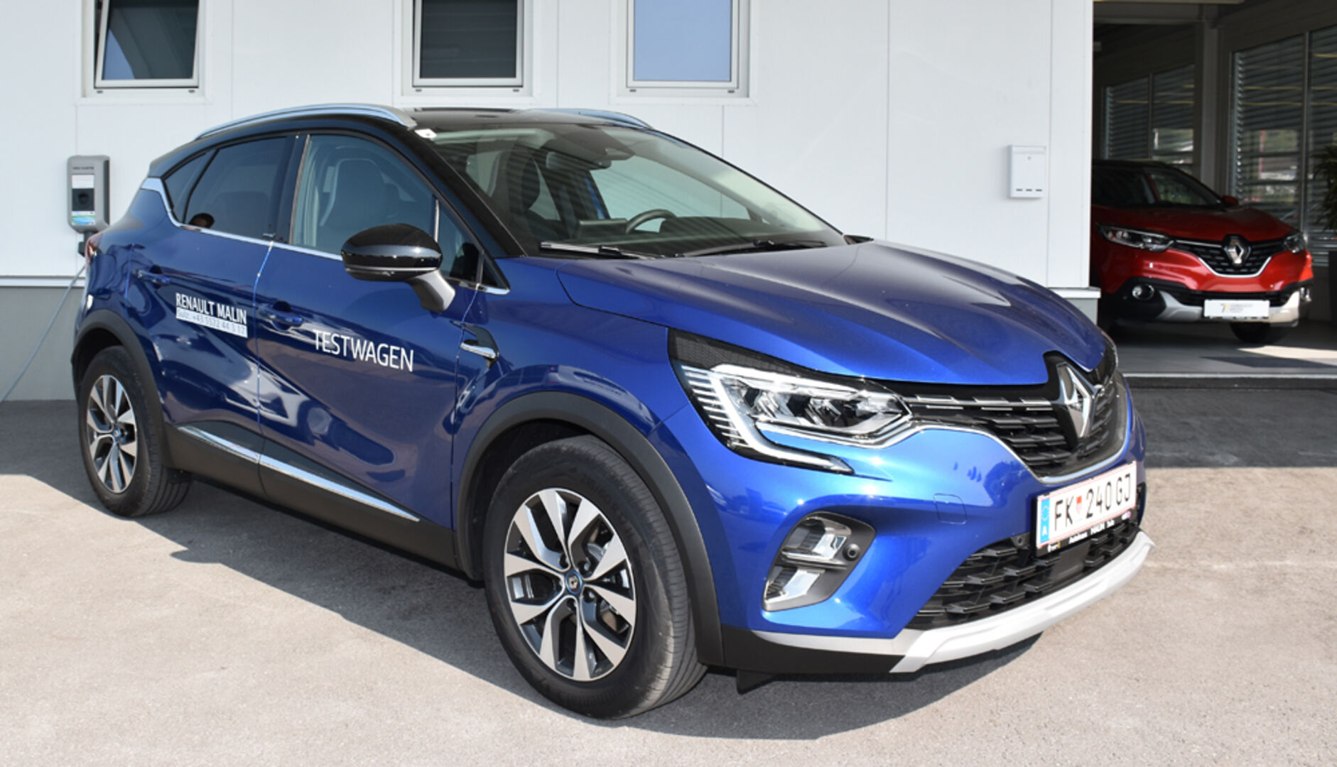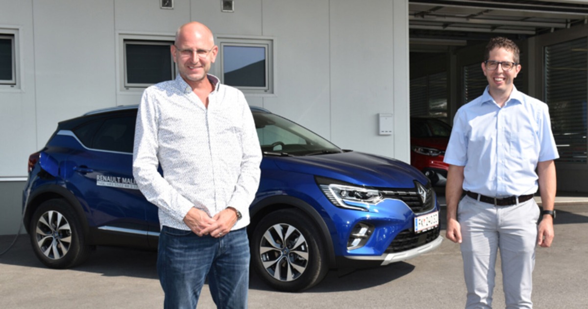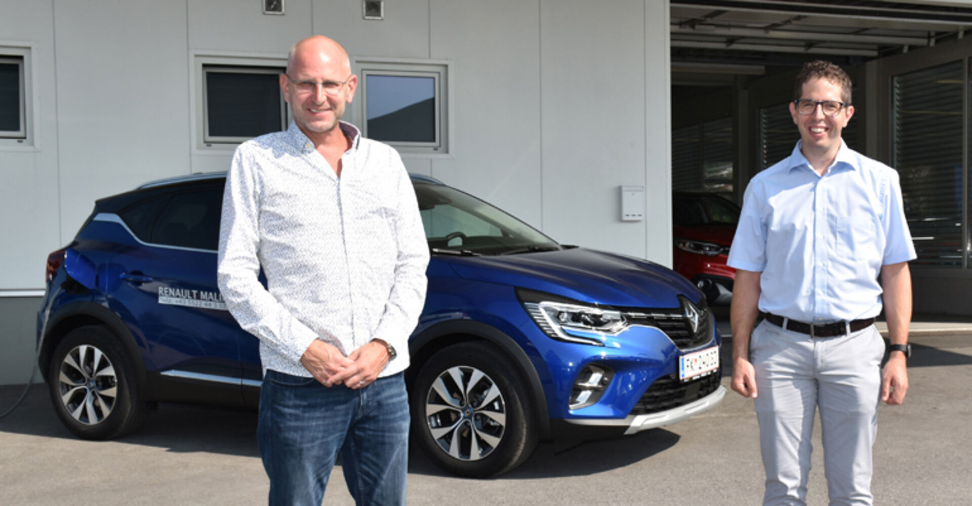 Autohaus Walter Malin Verkaufsleiter und Geschäftsführer Christoph Marte (re.) und Rainer Loacker (Weekend) mit dem neuen Plugin Hybrid Renault Captur.