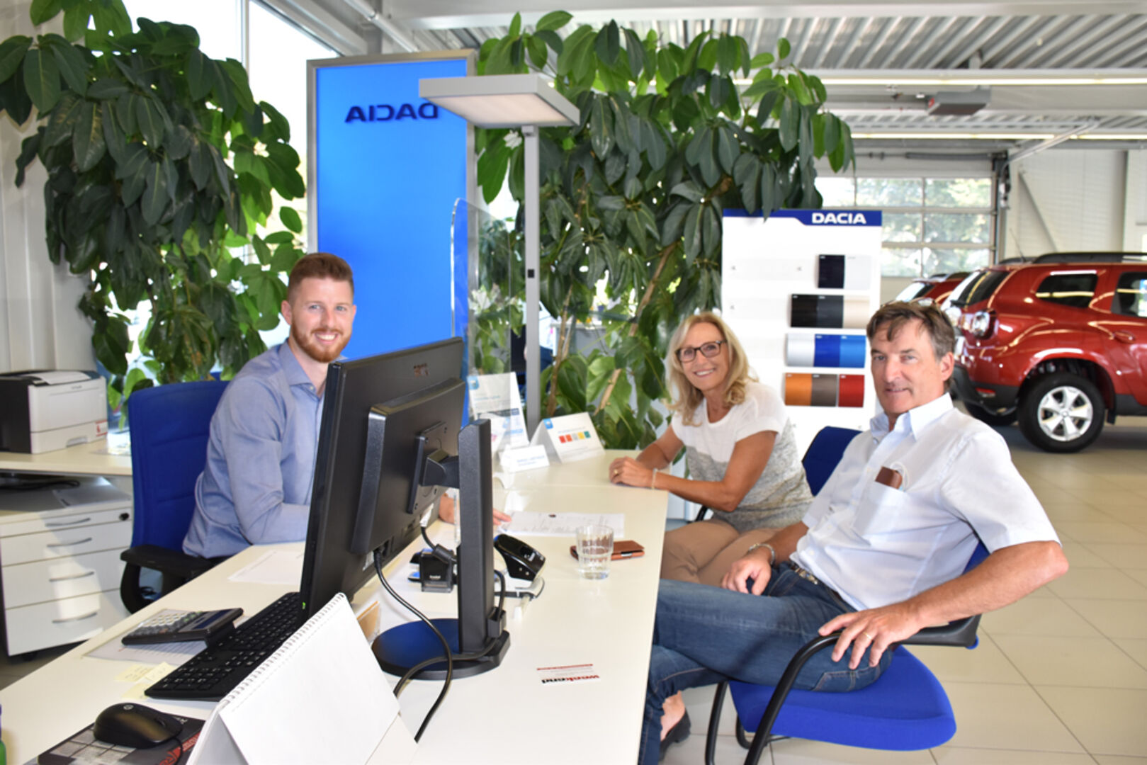 Renault Verkaufsberater Thomas Breuss mit Marlies und Ingo Pirker aus Rankweil.