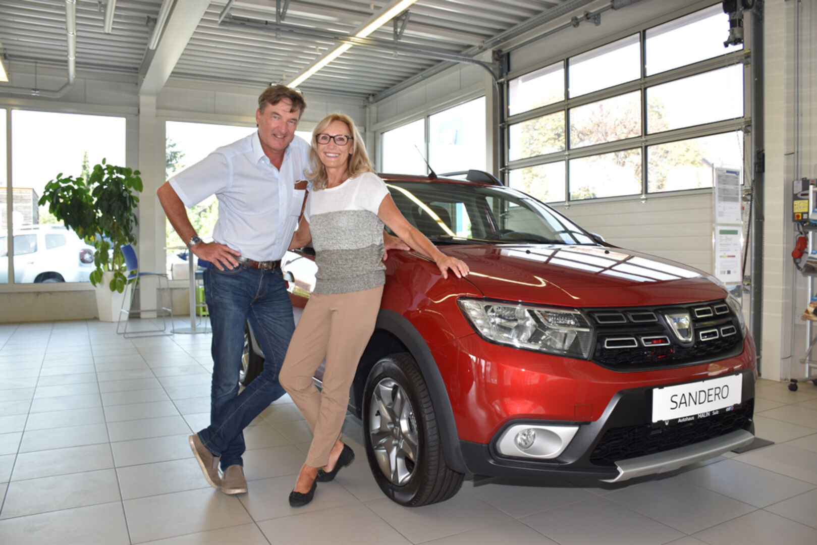Schätzen die professionelle Beratung und freuen sich auf den neuen Dacia Sandero: Thomas und Sonja Baerenzung.