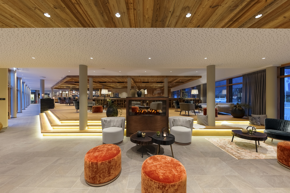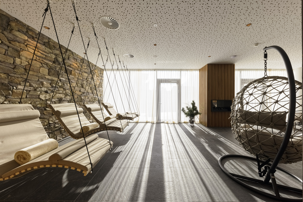 Das Ergebnis der Erweiterungen ist der neue attraktive Innenhof mit einem großen Außenpool, um den sich die Gebäudeteile nun gruppieren. In ihrem Zentrum steht der großzügige Spa-Bereich mit mehreren Saunen, einem Schneeraum und mehreren Ruheräumen, die einen fantastischen Panoramablick auf die Montafoner Bergwelt bieten. Das neue AlpenSPA bietet auf 3.300 m² ganzheitliche Inspiration für Körper, Geist und Seele. Für das umfassende Wohlbefinden sorgen ein Sanarium, eine finnische Sauna, ein Tepedarium und ein Sole-Dampfbad. Etwas ganz Besonderes ist die Snowmotion, in der eine Beschneiungsanlage integriert ist. Dazu kommen Yoga- und Fitnessräume sowie ein FamilienSPA für Gäste mit Kindern. Großzügige Ruheräume und die Bademantel-Terrasse laden mit ihren Chill-Couchen zum Liegen und zum Entspannen ein; in der warmen Jahreszeit steht auch die Relax-Sommerwiese zur Verfügung.