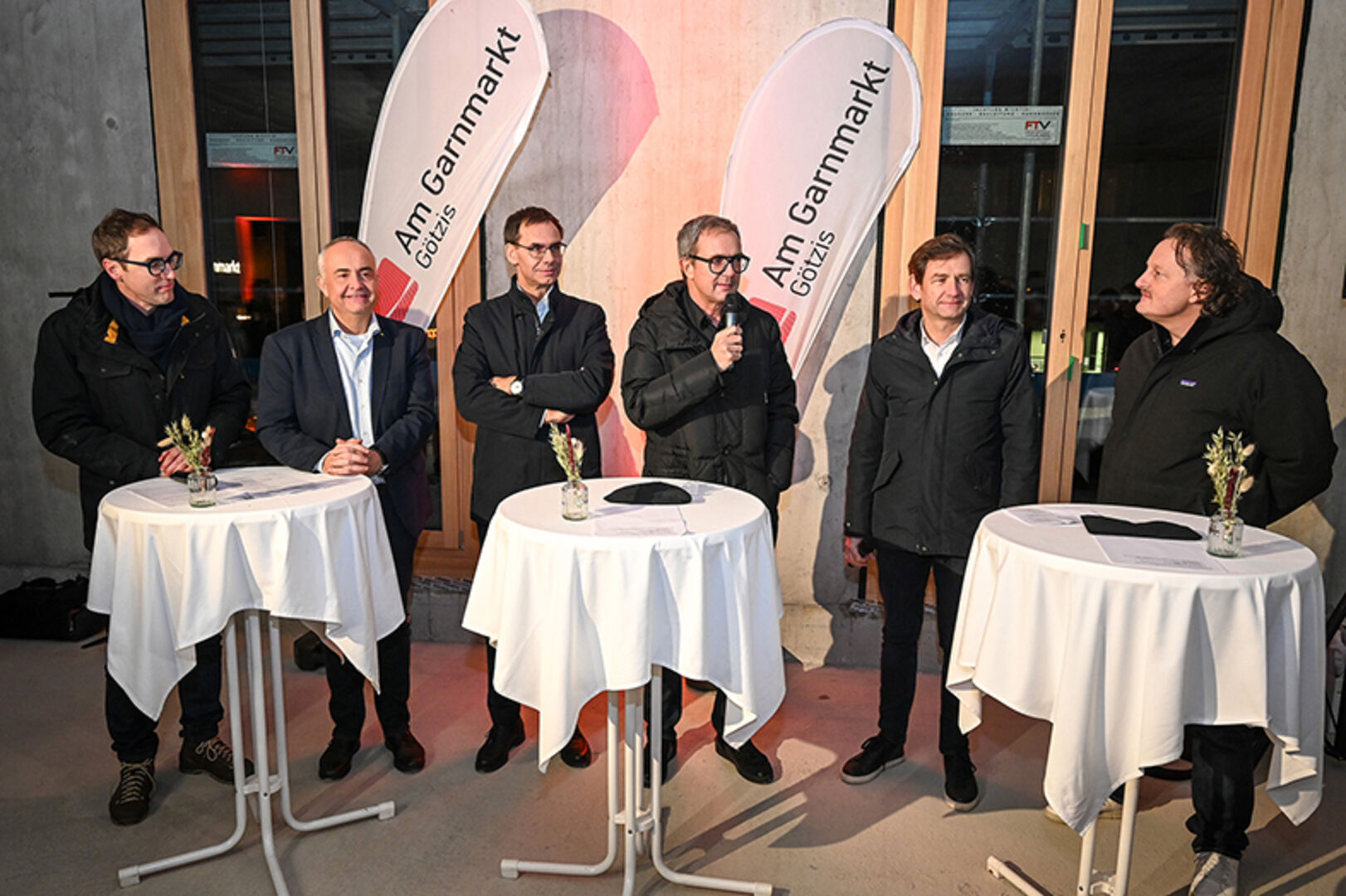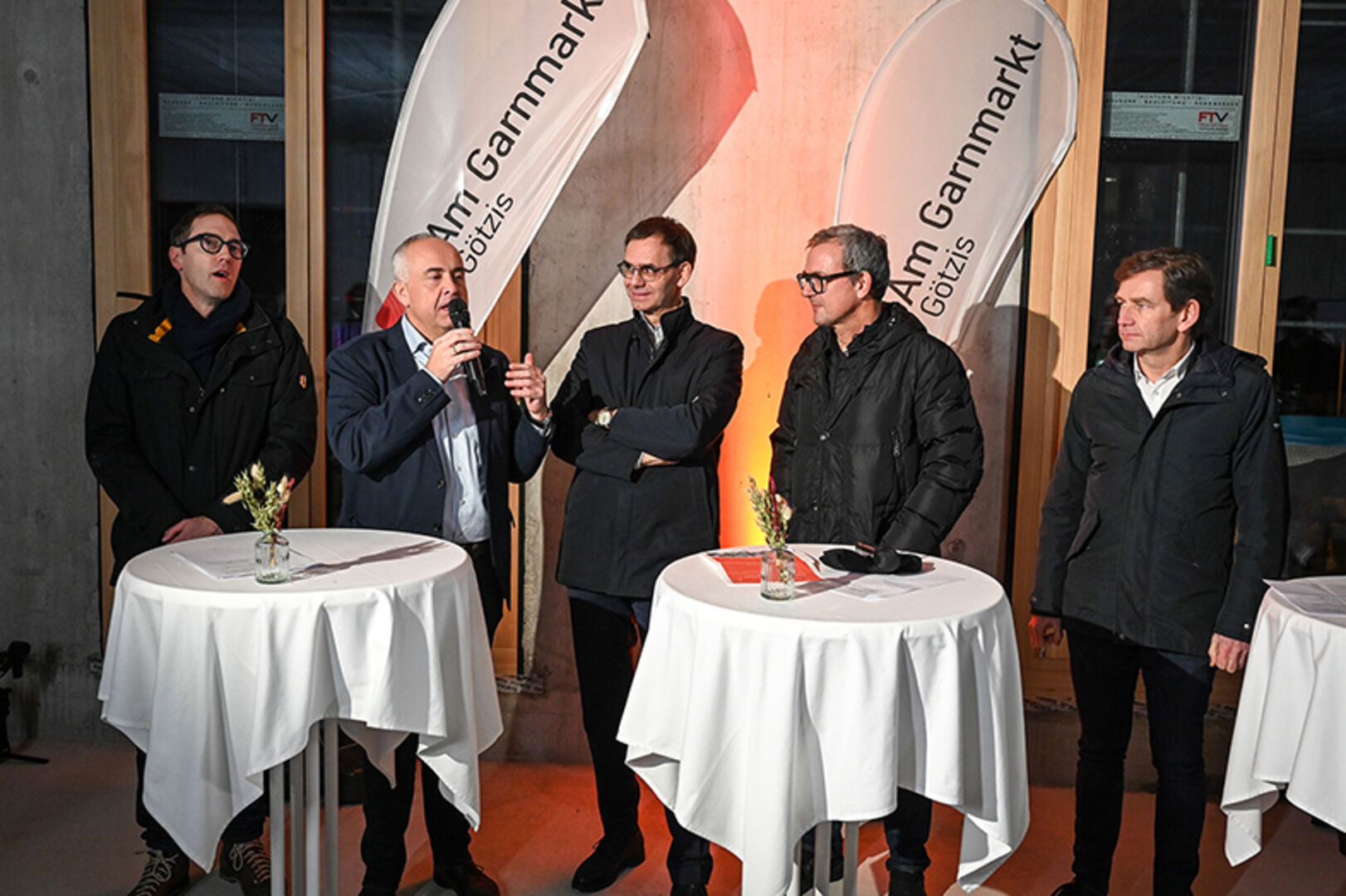 Christoph Albrecht (Baumanagement), Christine und Manuel Dragaschnig, Philipp Sohm (alle Wälderbau) (v. li.)
