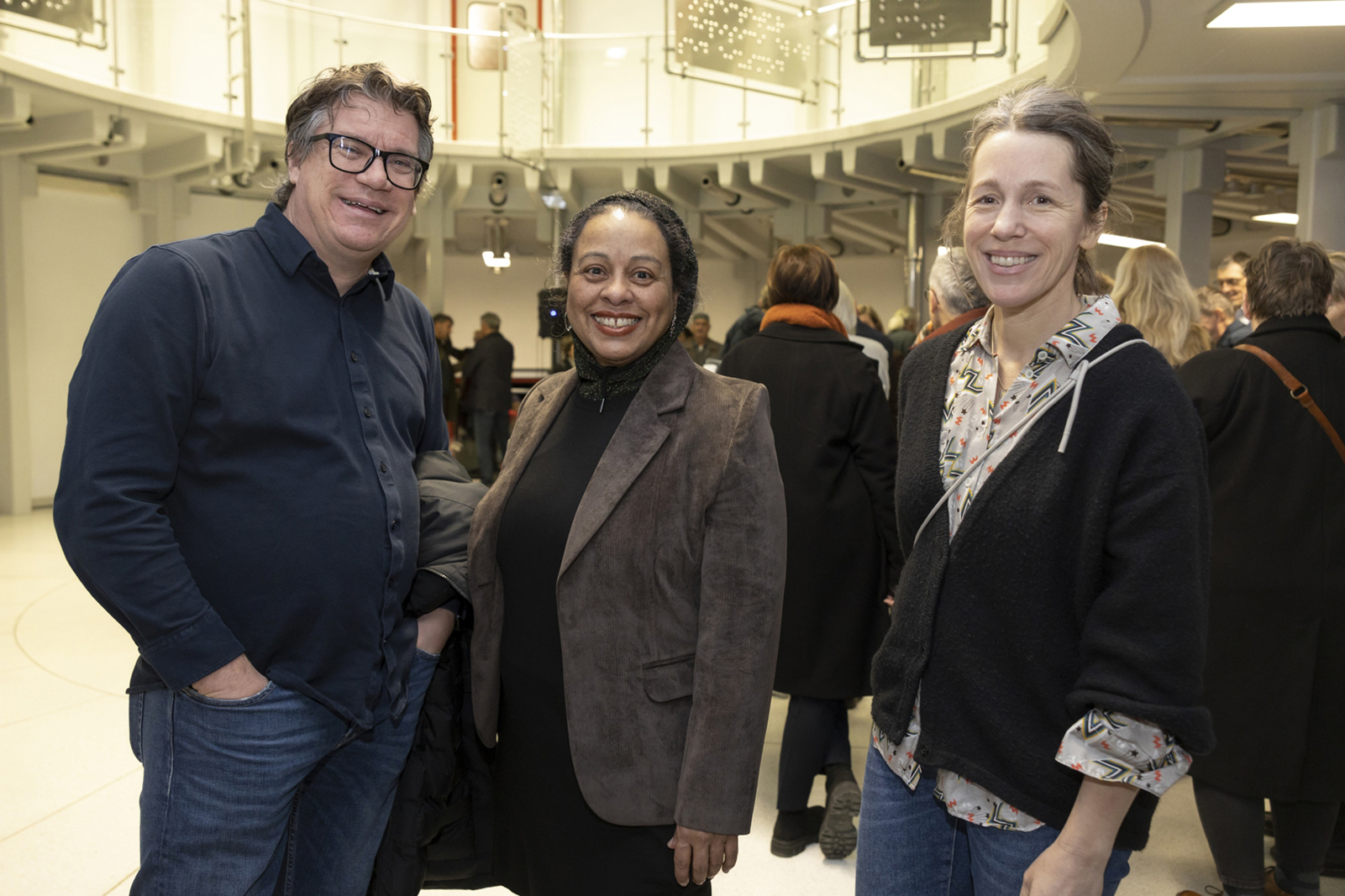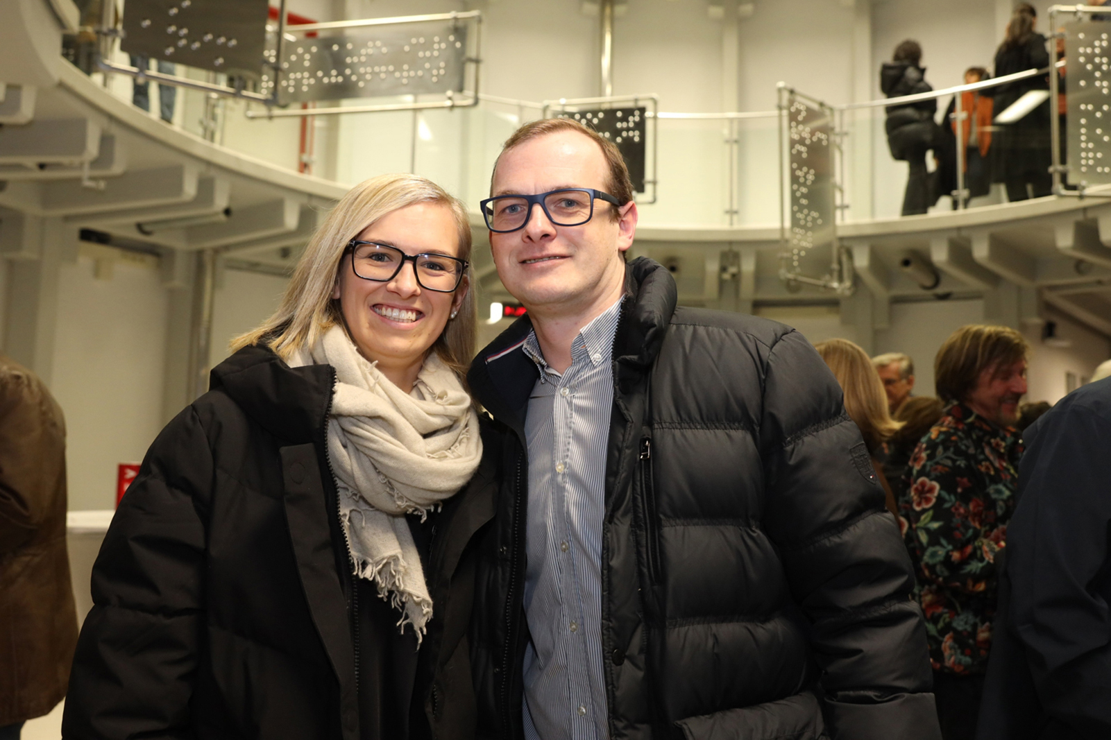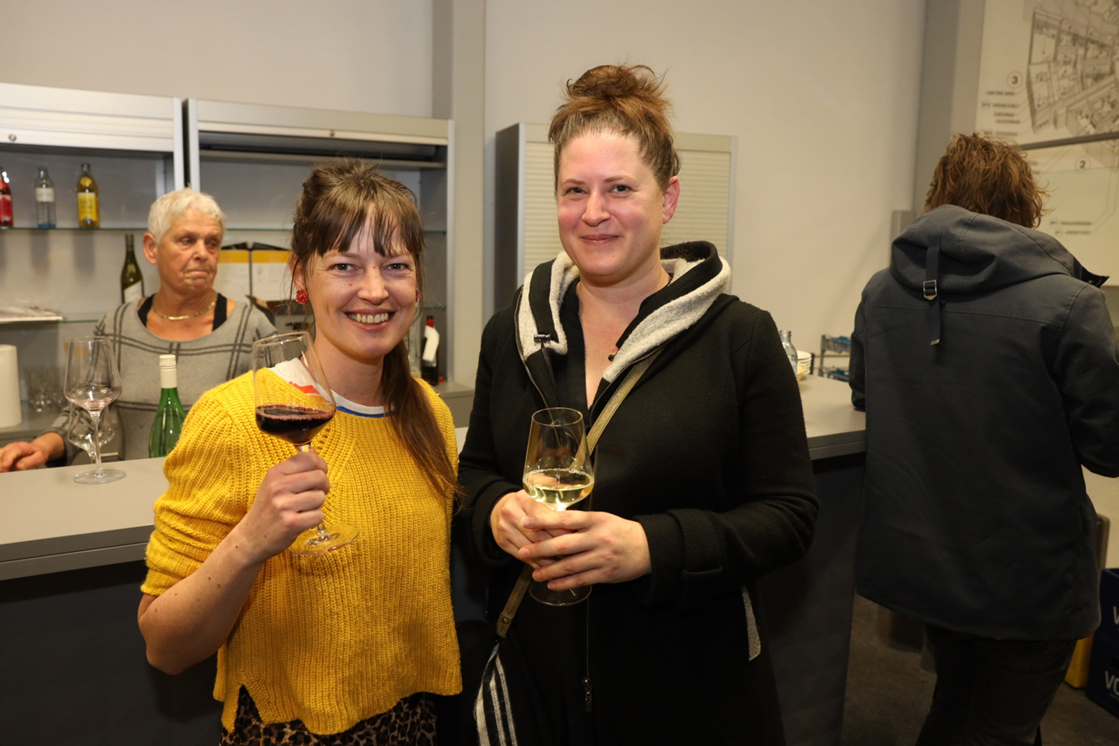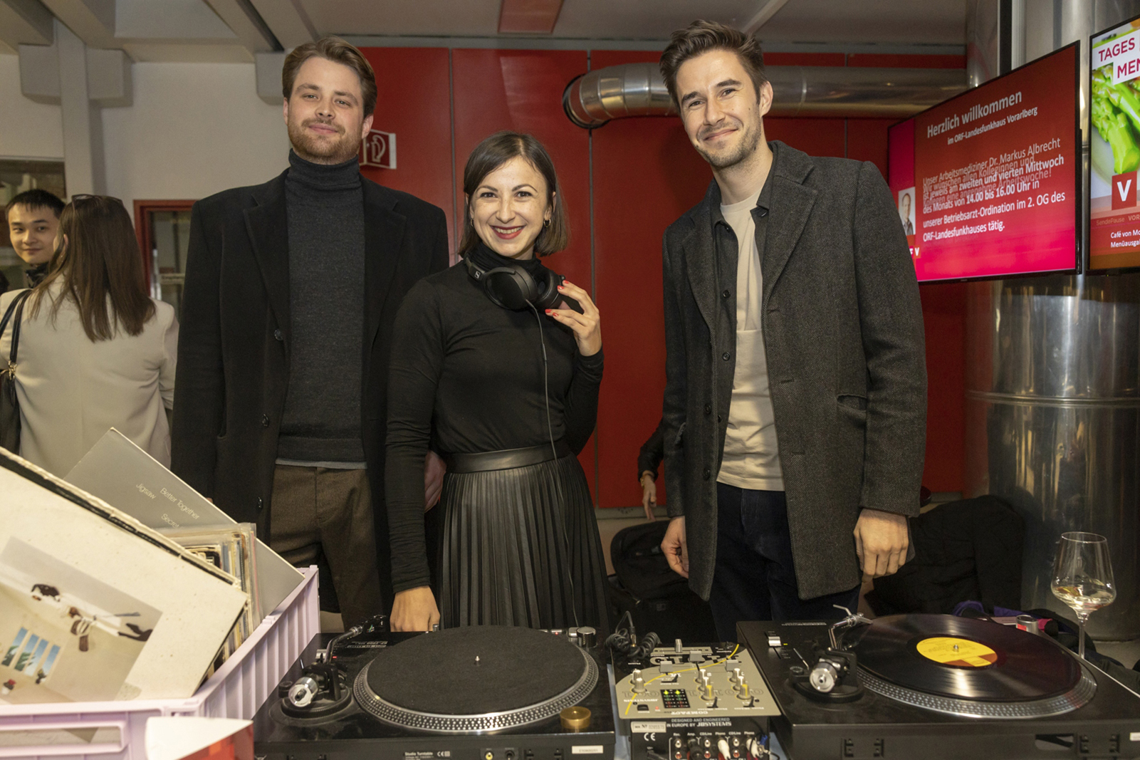 Die beiden Vorarlberger Konzeptkünstler Valentin Hämmerle und Jan Klammer setzen sich dabei mit ihrer Kunst mit Geschichte und Architektur vom ORF-Landesfunkhaus Vorarlberg auseinander. TOP: Bei der anschließenden Party mit DJ-Sound wurde auf die Kunst angestoßen.