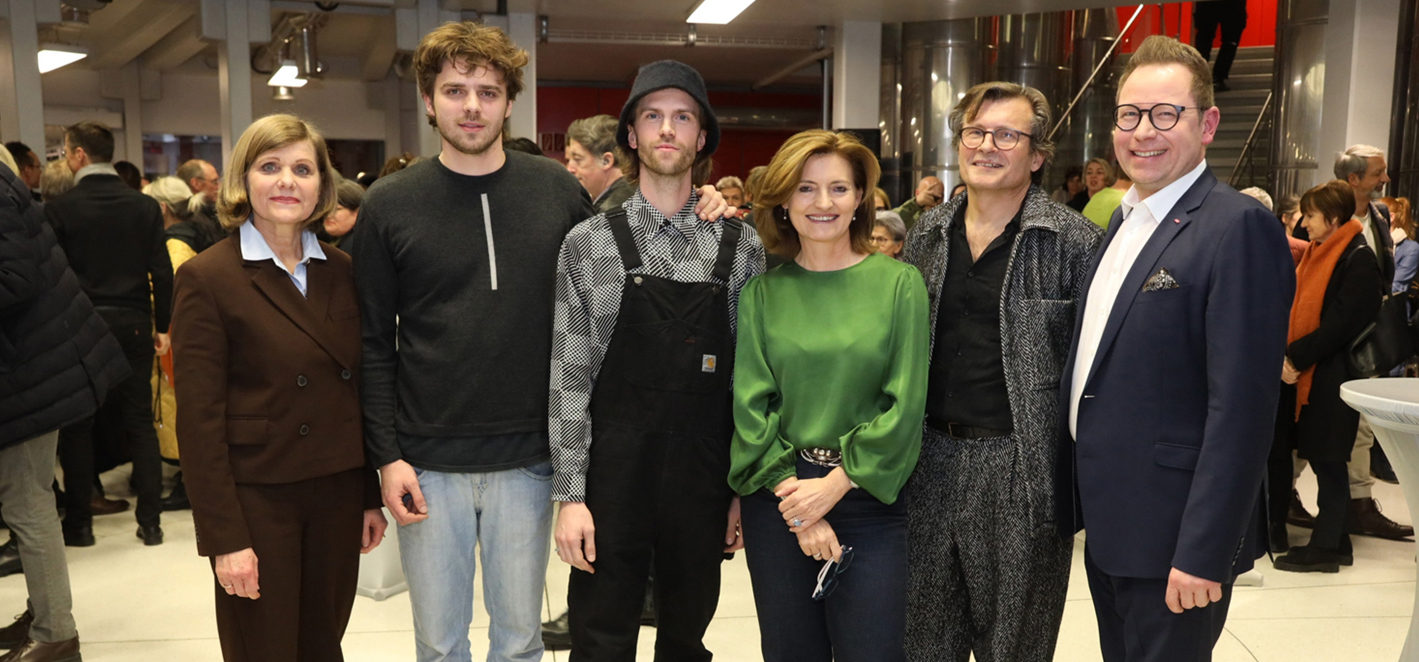 Barbara Schöbi-Fink (Landesstatthalterin und Kulturlandesrätin), Künsterduo Valentin Hämmerle und Jan Klammer, Jasmin Ölz (Kulturkoordinatorin ORFVorarlberg),…