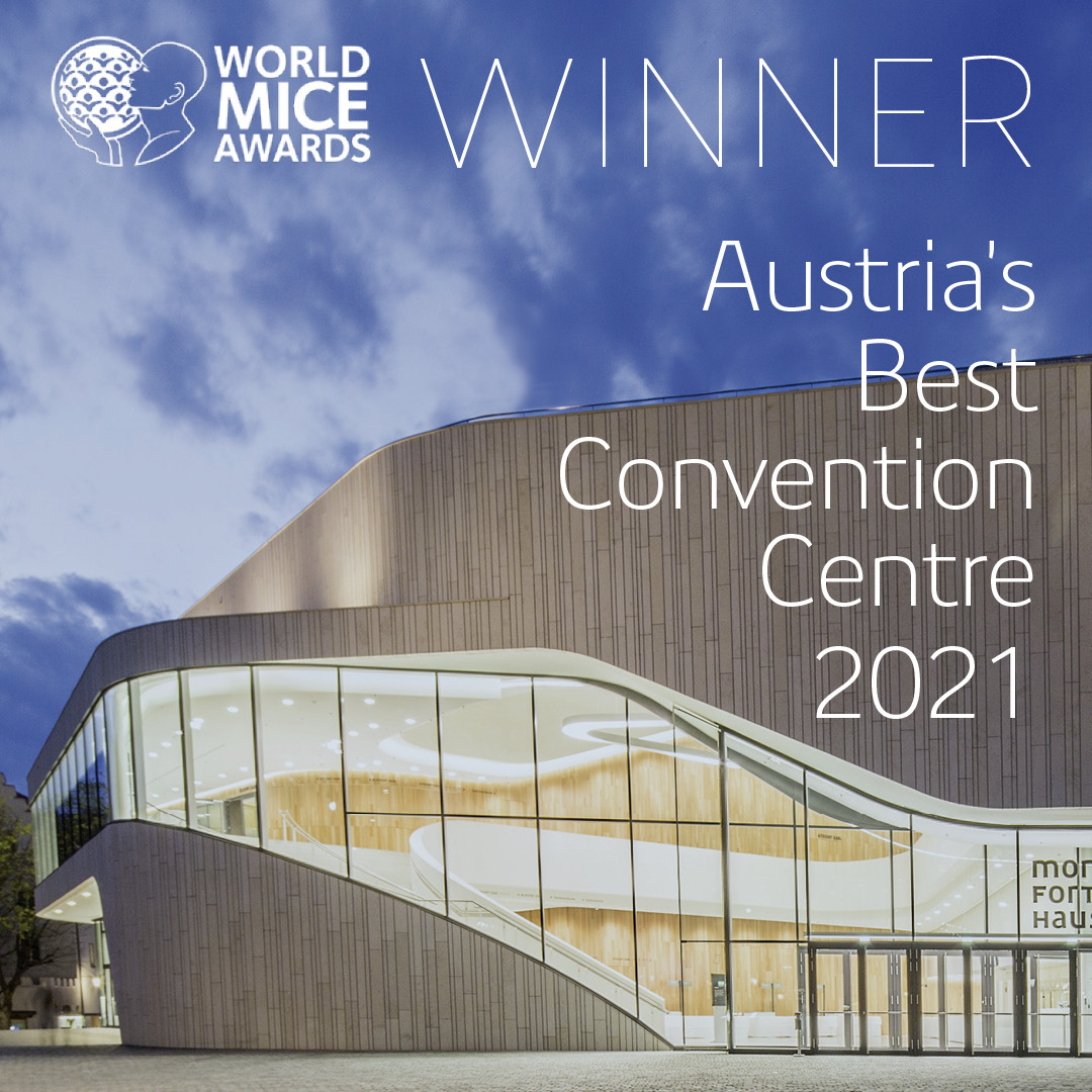 Die „World MICE Awards“ (MICE = Meetings, Incentives, Conventions und Exhibitions) haben sich zum Ziel gesetzt, jedes Jahr die außergewöhnlichsten und besten touristischen Unternehmen auszuzeichnen. In Österreich wurde dieses Jahr das Montforthaus zum besten Kongresszentrum des Landes gekürt. Die World MICE Awards™ dienen dazu, herausragende Leistungen im MICETourismus zu feiern und zu belohnen. Das jährliche Preisverleihungsprogramm zielt darauf ab, Wachstum, Innovationen und Best Practices auf globaler Ebene zu fördern. Branchenexpert*innen sowie Medien und Verbraucher*innen waren eingeladen, für ihre Lieblingsorganisationen abzustimmen. In Österreich nominiert waren neben dem Montforthaus das Messe -und Kongresszentrum Wien, das Austria Center Wien und das Kongresszentrum Alpbach.