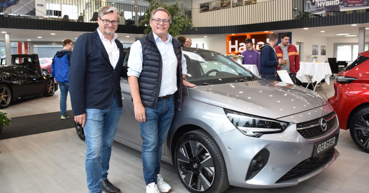 100 % Elektroauto hat man mit dem Opel Corsa E: Otmar Gojtschewitsch und Christoph Gerster