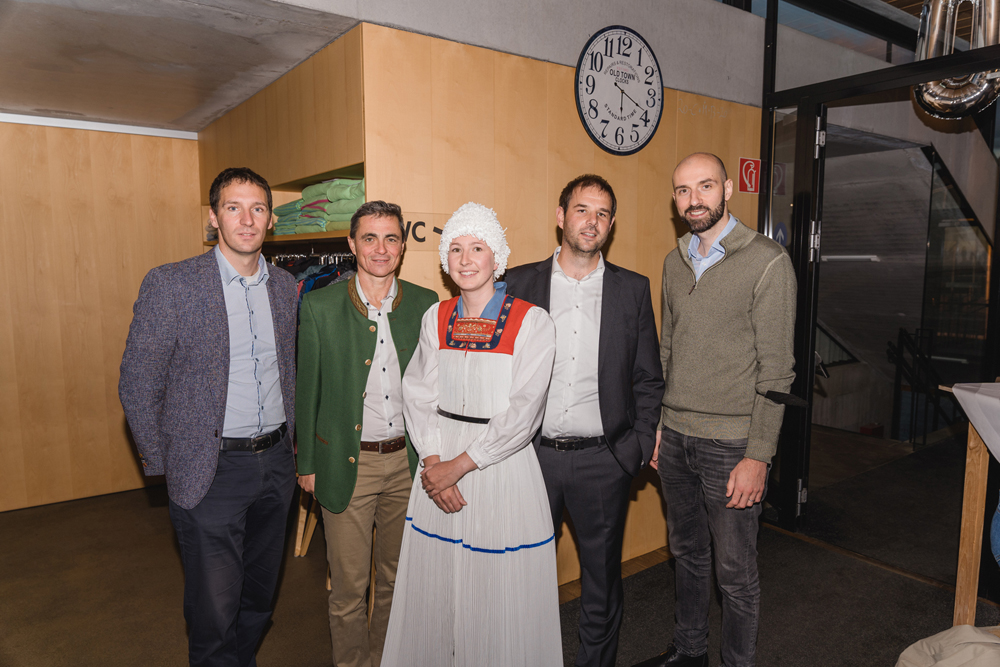 Andrea Schwarzmann (Vizepräsidentin LWK Vorarlberg), Antonella Rupp, Josef Rupp (Rupp AG), Christian Gantner (LR) und Alma Sennerin (Anna Österle) (v. li.)