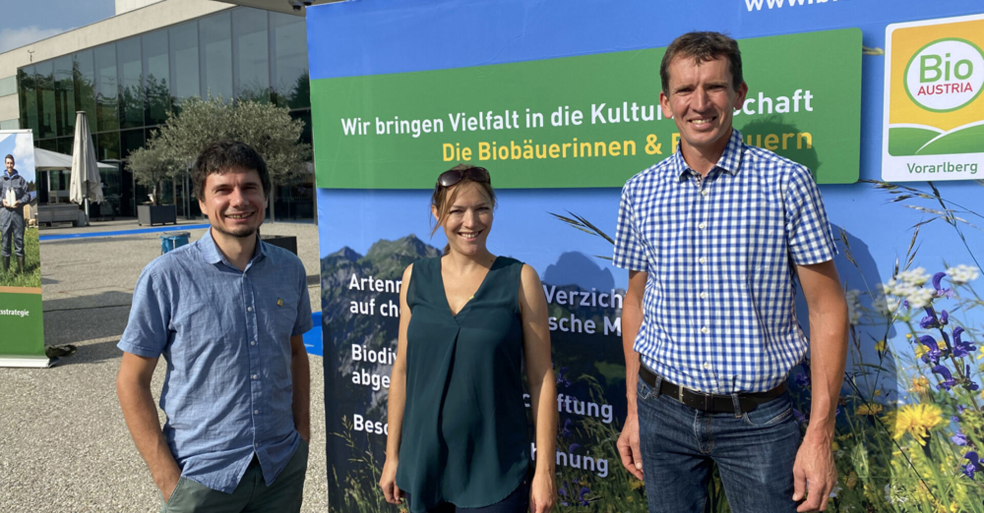 GF Manuel Kirisits, Karin Mayer (Projektleitung Biomarkt) und Obmann Jürgen Bereuter (alle BIO AUSTRIA Vorarlberg) (v. li.).