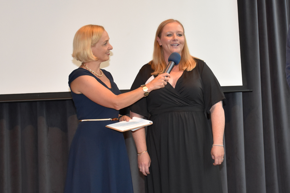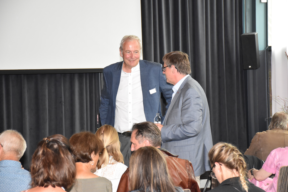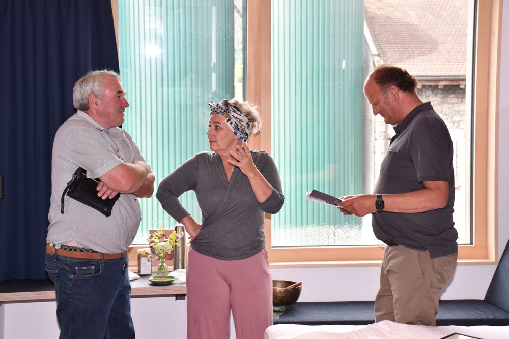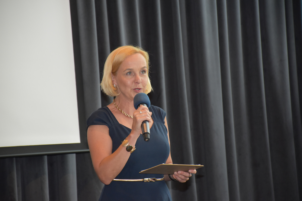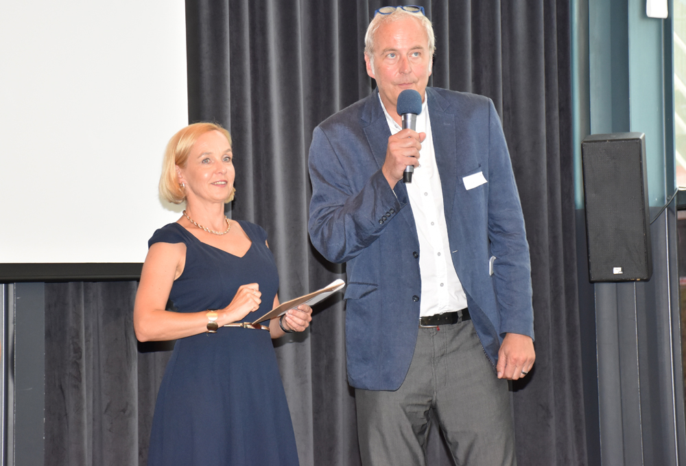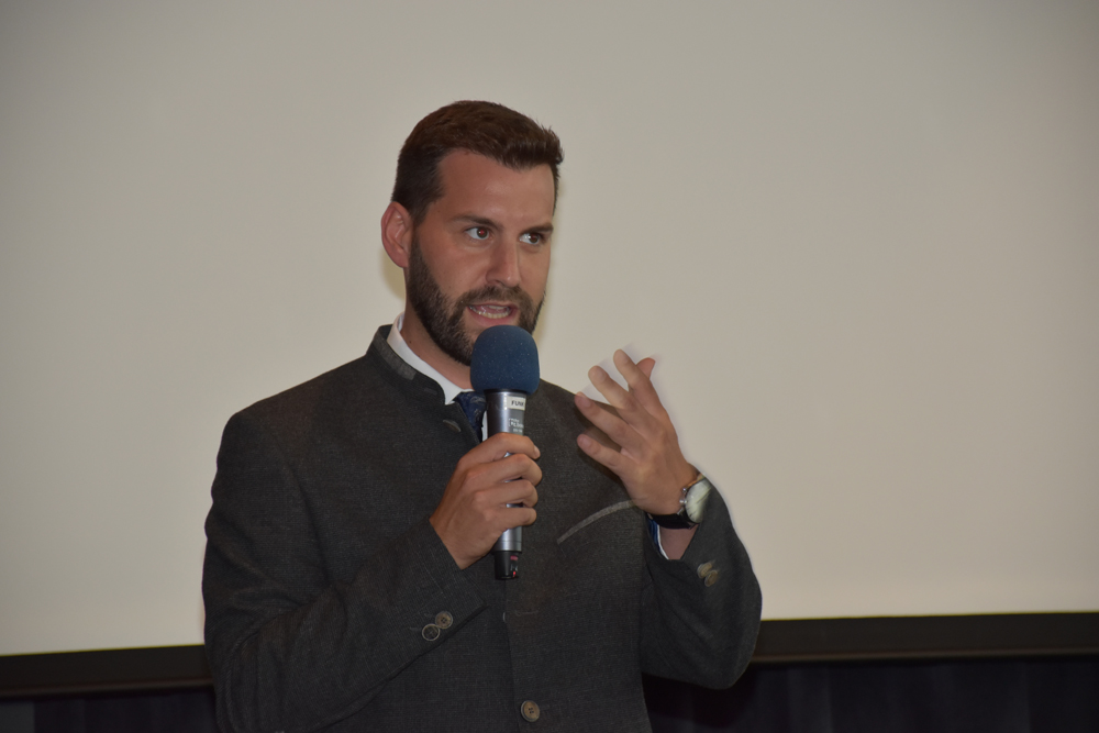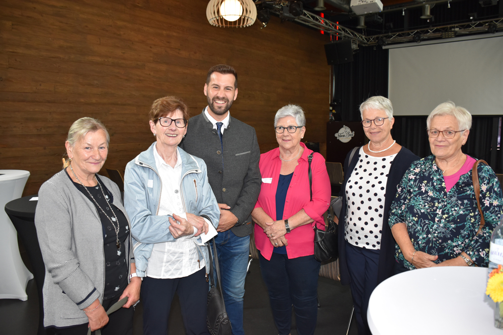 Gastgeber und Einlader des Tourismustag: Moderatorin Heike Montiperle (Pointen & Püree), Wiebke Meyer (GF Alpenregion Bludenz Tourismus), BM Simon Tschann (Präs. des Tourismusverbandes Alpenregion Bludenz), Gerald März (Vorarlberg Tourismus)