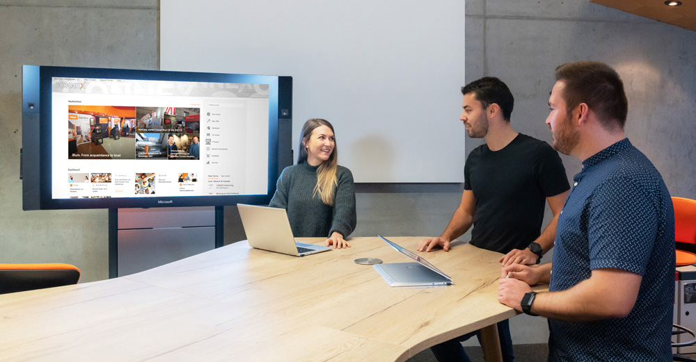 Viva Connections kann von allen Mitarbeiterinnen und Mitarbeitern genutzt werden. Damit trägt Blum dazu bei, dass alle im Unternehmen Zugang zu Technologie und Informationen erhalten. Thomas Hagen dazu: „Wir sind haben zwar viele Mitarbeitende, sind aber dennoch eher wie eine große Familie und eine enge Zusammenarbeit mit persönlichem Austausch ist für uns ganz wichtig. Unsere Werte beruhen auf dem gegenseitigen Dialog, es geht um Kommunikation in beide Richtungen.“ Die Mitarbeitenden setzen die zentrale Plattform für die unterschiedlichsten Dinge ein – von der Kommunikation mit Kolleginnen und Kollegen über die Beantragung von Urlaub oder die Einsichtnahme in Lohnabrechnungen bis hin zu administrativen Aufgaben: „Wir wollen unsere Beschäftigten regelmäßig auf dem Laufenden halten und wir überzeugt, dass sich das positiv auswirkt“, so der Personalleiter weiter. „Außerdem profitieren die Beschäftigten durch die Plattform ganz konkret in Form von Rabatten bei lokalen Partnern und der Möglichkeit, die Pausenverpflegung online direkt an ihren Arbeitsplatz zu bestellen. Das gibt dem Ganzen eine persönliche Note und sorgt für eine breite Akzeptanz“, ergänzt Markus Meusburger.