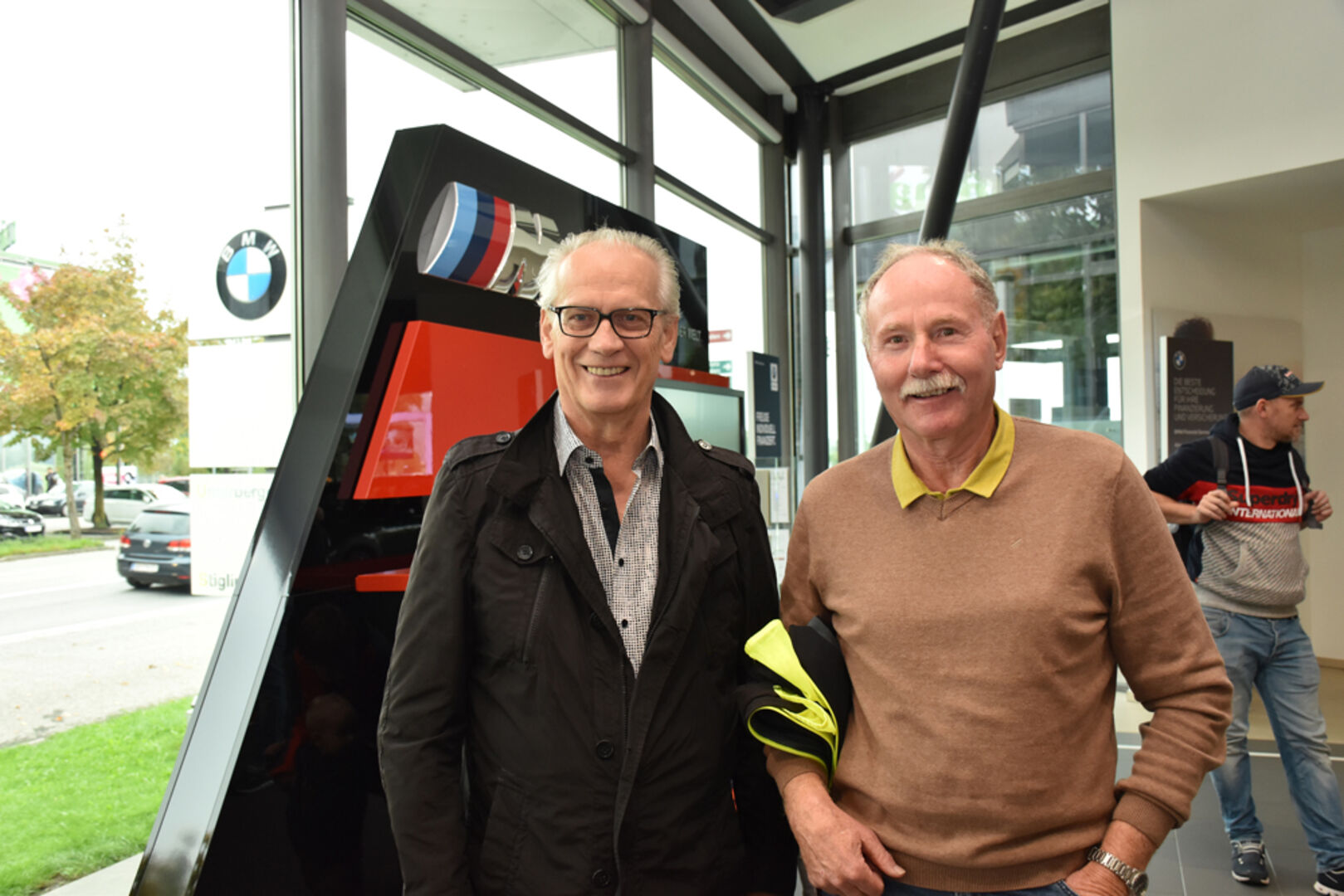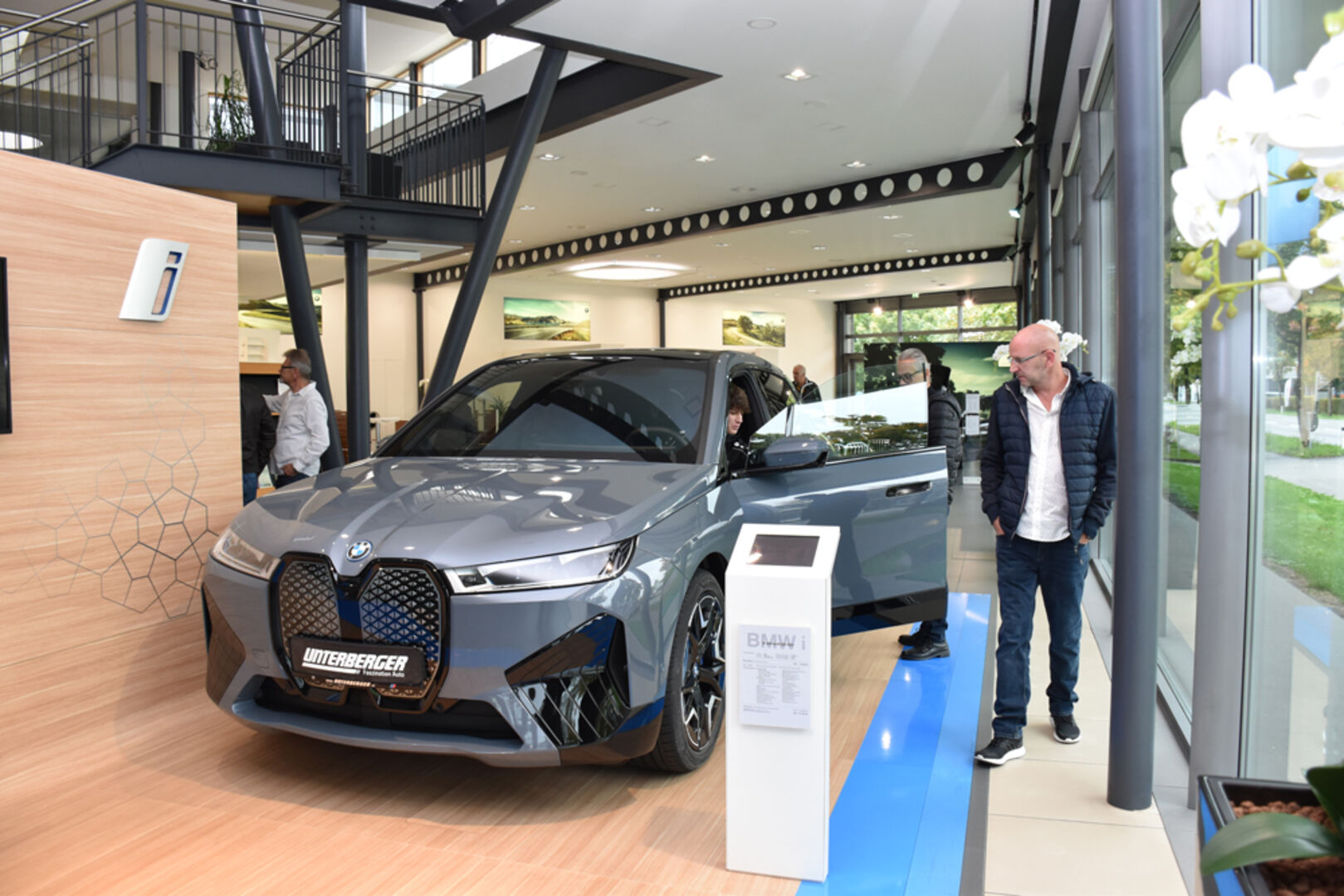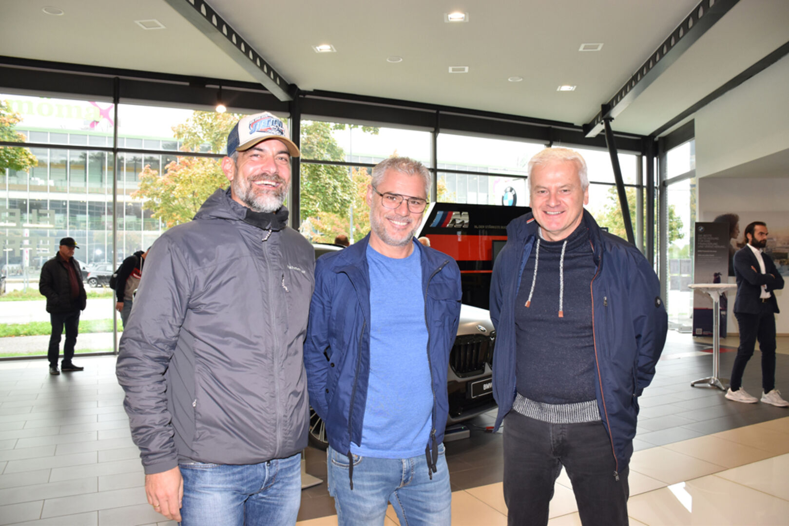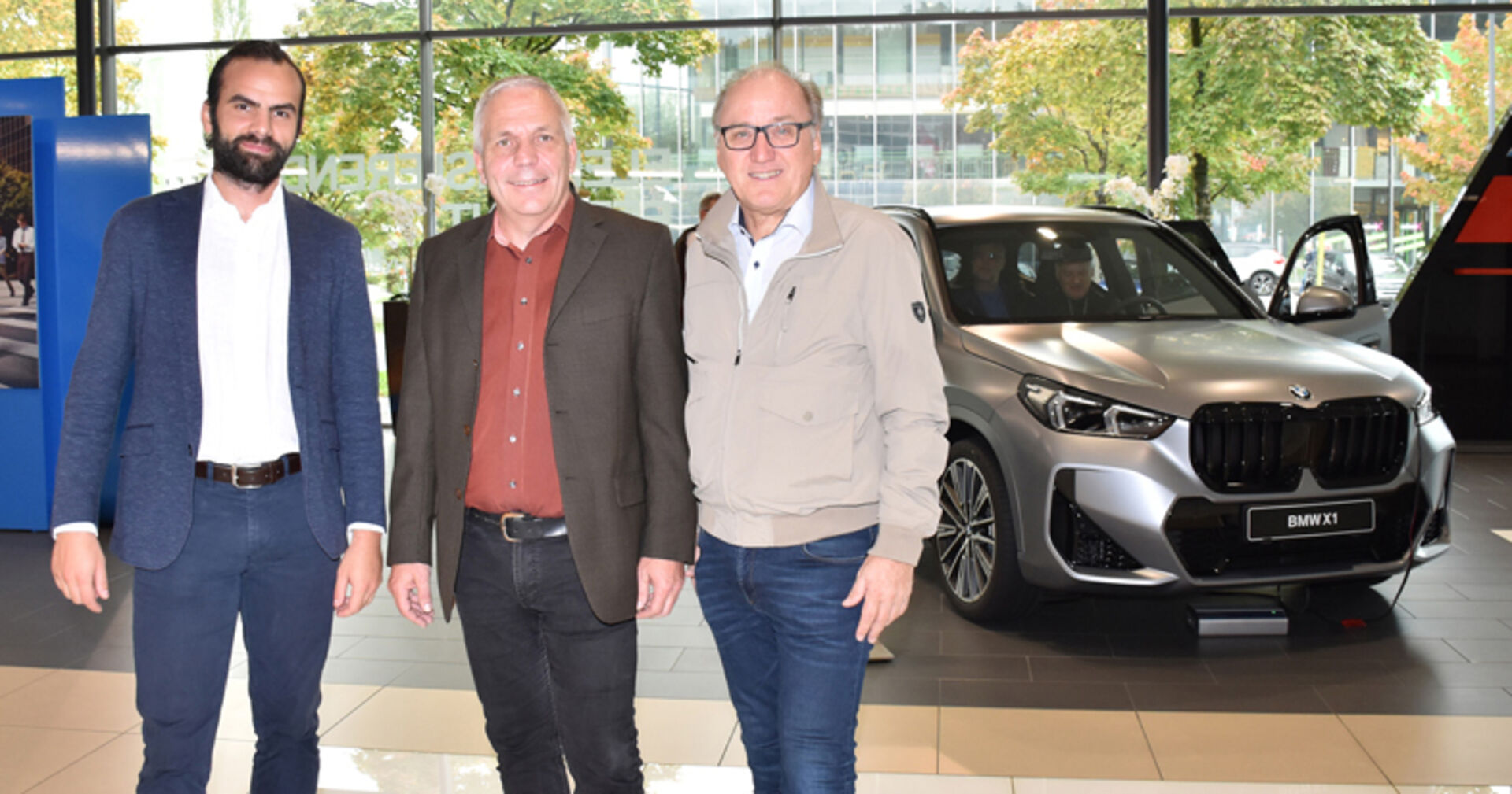 BMW-Key Account Manger Leandros Tsohataridis, BMW Unterberger-Betriebsleiter Markus Spiegel und Burkhard Berchtel (v. li.)