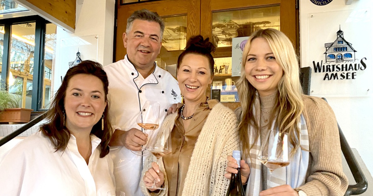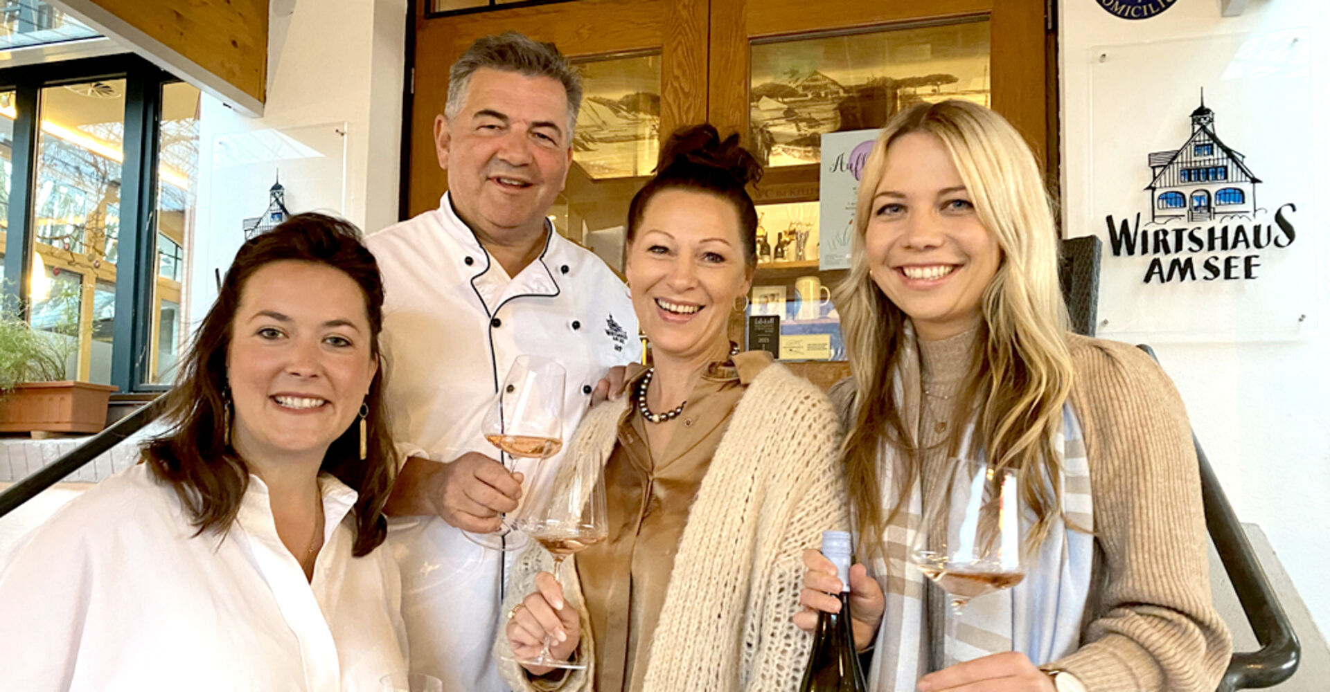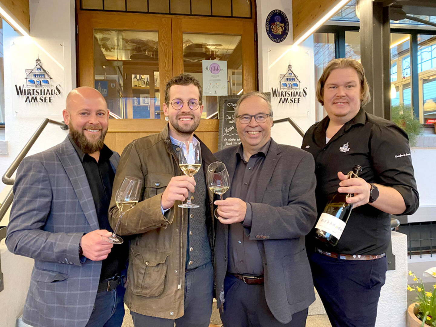 Winzerin Lisa Vollmayer (Hohentwiel), Wirtshaus am See Gastgeber Martin und Daniela Berthold und Winzerin Viola Kress (Hagnau/Überlingen) (v. li.)