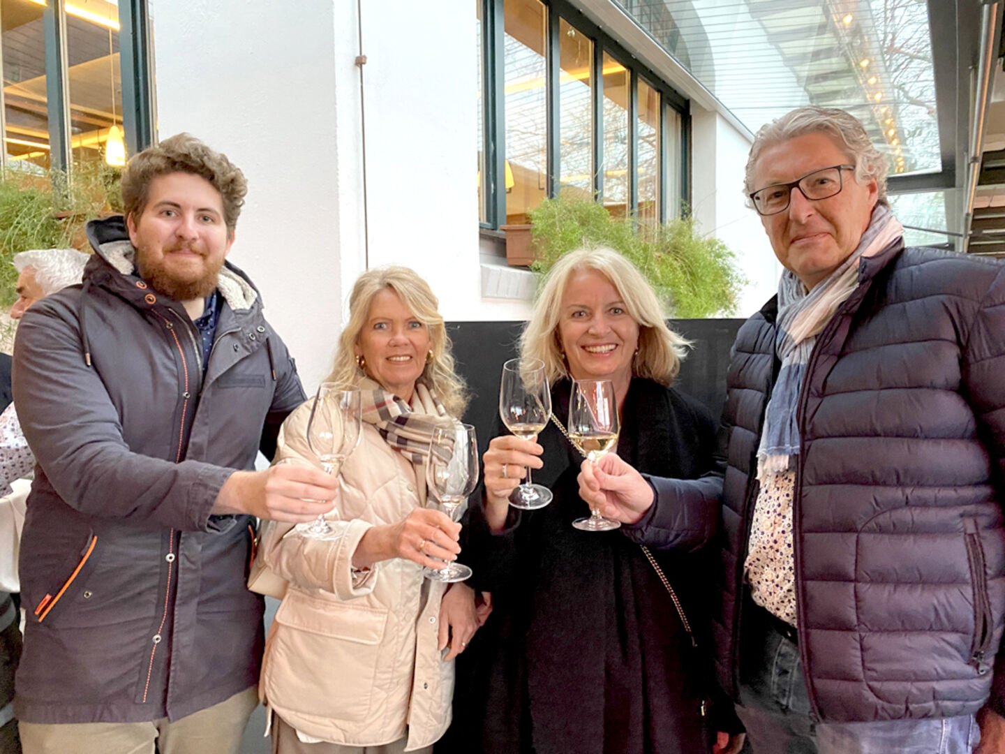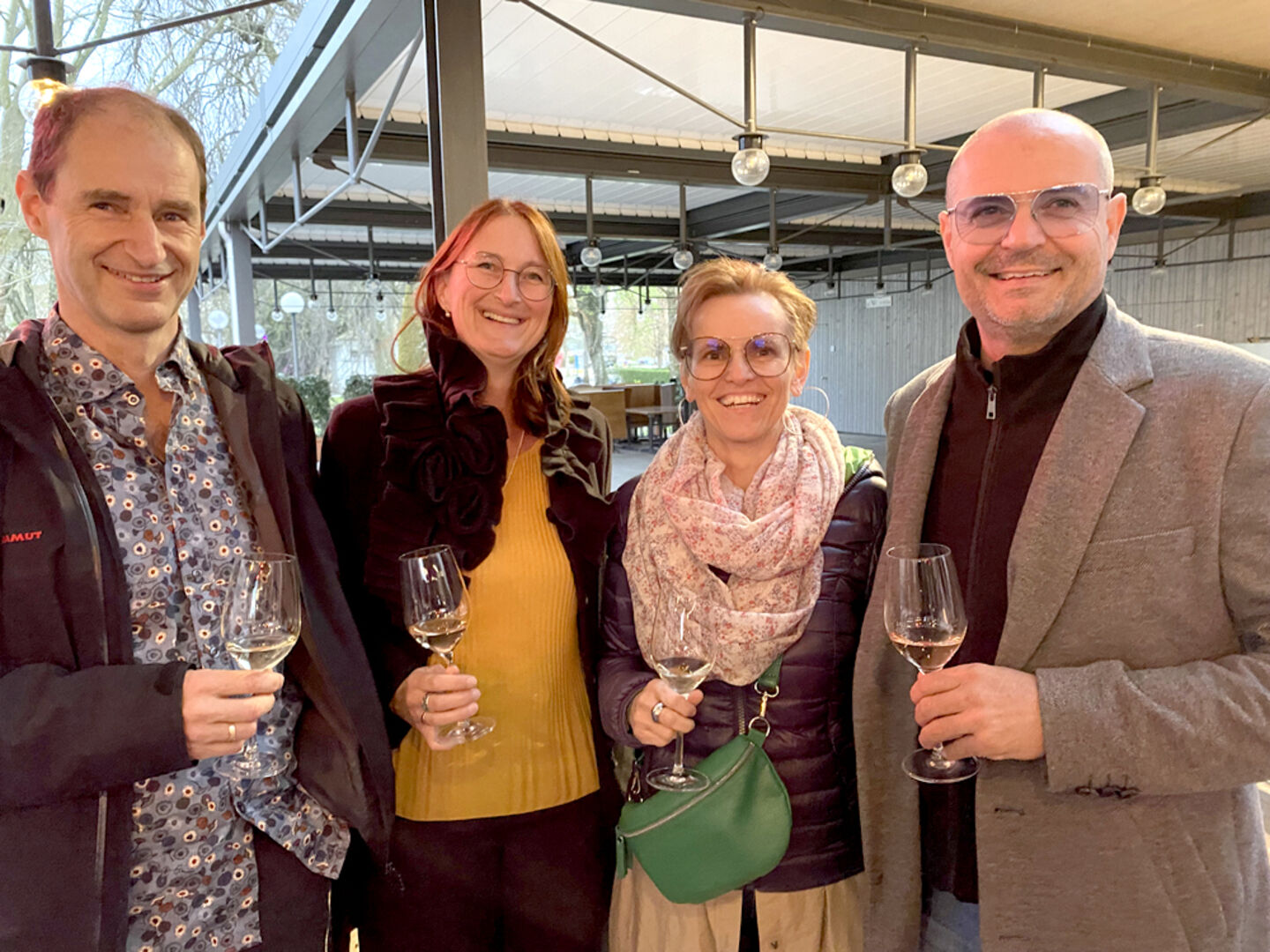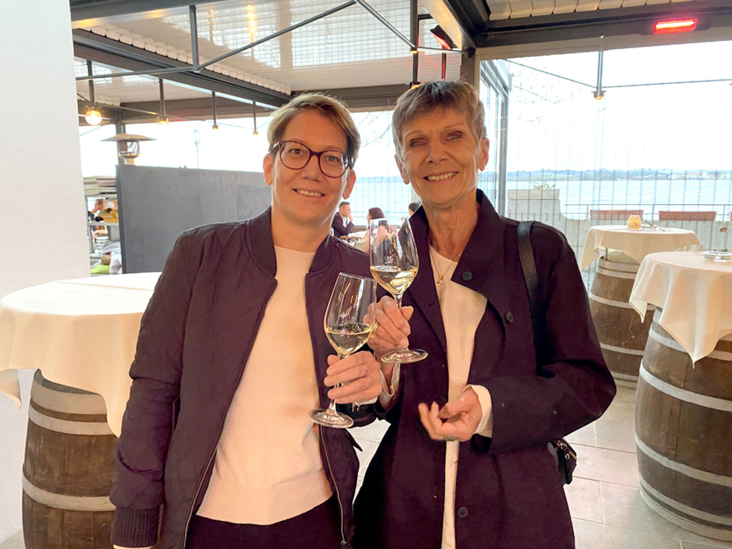 Winzerin Lisa Vollmayer (Hohentwiel), Wirtshaus am See Gastgeber Martin und Daniela Berthold und Winzerin Viola Kress (Hagnau/Überlingen) (v. li.)