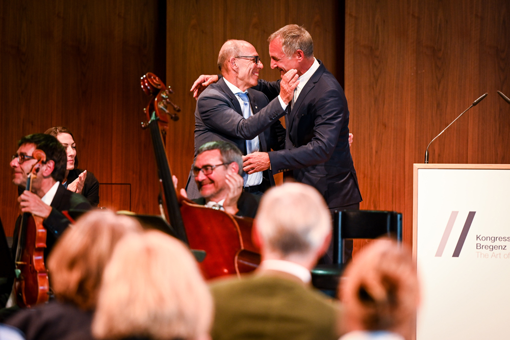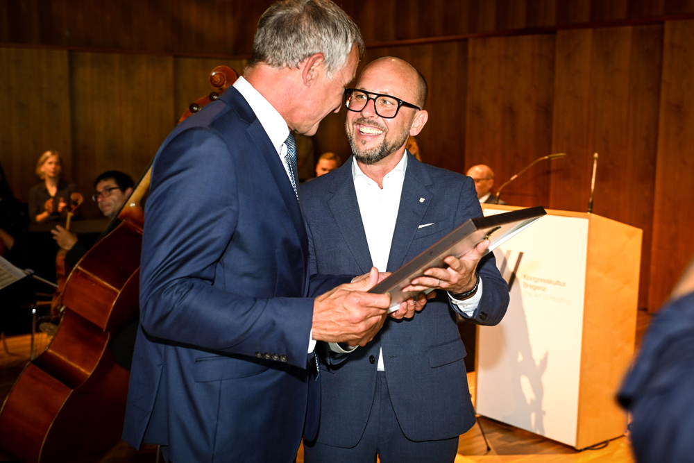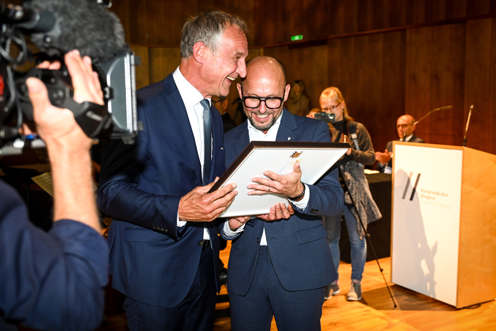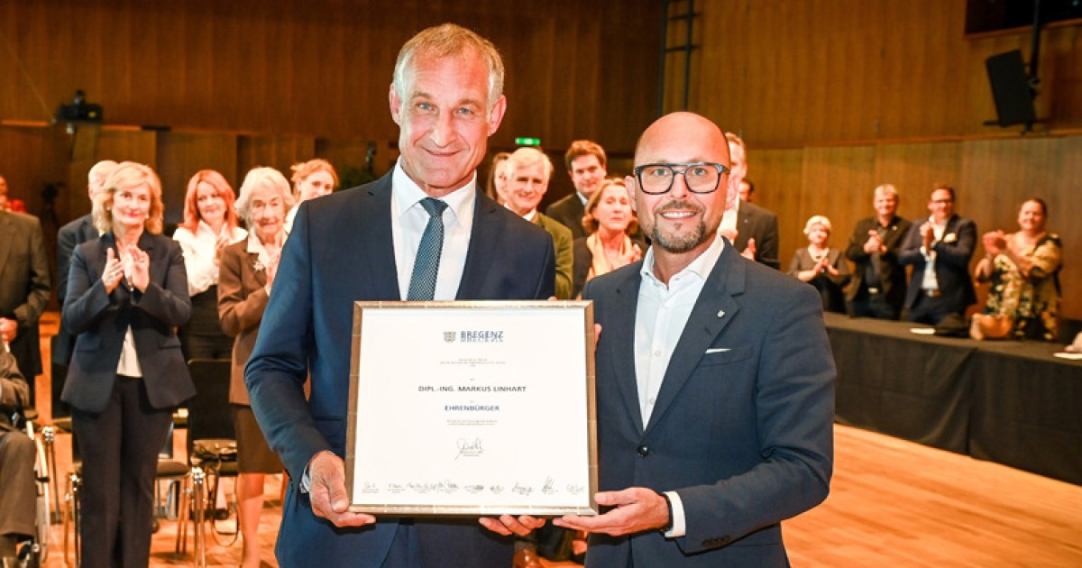 In Bregenz werden Ehrenbürgschaften seit immerhin 174 Jahren verliehen, diesmal an Alt-Bürgermeister Markus Linhart durch Bürgermeister Michael Ritsch.
