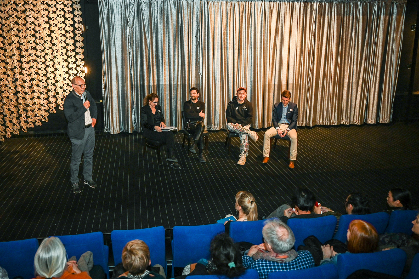StR. Kultur Michael Rauth, Judith Reichart (Intendantin Bregenzer Frühling), Tänzer Aimilios Arapoglou und Choreograf Damien Jalet und Bregenzer Frühling Sponsor Manfred Miglar (Vorstand Raiffeisen Landesbank)