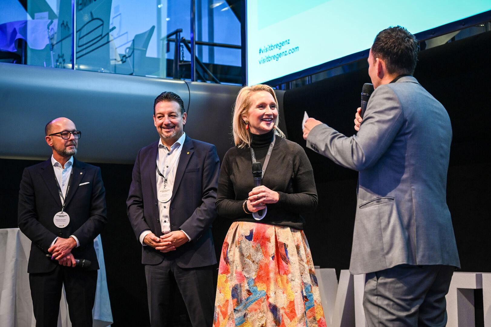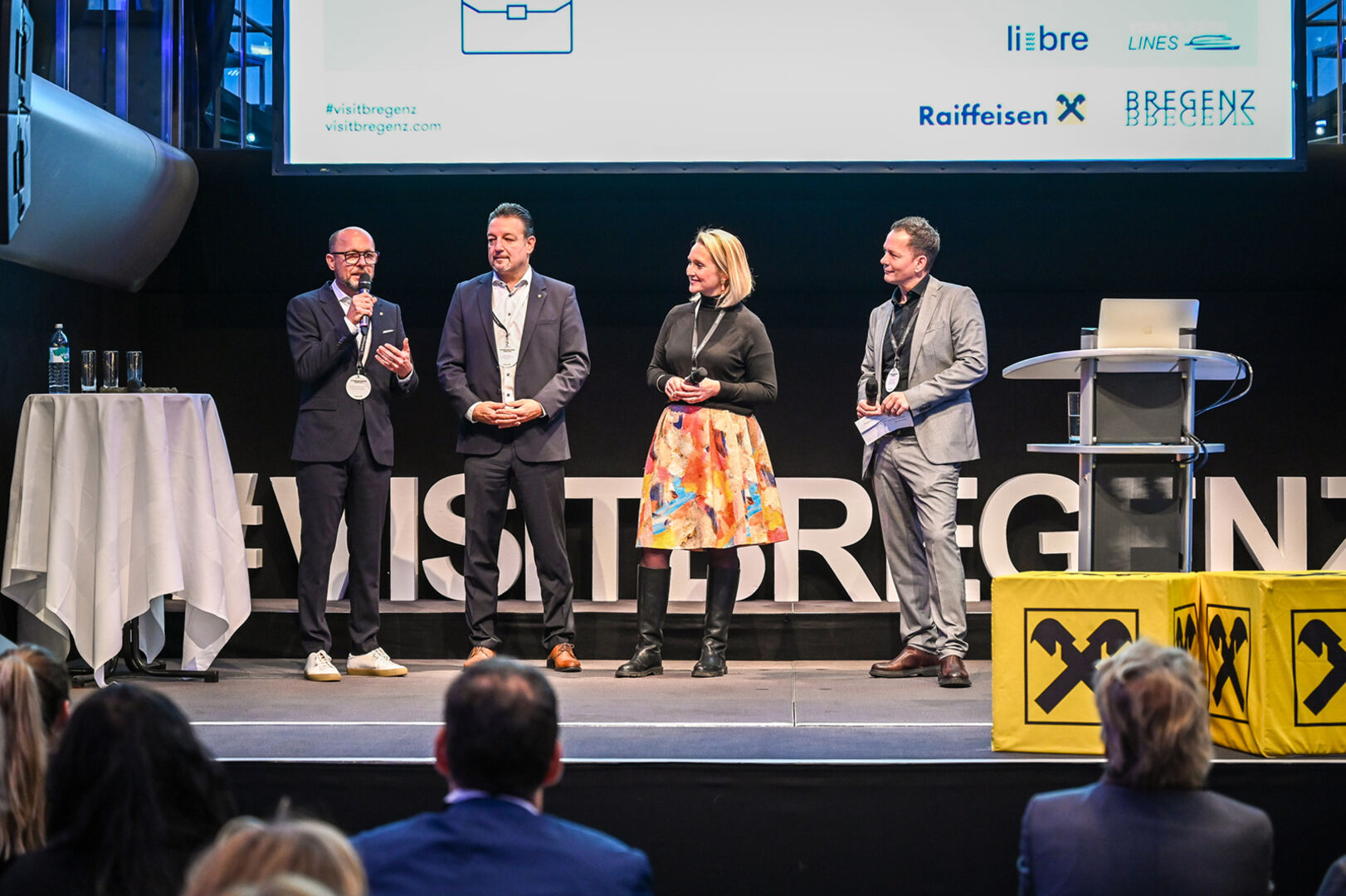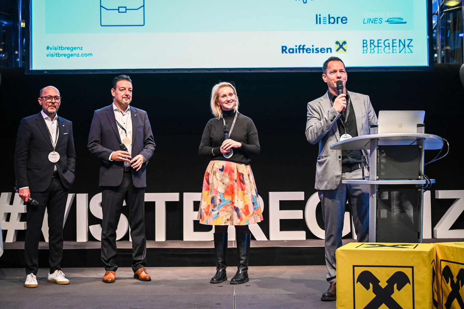 Im BIld oben: Lindau Oberbürgermeisterin Claudia Alfons, Marktvorstand Manfred Miglar (Raiffeisen Landesbank), Bregenz Bürgermeister Michael Ritsch, GF Robert. S. Salant (Tourismus & Stadtmarketing Bregenz) (v. li.)