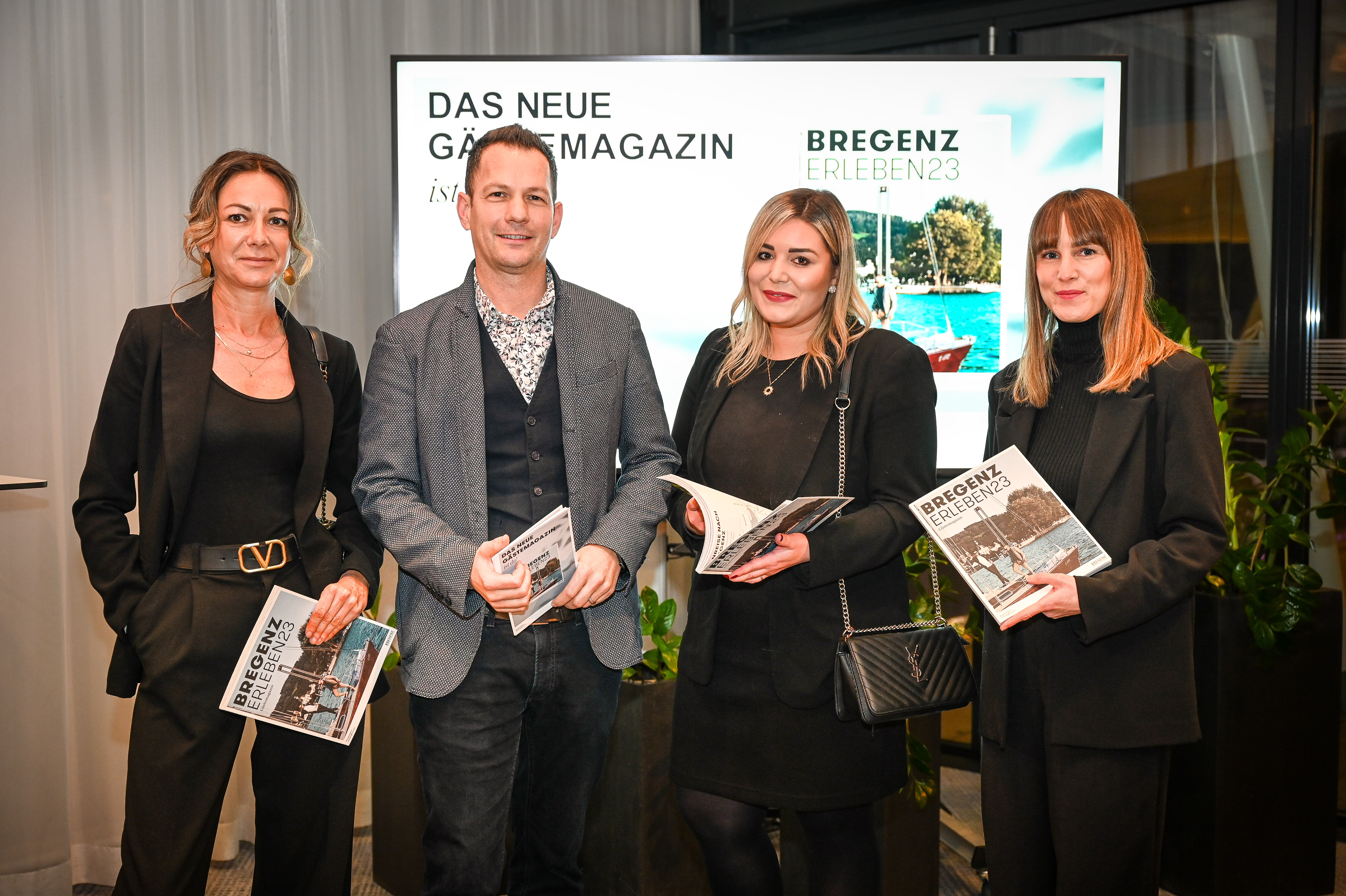 BREGENZERLEBEN druckfrisch: Herausgeber GF Robert S. Salant (Bregenz Tourismus & Stadtmarketing), Grafikerin Petra Wolfgang, Bgm. Michael Ritsch, Christina Egger (Projektleiterin) und Senior Casino Manager Josef Steurer (v. li.)