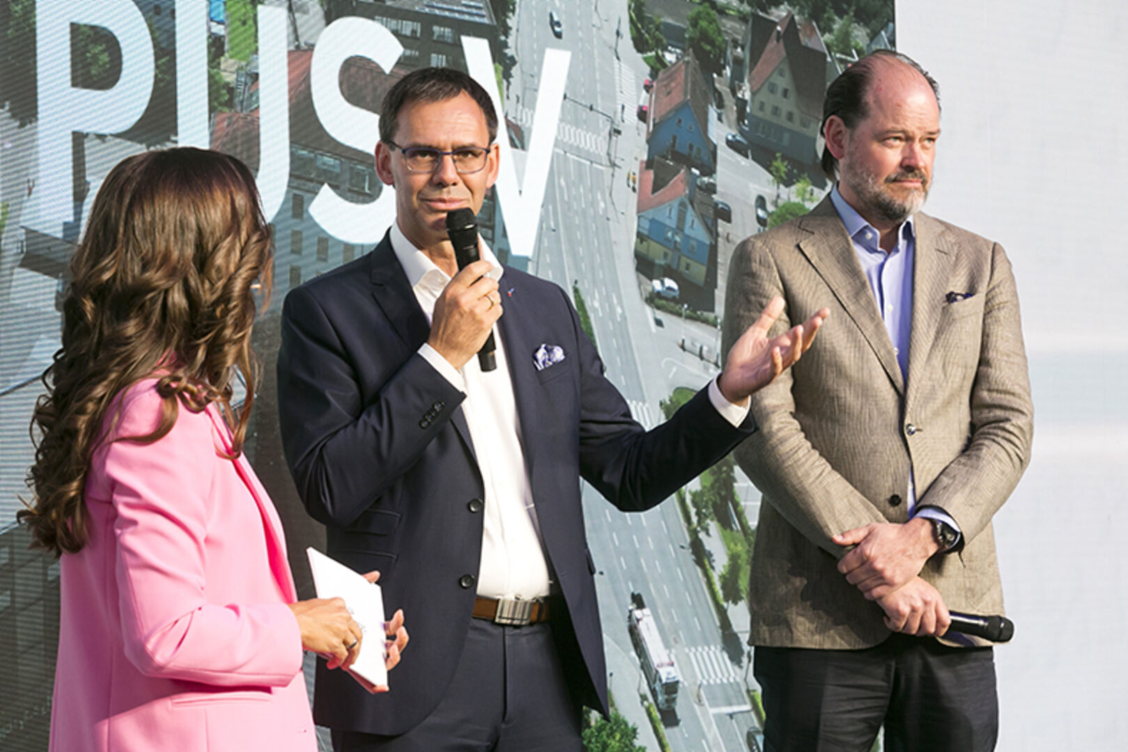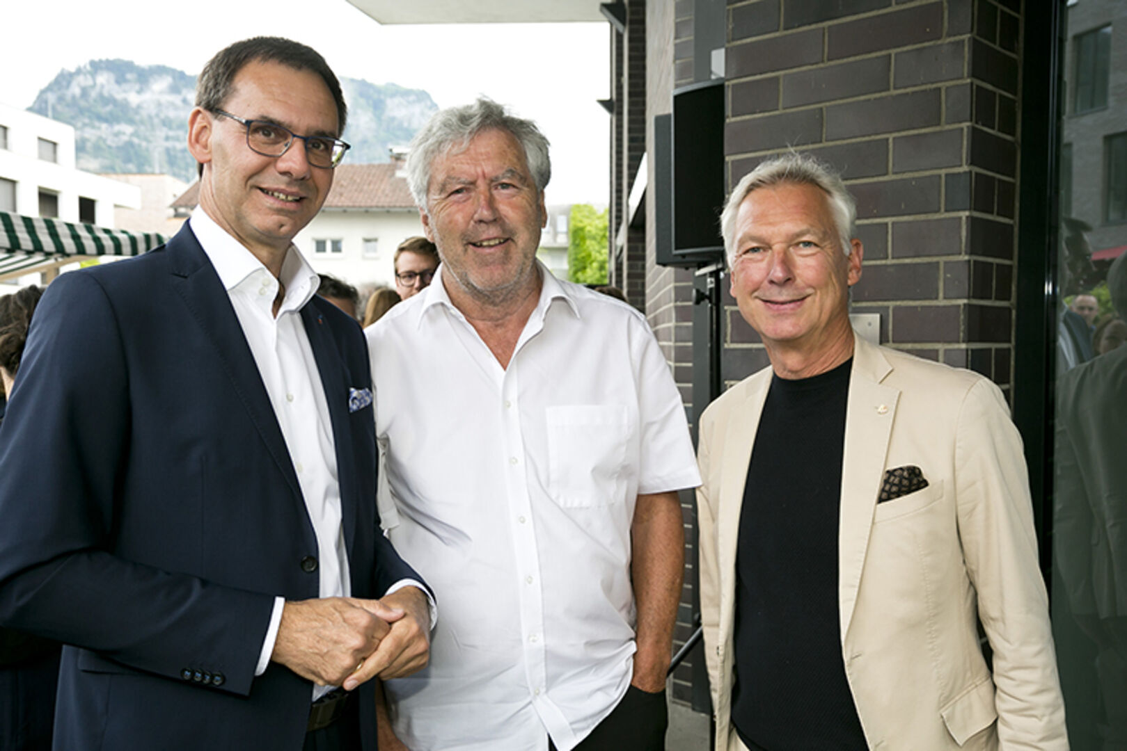 CEO Thomas Lorünser (Photeon), Vorstand Bernhard Ölz (Prisma), Kathrin Cometto, Landesrat Marco Tittler und Festspiel-Präsident Hans-Peter Metzler (v. li.)