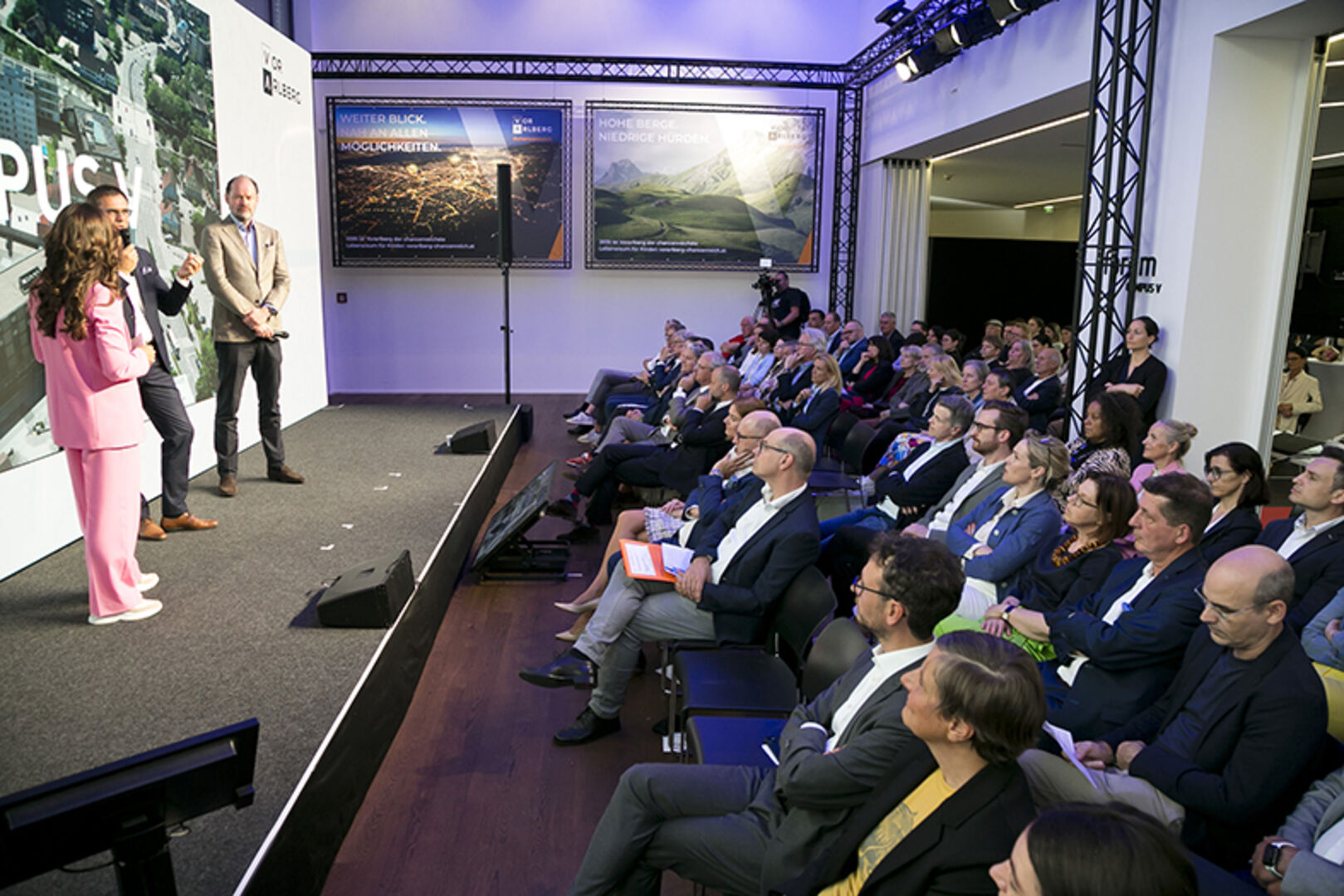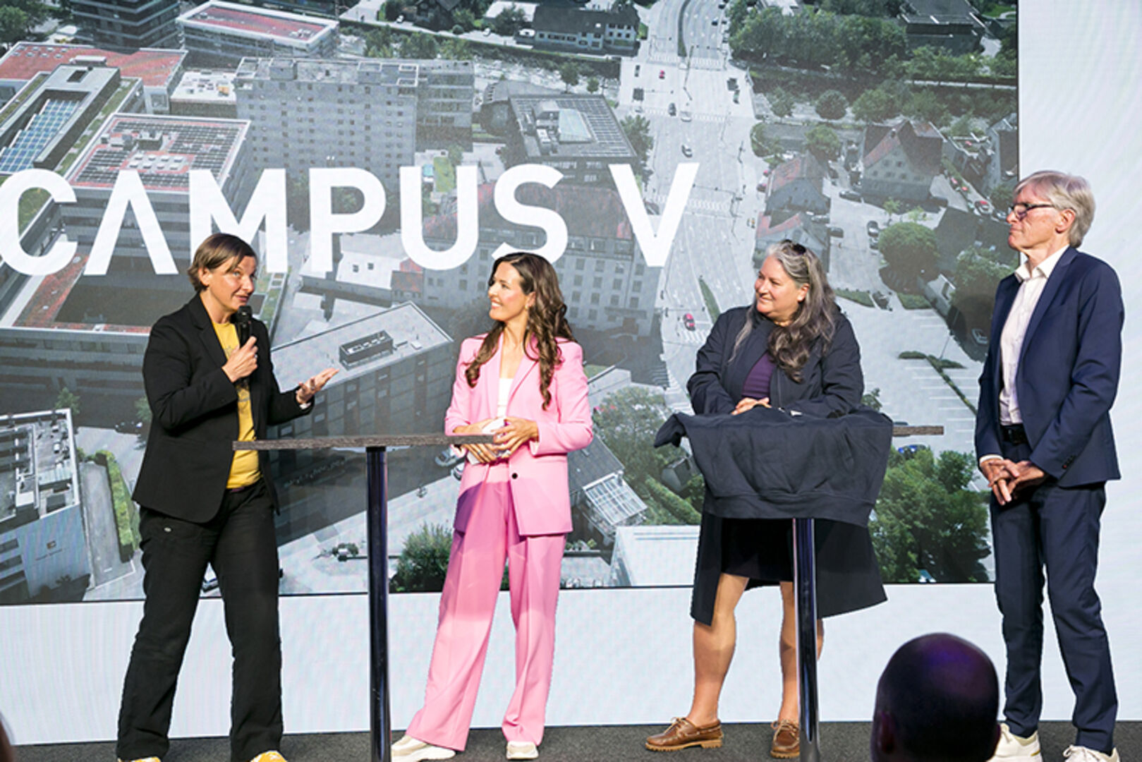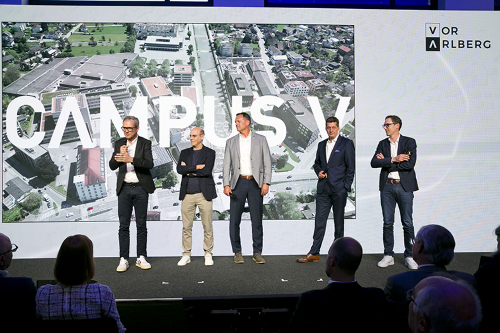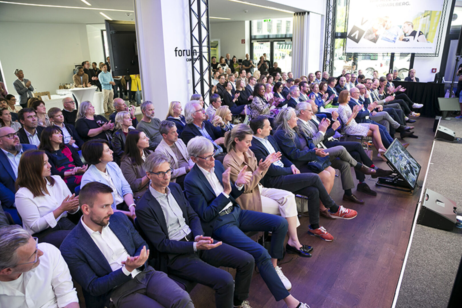 Bei einem Konvent mit rund 130 Gäste aus Wirtschaft, Bildung, Kreativwirtschaft im „forum CAMPUS V“, zu dem die Landesregierung gemeinsam mit der Koordinationsstelle Marke Vorarlberg eingeladen hatte, wurde das bisher Erreichte resümiert. TOP: Vor allem aber gaben die Verantwortlichen einen Ausblick auf die Zukunft und die konkrete Weiterentwicklung des Leuchtturmprojekts CAMPUS V.
