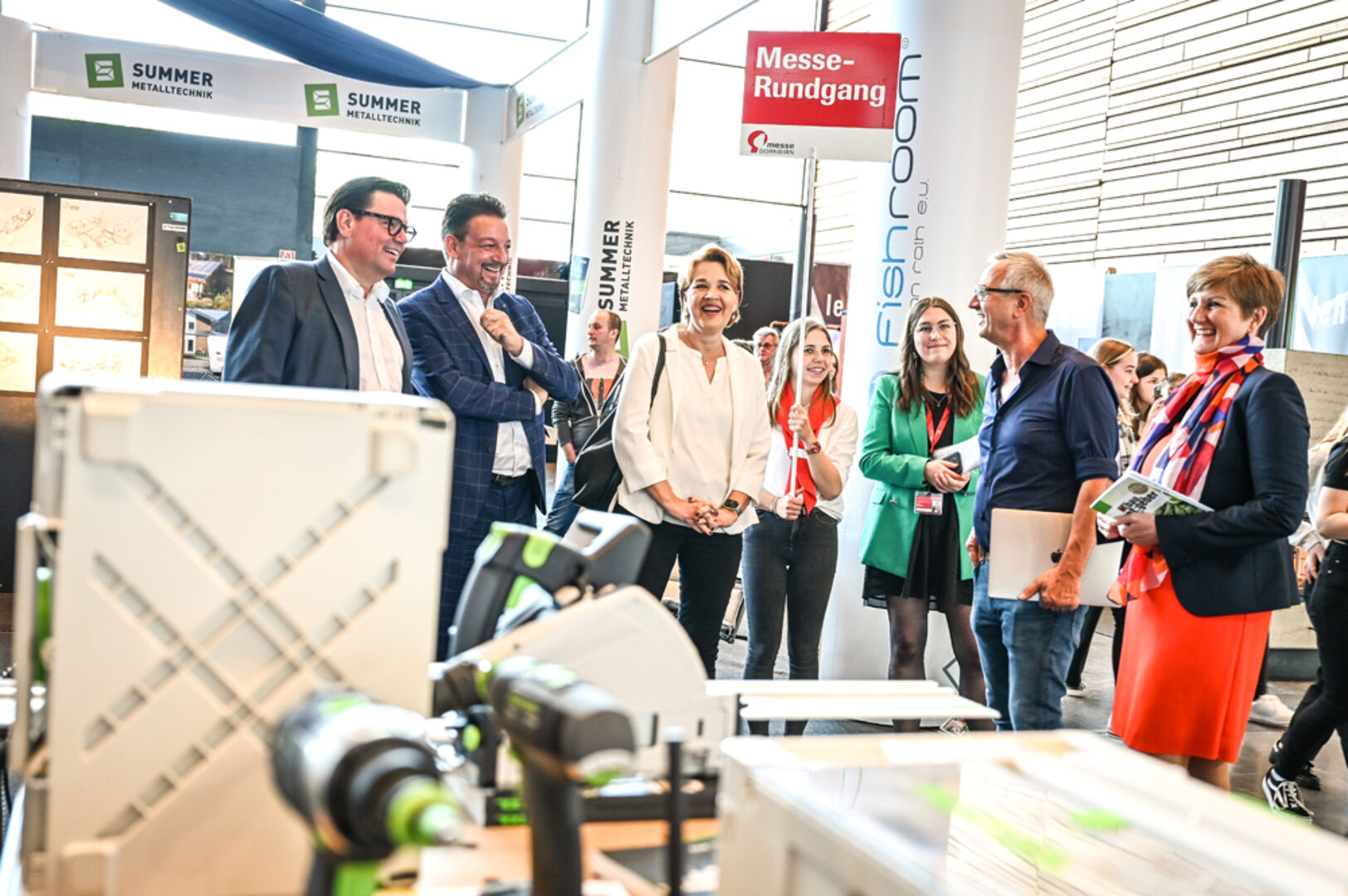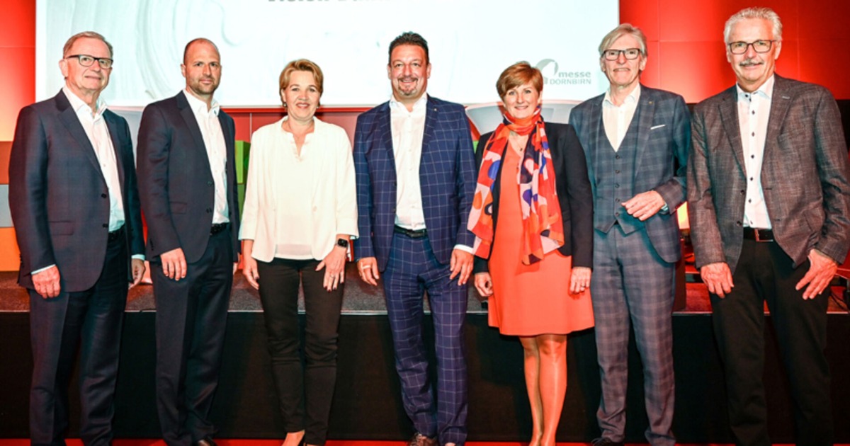 NR Karlheinz Kopf, LR Marco Tittler, BM Andrea Kaufmann, desig. Marktvorstand Raiba Vbg Manfred Miglar, Messe-GF Sabine Tichy-Treimel, WKV-Präsident Wilfried Hopfner, Aufsichtsratsvors. Otto-G.Mäser (v. li.)