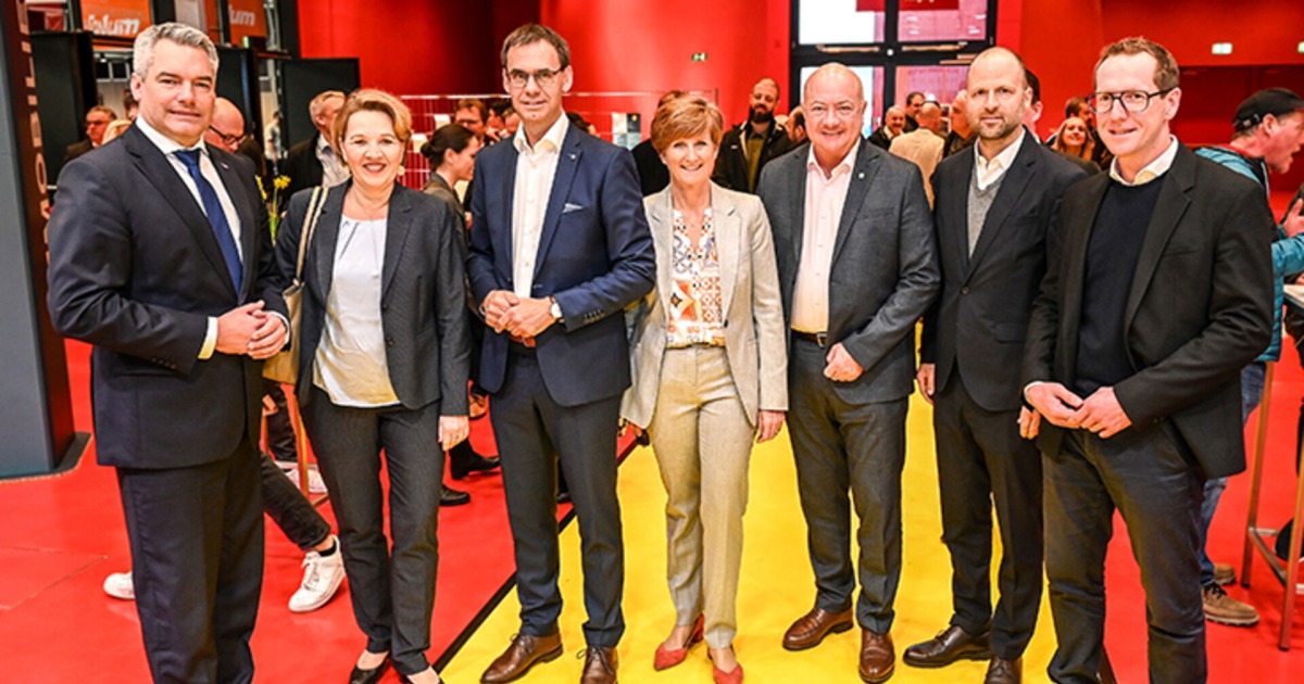Bild oben: Die com:bau 2024 (160 Aussteller, 10.000 Besucher) wurde im Messequartier Dornbirn unter anderem von Bundeskanzler Nehammer eröffnet: Karl Nehammer, Andrea Kaufmann, Markus Wallner, Sabine Tichy-Treimel, Christian Stocker, Marco Tittler, Martin Dechant (v. li.)