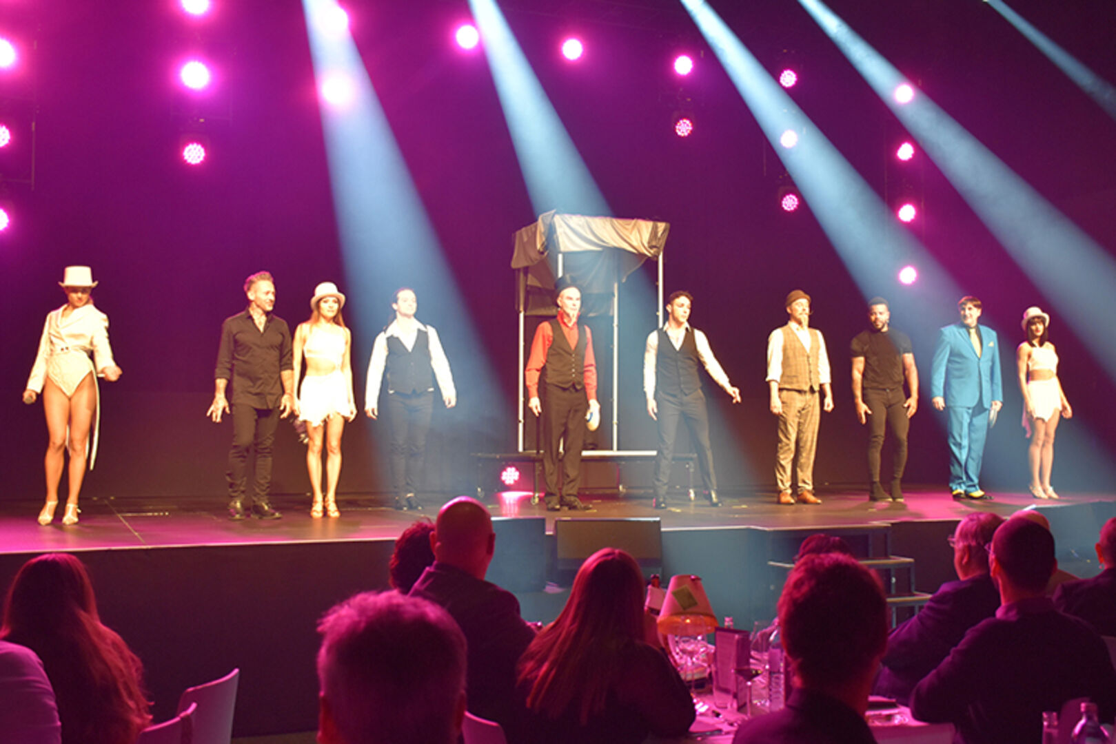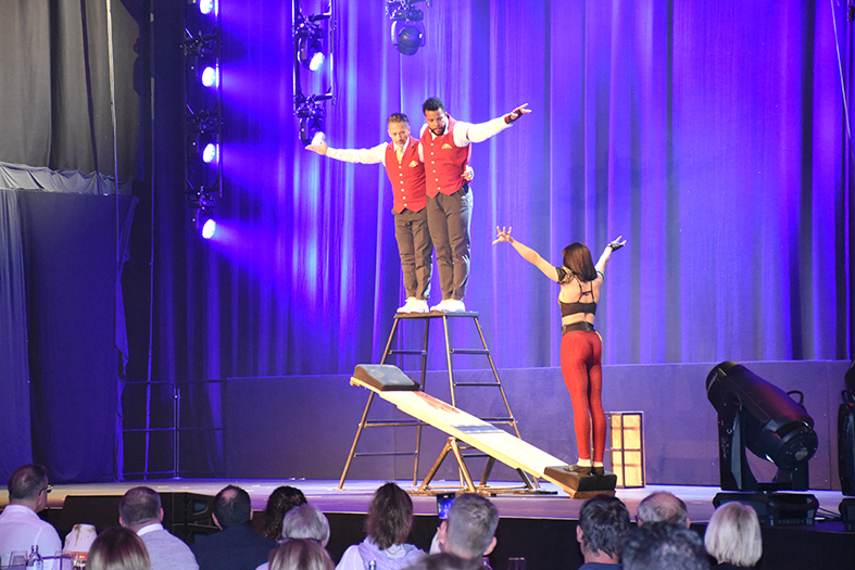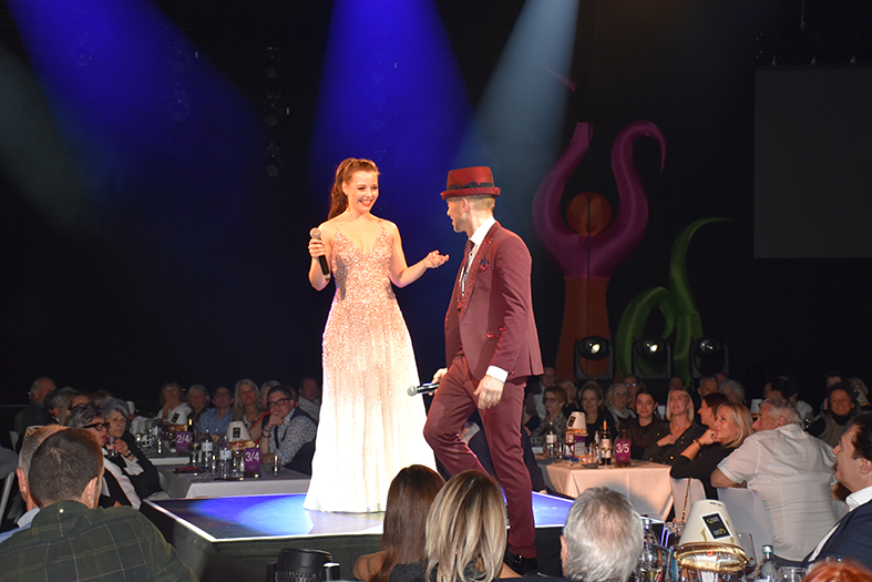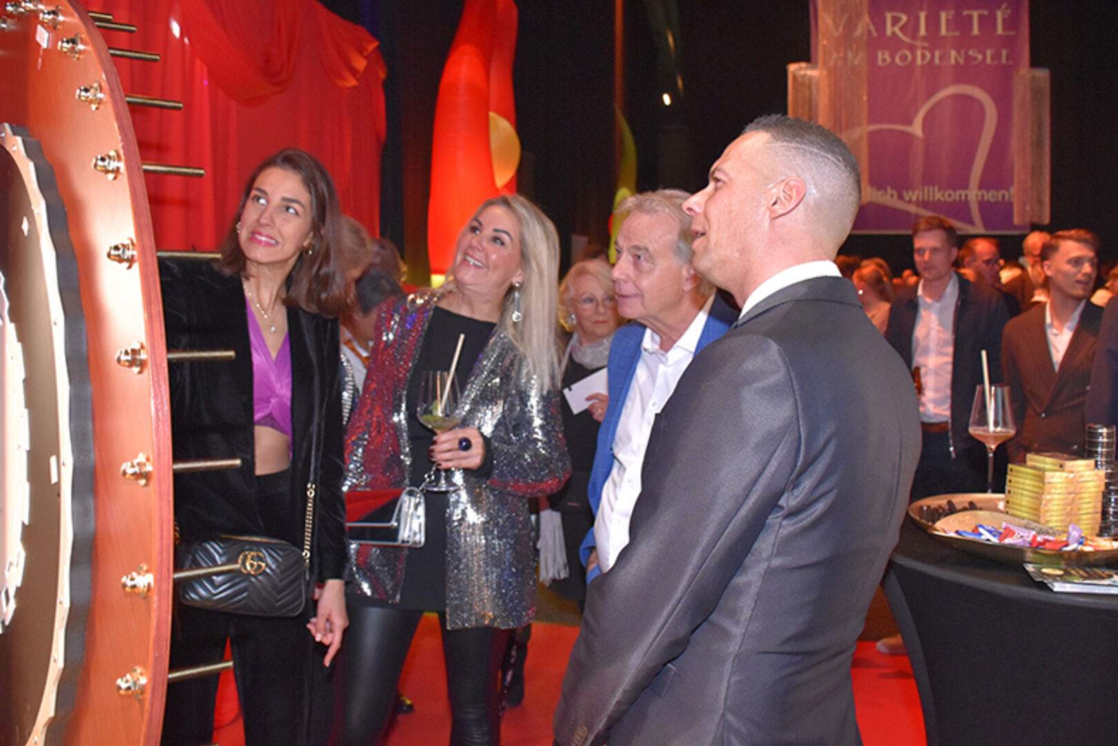 Zum 19. mal luden Gastgeber Heinz und Catrin Wendel (li.) ins Varieté. Glücksmomente gab es u.a. mit Luftartistin Gloria Veit und Moderatoren-Duo Diamond und Timothy Trust
