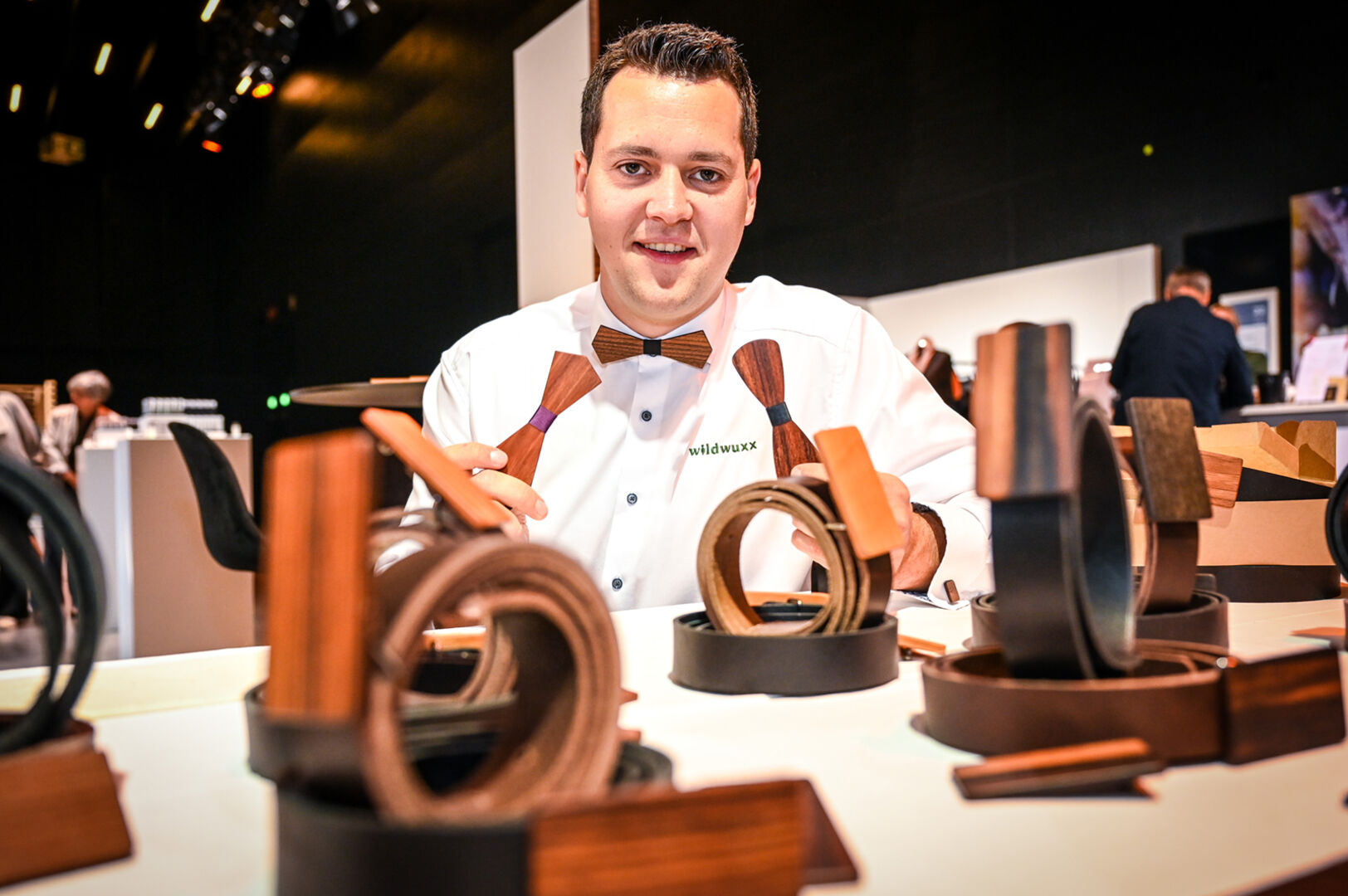 Jungunternehmer Dominik Fechtig und Christian Bereuter (wildwuxx-Accessoires aus dem Wald) (v. li.)