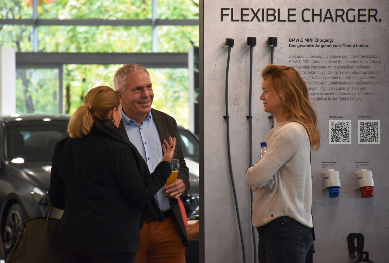 Kurt Aberer (Aberer Immobilien H‘ems) mit Anja sowie Petra (fährt Mini SE electro) und Martin Klocker (BMW X5) aus Gaißau