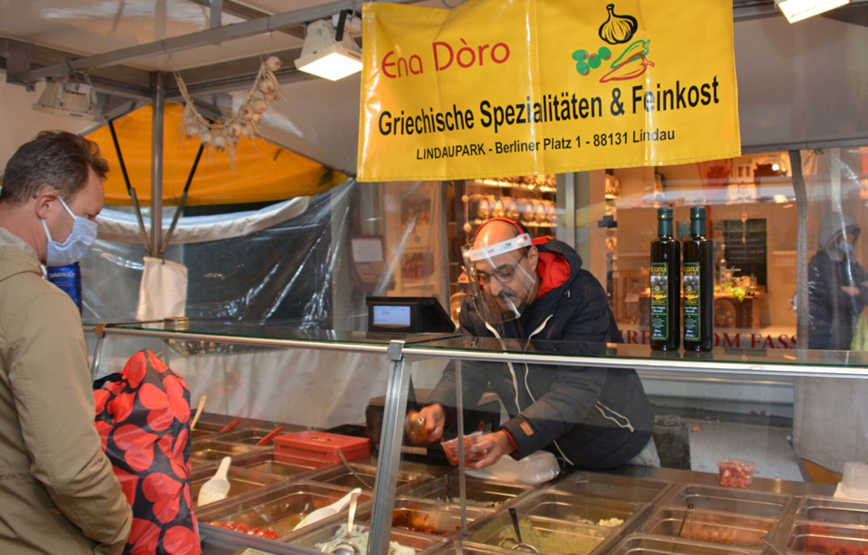 Siegfried Schiestl verkauft seit 1995 auf dem Dornbirner Wochenmarkt deftige Kärntner und Bregenzerwälder Spezialitäten wie Wälderkäs‘, feinen Speck und würzige Pfeffersulz. Liebhaber von feinem Kärntner Brot, Edelkärntner Würsten, Schinkenspeck, Bauchspeck und Wälder Käse sind hier richtig. Wer Gusto auf griechische Spezialitäten und Oliven hat, wird beim Stand von Massud Safari ebenso fündig wie bei Ena Doro aus Lindau. Feine Antipasti aus selbst verarbeiteten griechischen Rohmaterialien, eine reiche Variation an unterschiedlich eingelegten Olivensorten , Schafskäse, Frischkäsepasten, gefülltes und eingelegtes Gemüse und vieles mehr sorgen für Freude.