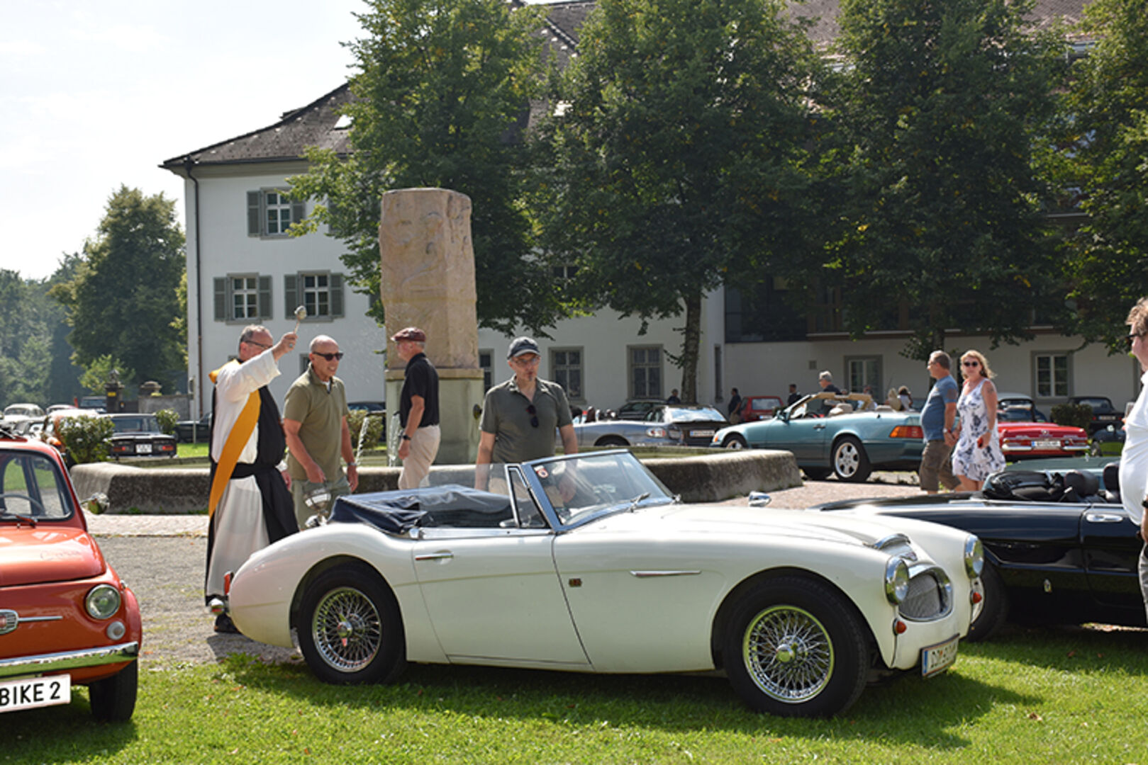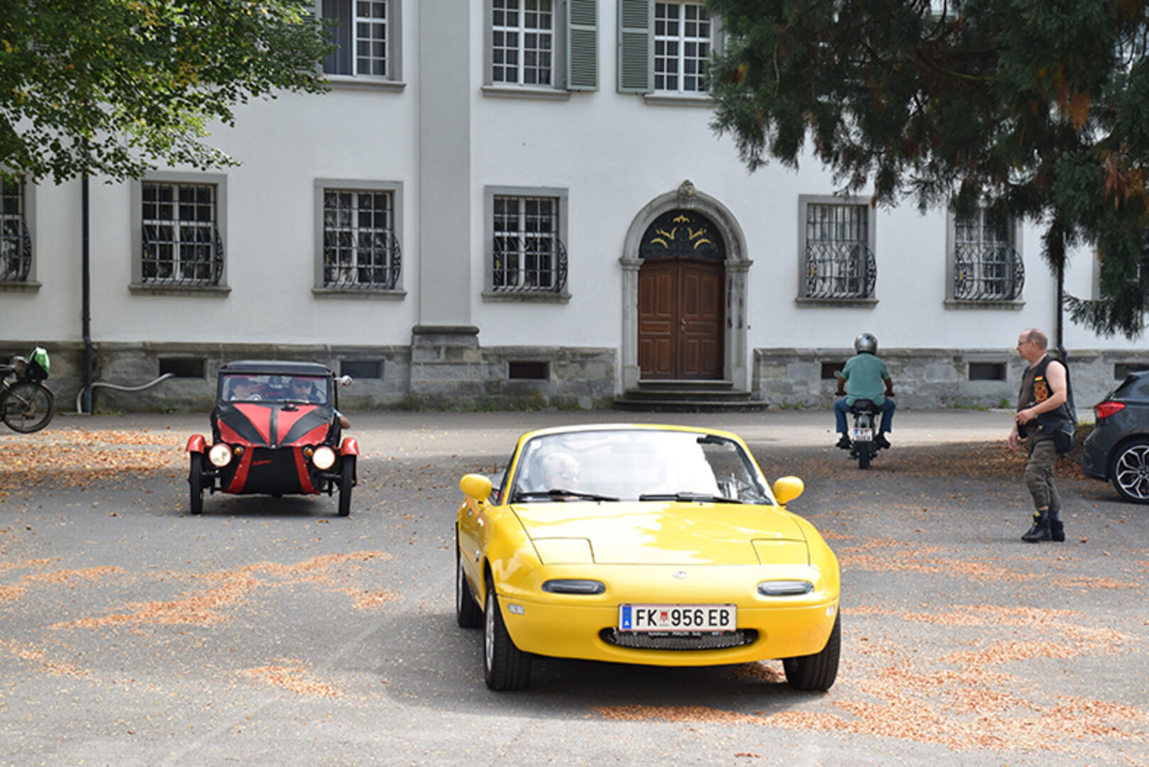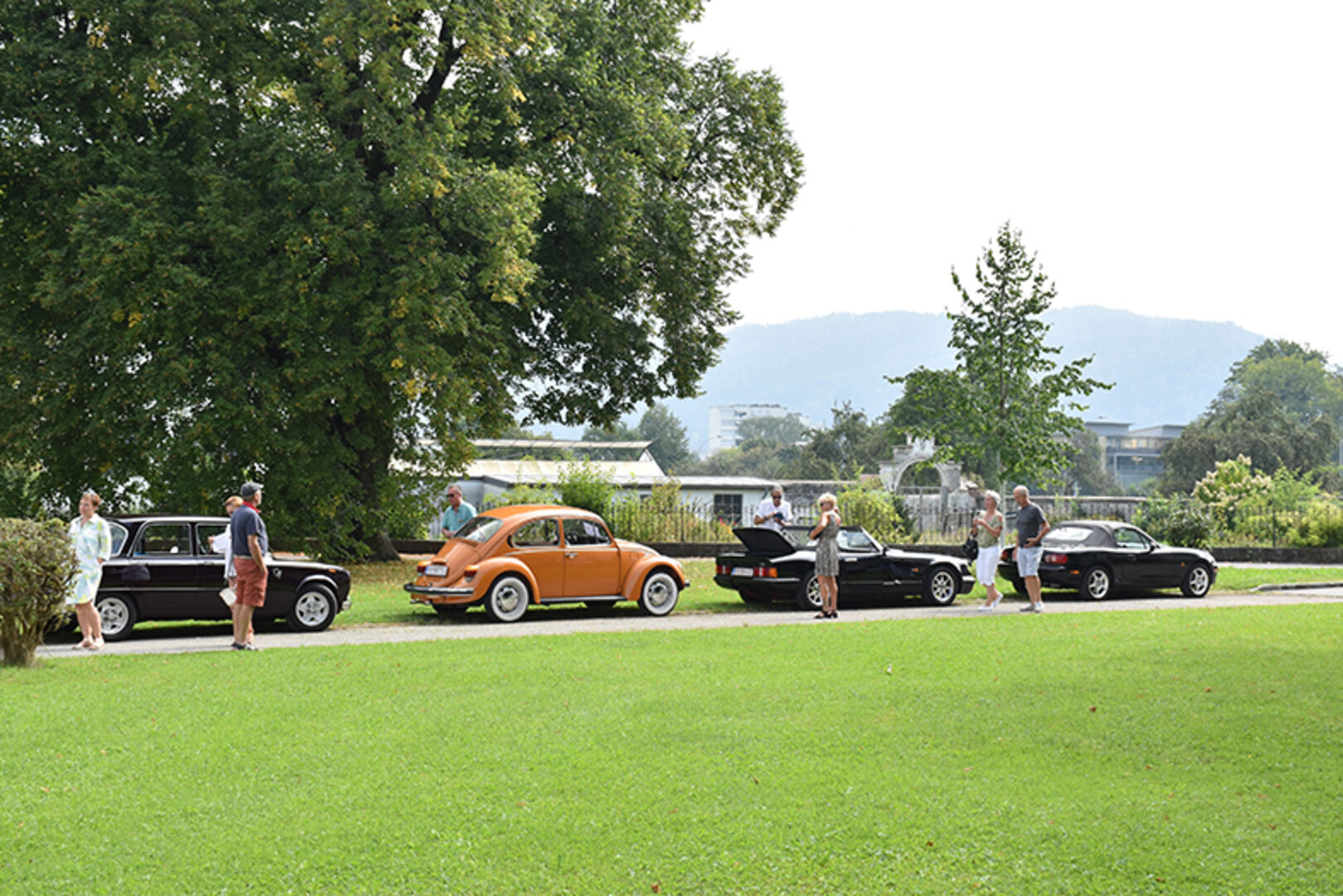 Angelika und Klaus Tschabrunn (Porsche Boxter), Dominic Fröhle, und Elias Rinderer (Fiat 500) und Andreas Künz (VW Bulli) (v.li.)