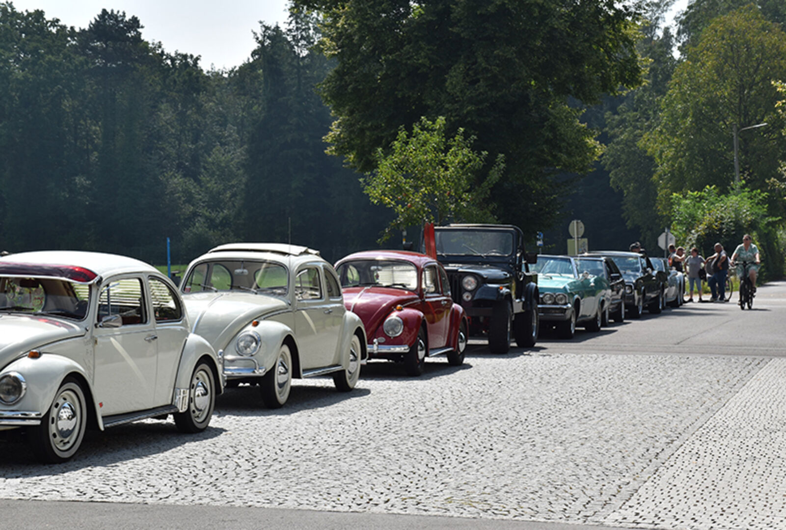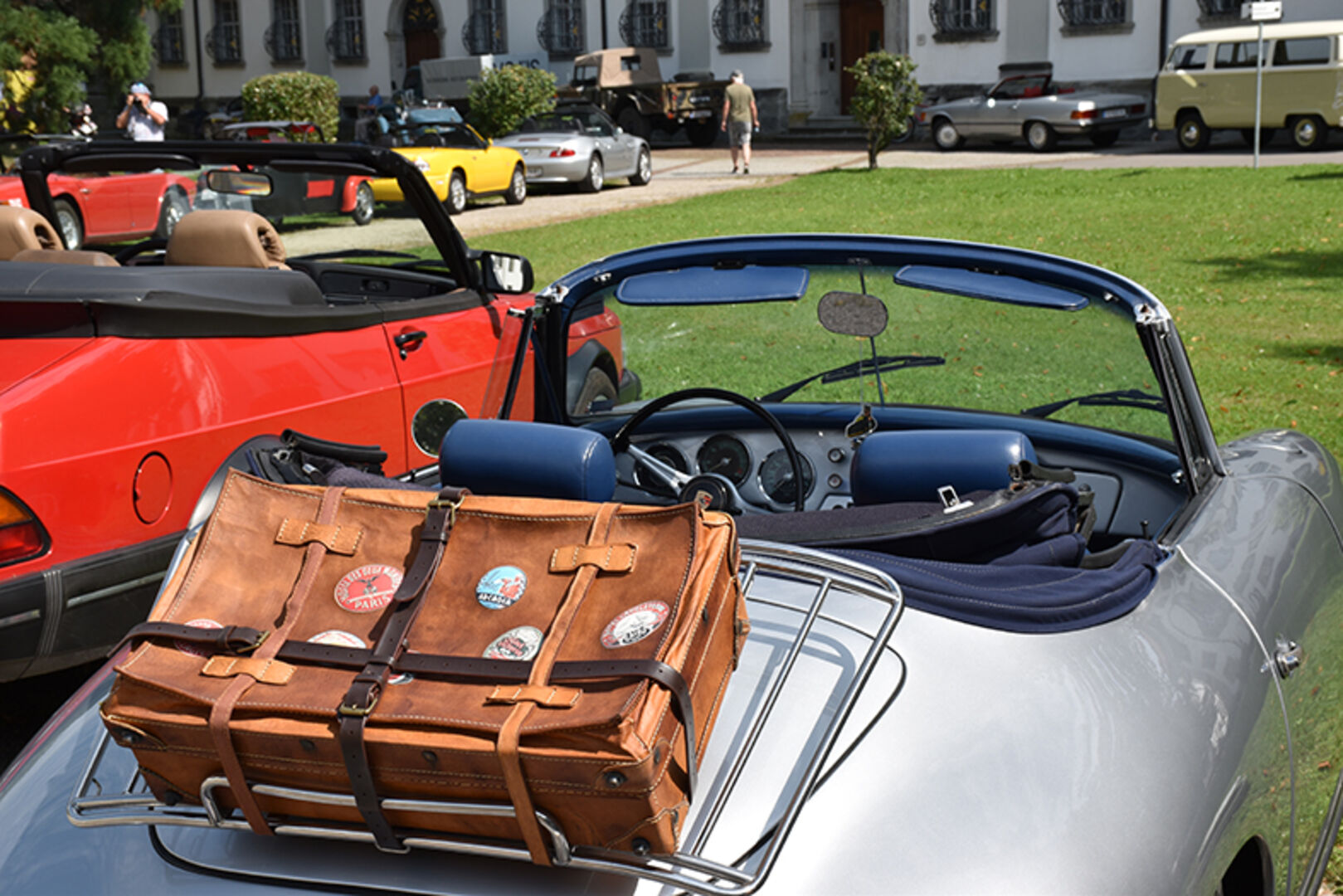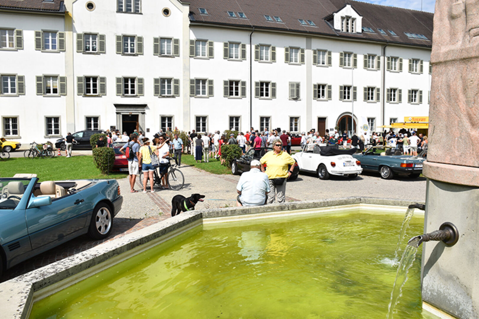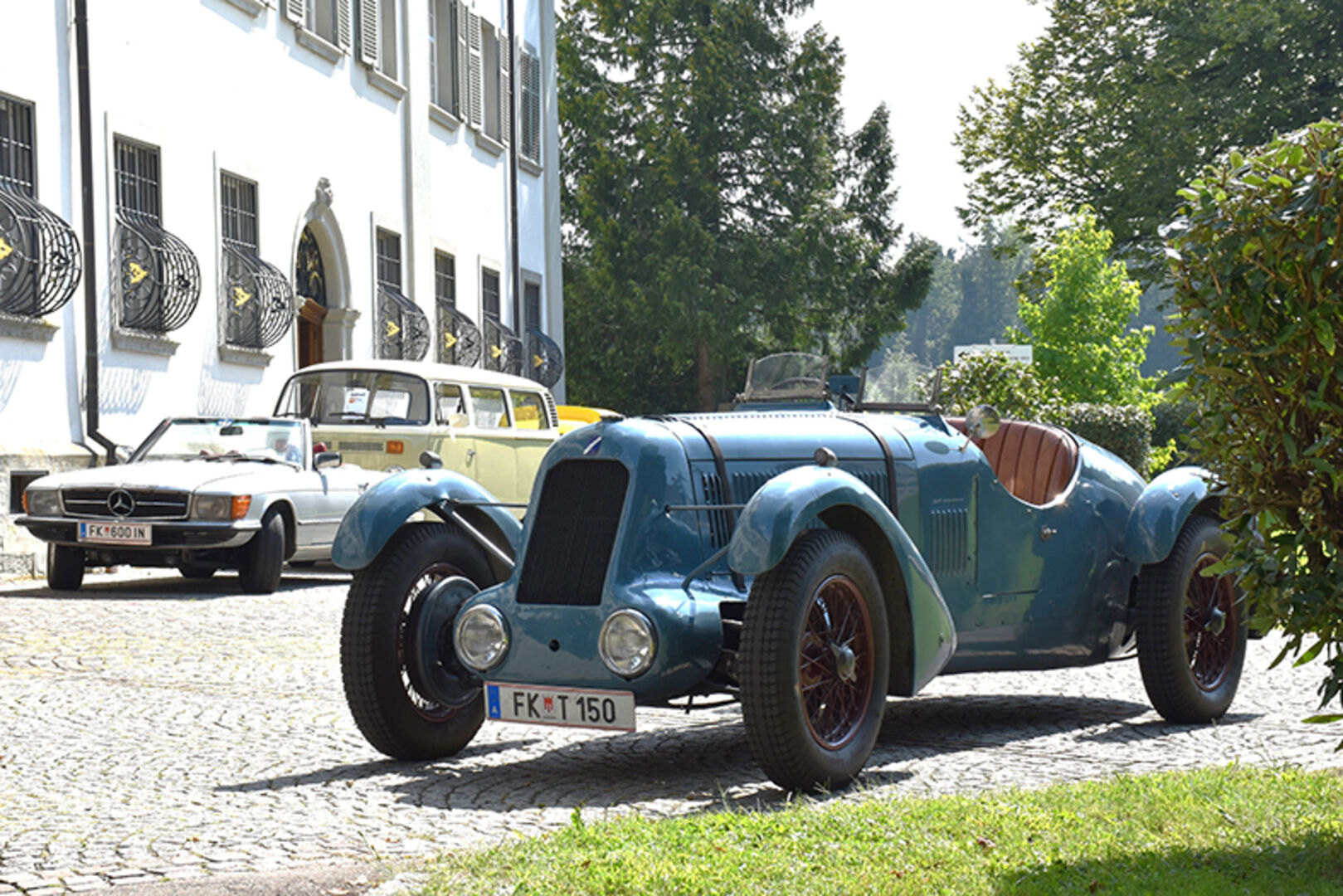 Angelika und Klaus Tschabrunn (Porsche Boxter), Dominic Fröhle, und Elias Rinderer (Fiat 500) und Andreas Künz (VW Bulli) (v.li.)
