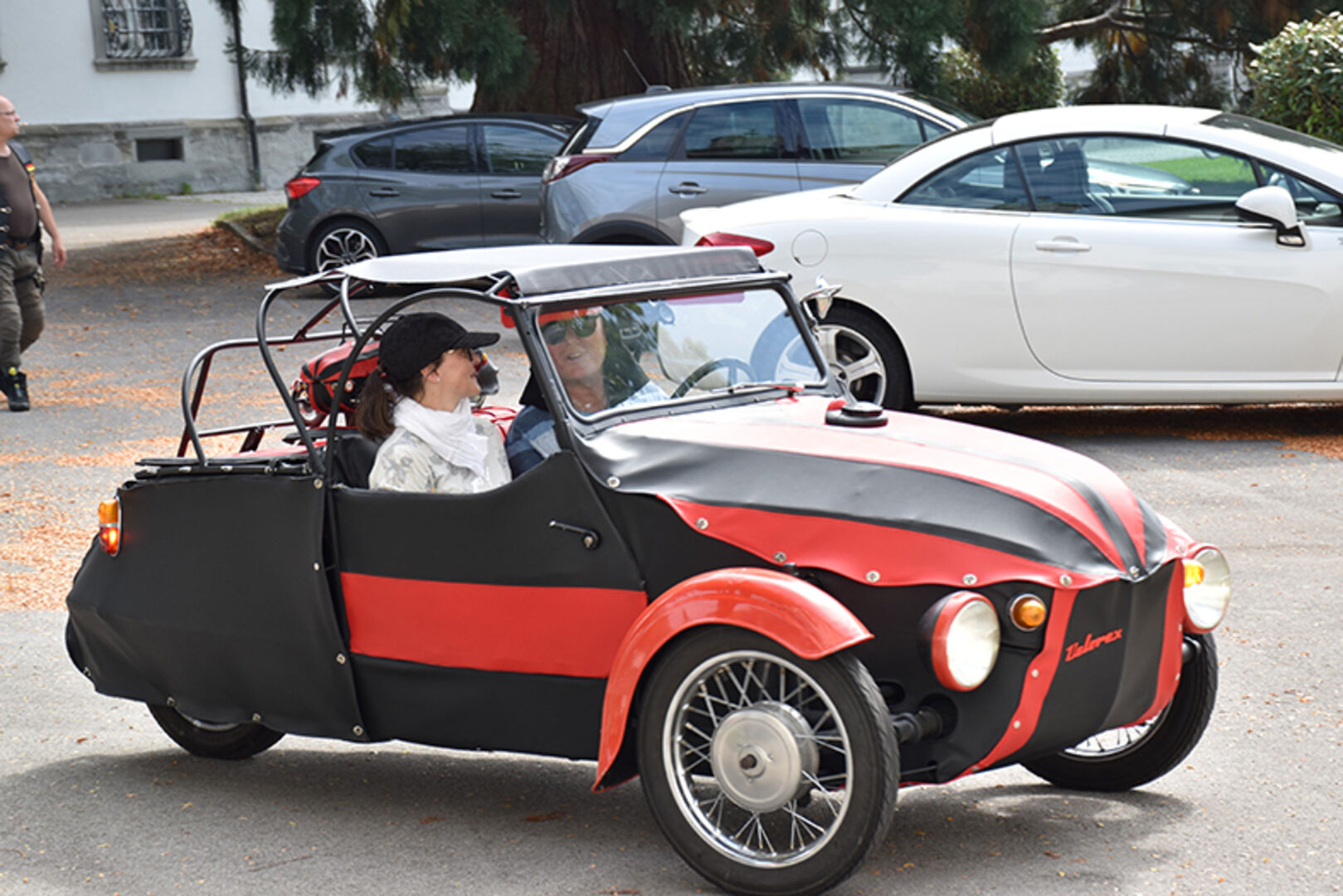 René Staub und Cornelia mit ihrem Velorex 350, Jahrgang 68 und Jawa Motor