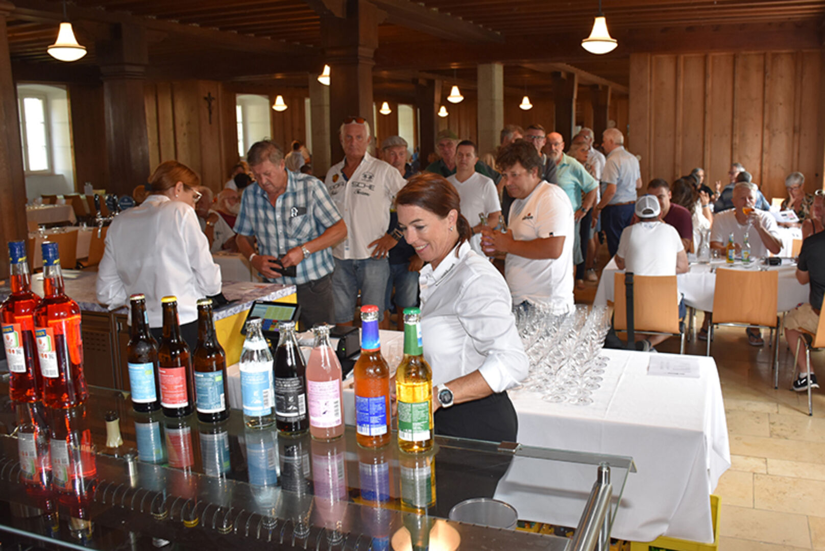 Nach getaner Arbeit, anstoßen mit dem Mehrerauer Kloster Bier: Abt Vinzenz Wohlwend und SR Michael Rauth