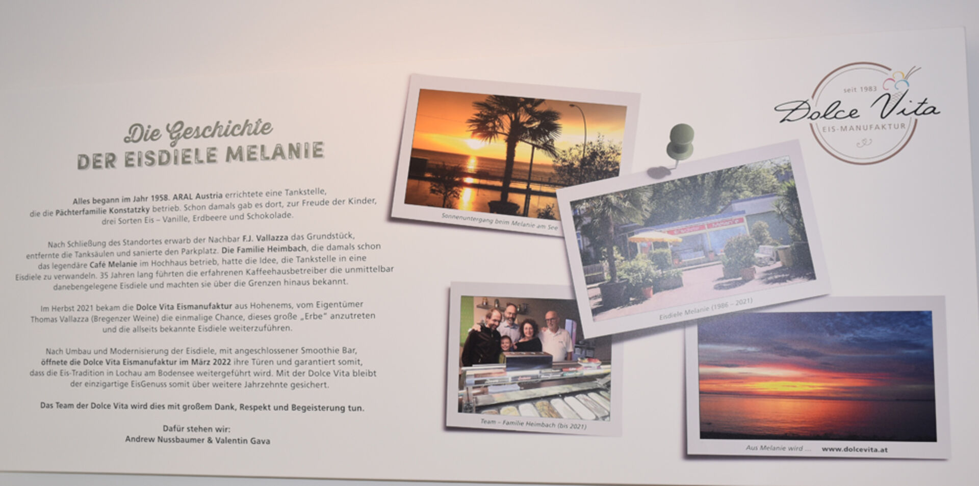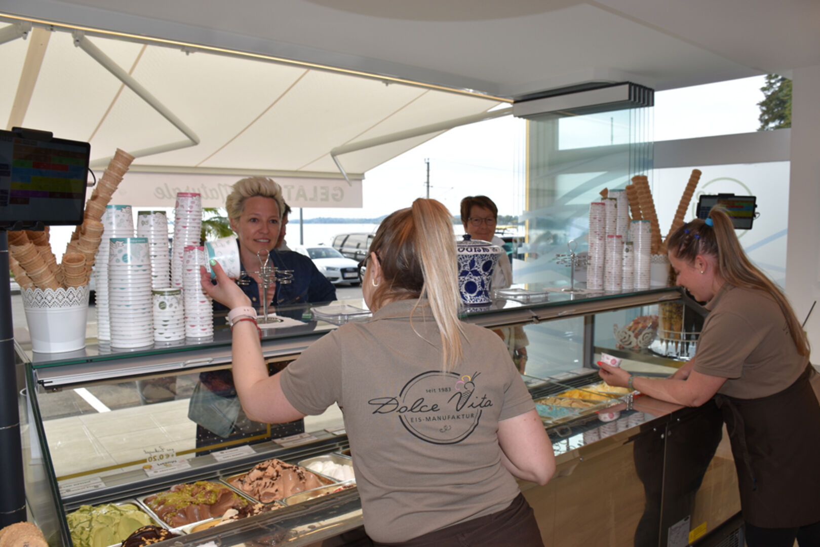 Mit fast 40-jähriger Erfahrung als Eismanufaktur ist mit dem neuen Standort in Lochau die neunte Dolce Vita Eisfiliale eröffnet und wird regionalen Eisgenuss in die Tüten, Becher und Eisgläser zaubern. TOP: Öffnungszeiten: Täglich von 10–22 Uhr (verkürzt je nach Witterung.) und die neu angeschlossene „Smoothie-Bar“ die zum SunDowner direkt am Bodensee lädt.