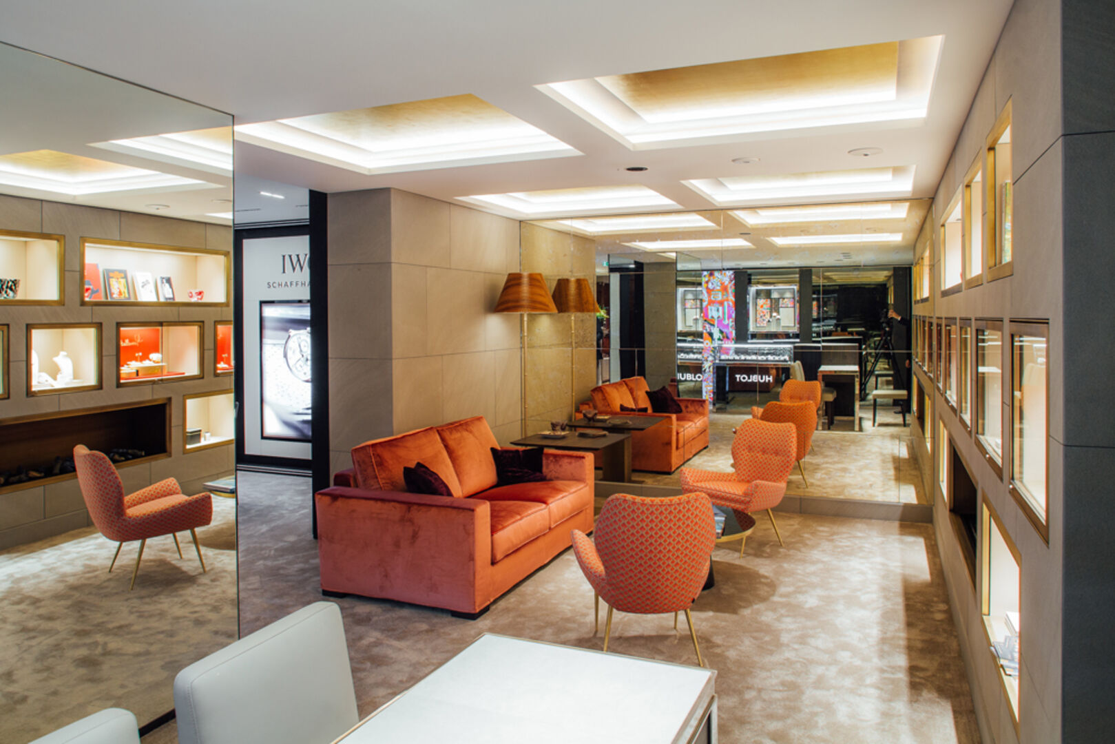 Wer die neue Bregenzer Huber-Dependance an der Ecke Kirchstraße / Leutbühel betritt, den begrüßt von weitem nicht nur der stark an die historische Fassade angelehnte Neubau, sondern vor allem Wohlfühl-Flair par excellence. “Wir wünschen uns, dass der Gast ein emotionales Erlebnis hat, wenn er uns besucht. Was uns ebenfalls enorm wichtig ist: Wir freuen uns auf alle Uhren- und Schmuck-Interessierten, die sich gerne bei uns aufhalten und sich bei Huber umschauen möchten. Natürlich führen wir ein exklusives Sortiment – aber wir sind ein offenes Haus, das im Dienste der schönen Dinge unterwegs ist und haben ein breites, wenn auch ausgesuchtes Angebot”, betont Norman J. Huber, der das schweizerische, renommierte Architekturbüro Bollinger mit der Konzeption der Inneneinrichtung beauftragt hat. (Fotos: Manuel Paul Fotografie)