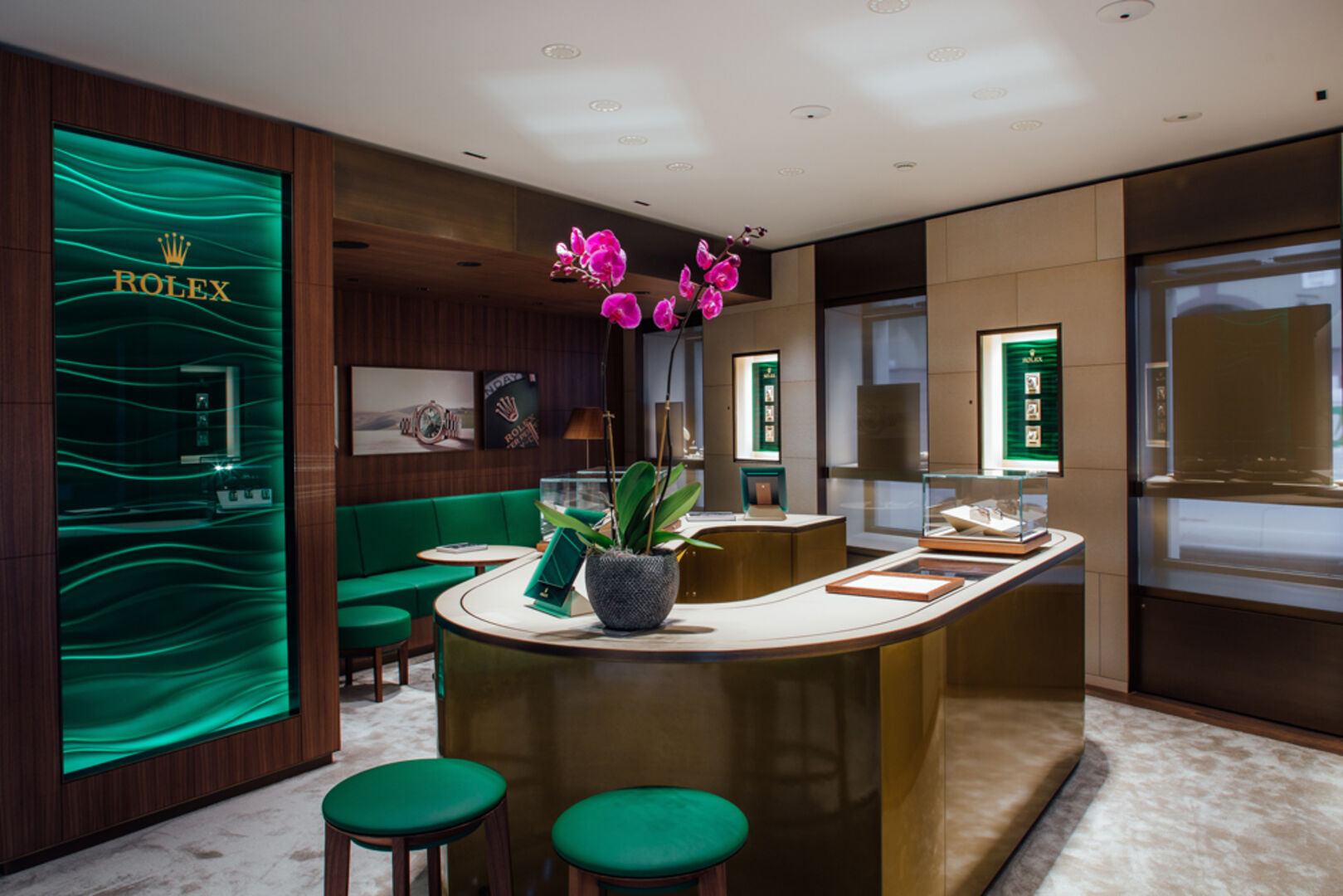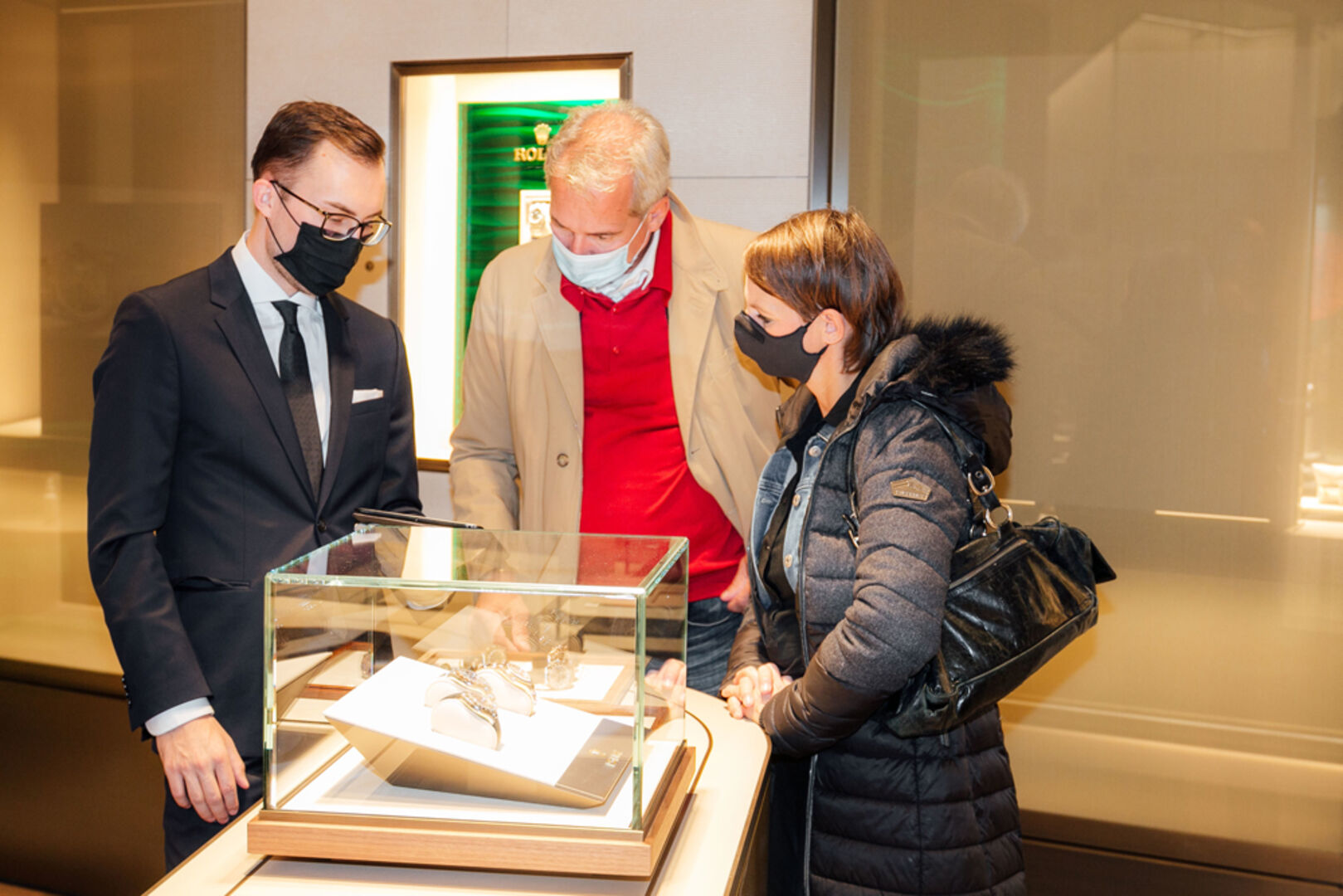 Kundinnen und Kunden der neuen Huber Uhren- und Schmuck-Boutique können sich gleich mehrfach freuen: Zum Beispiel auf das 160 Quadratmeter große Erdgeschoss des dreistöckigen Hauses mit Shop-in-Shop-Konzept von verschiedenen Weltmarken. Hier werden nebst Uhren von Rolex auch edle Zeitmesser von IWC, Cartier, Hublot und Tudor in ihrem eigenen Markenauftritt präsentiert, die in Vorarlberg exklusiv nur bei Huber erhältlich sind. “Und für Nostalgiker, die Geschichten und Geschichte lieben, werden wir ein gepflegtes Sortiment an Vintage-Timepieces anbieten”., so Norman J. Huber. Das exklusive Schmucksortiment wird von Pomellato, Boucheron, Serafino Consoli und der Hubert Private Label Collection abgerundet. (Fotos: Manuel Paul Fotografie)