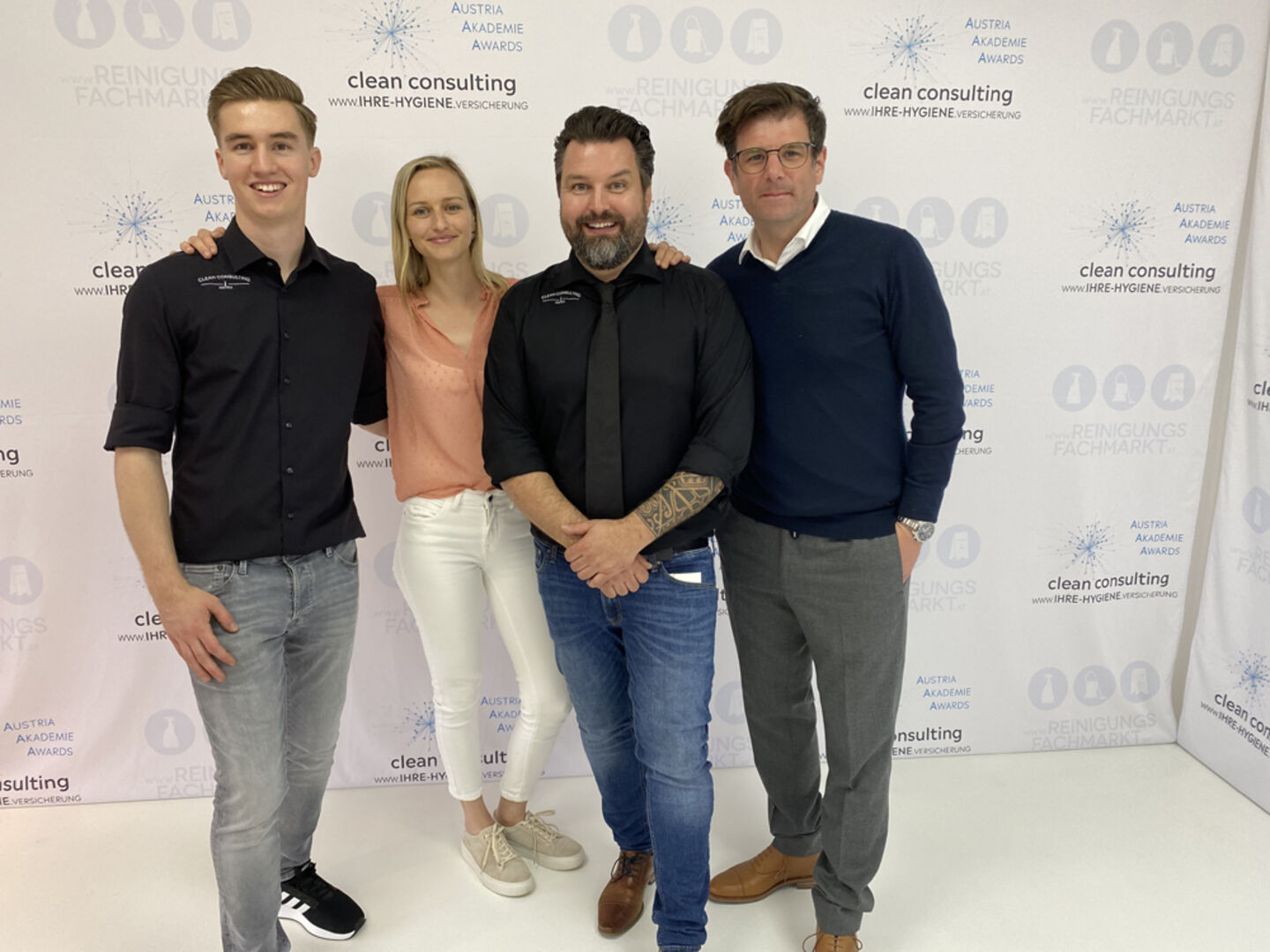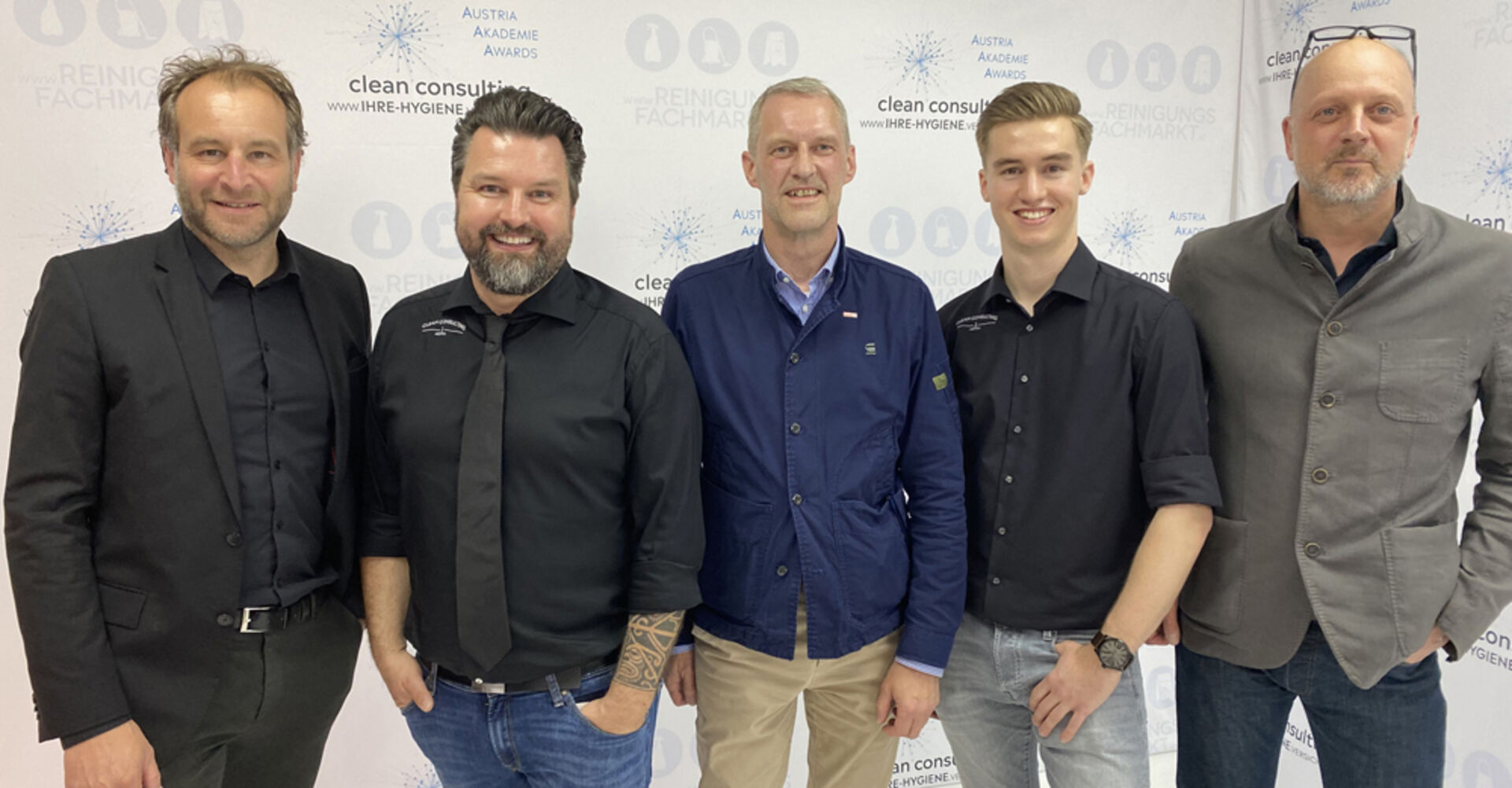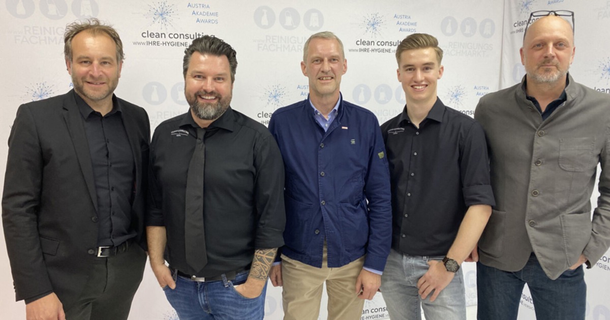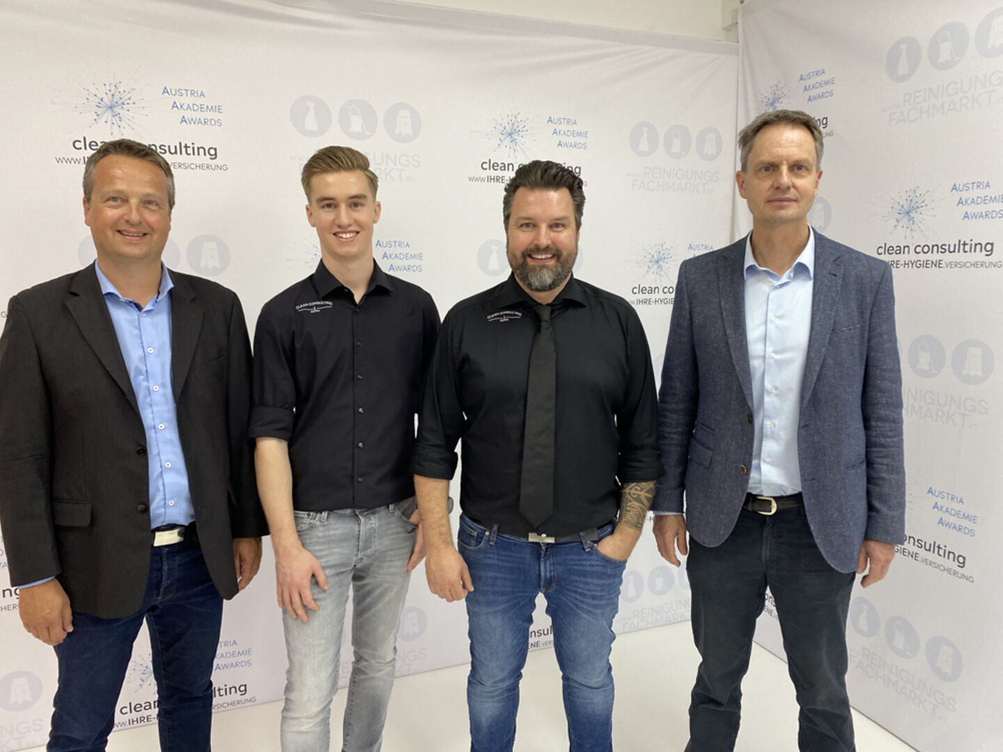 Dornbirn StR. Alexander Juen, Gastgeber Mst. Martin Halbrainer (Clean Consulting Austria), GF Armin Immler (WKV), Juniorchef Mst. Tim Halbrainer und GF Alfred…