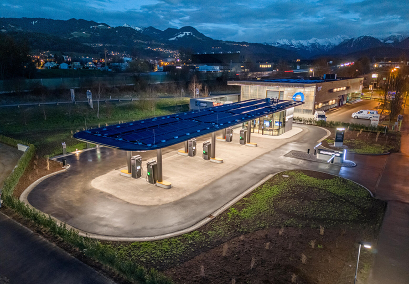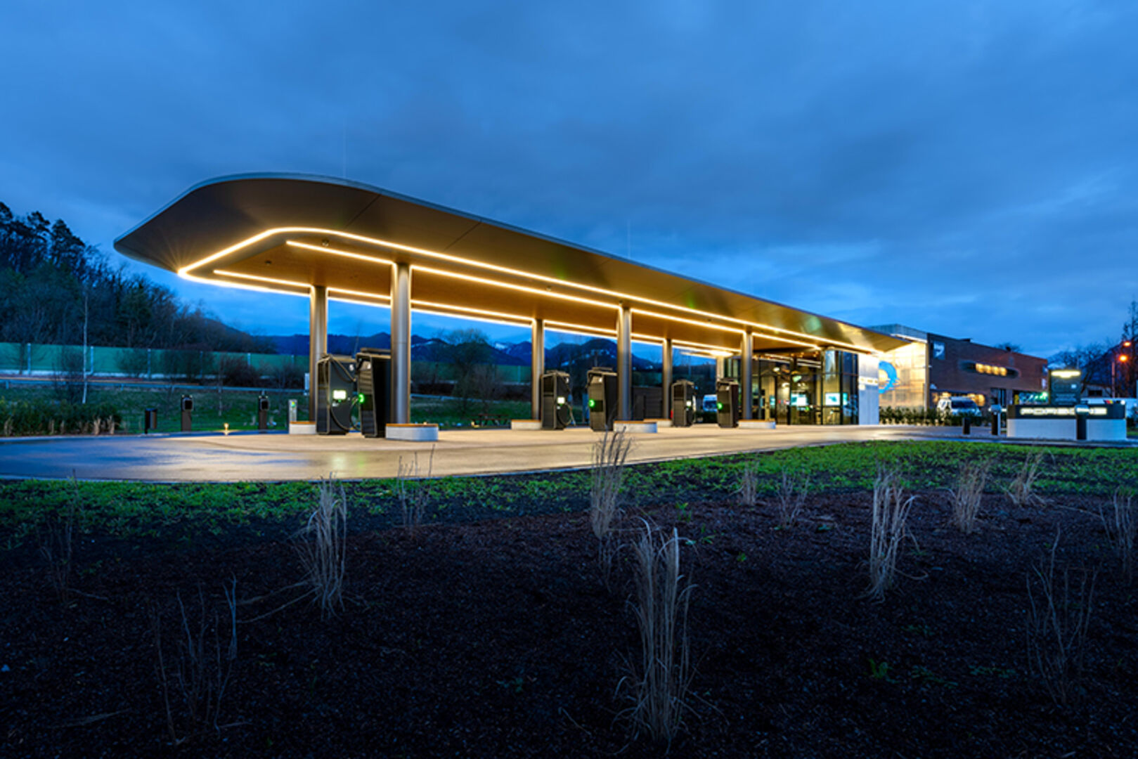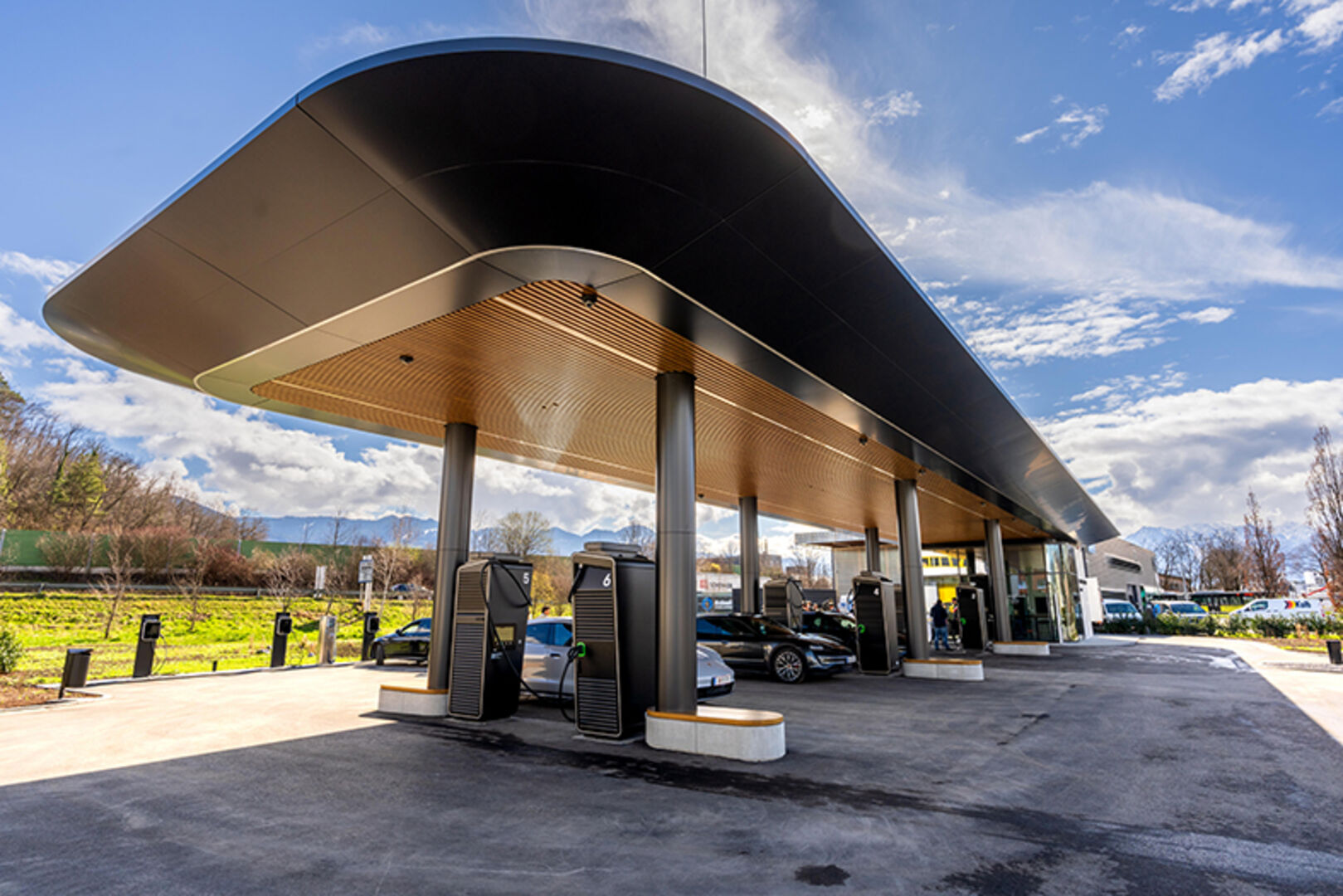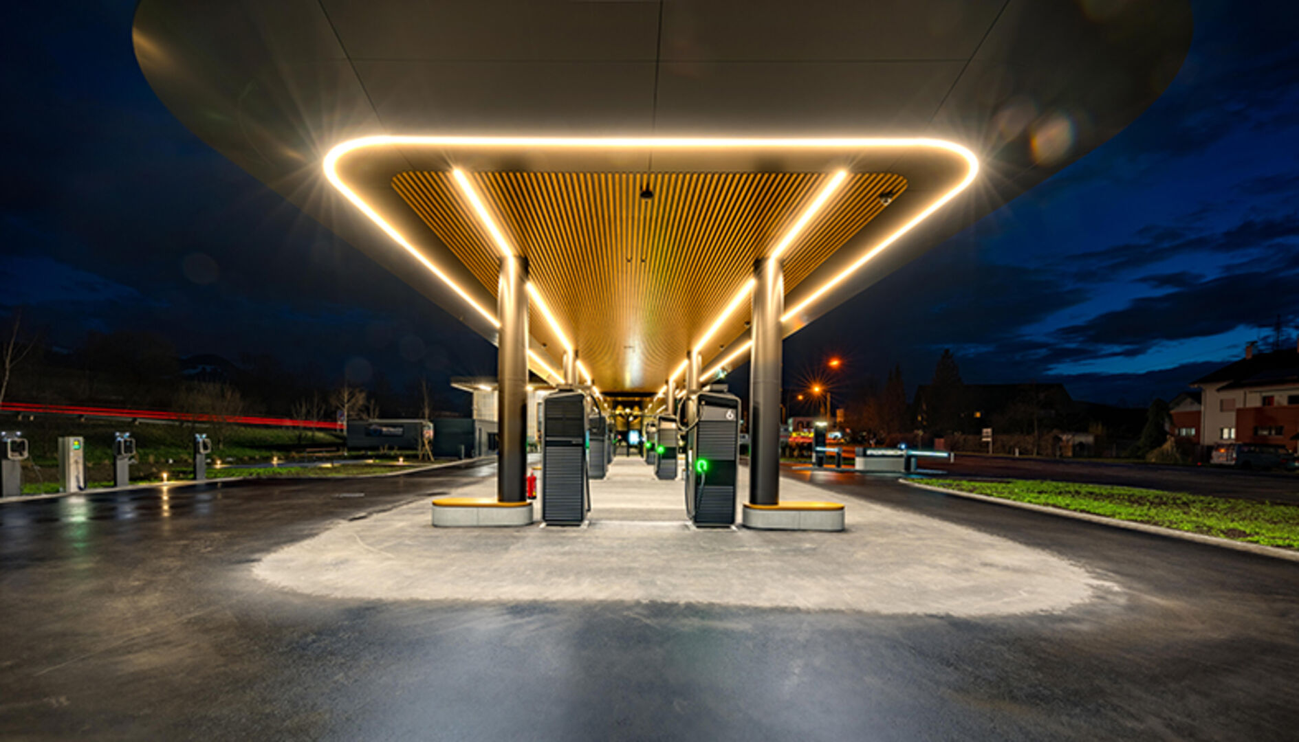 viel frequentierter Verkehrsroute - Leistungsstark: sechs Ladesäulen