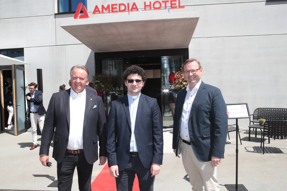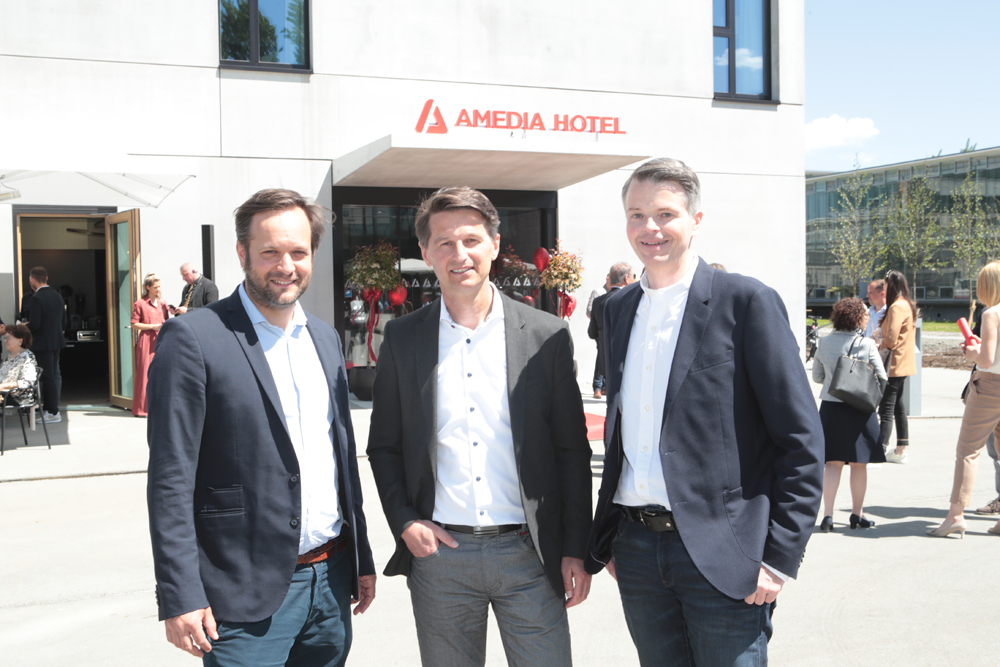 Bürgermeister Kurt Fischer, Hoteldirektorin Eileen Plamauer, Melanie Fleisch (Prisma), Amedia-GF Udo M. Chisteè und CFO Peter Steurer (Soravia).